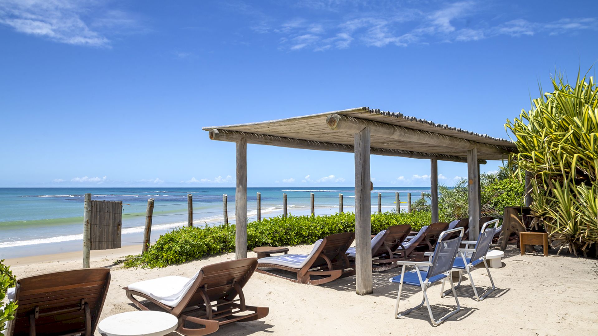 A área de lazer foi cuidadosamente projetada para valorizar o cenário natural e integrar os ambientes da casa à imensidão do terreno e à beleza da praia de Itapororoca.