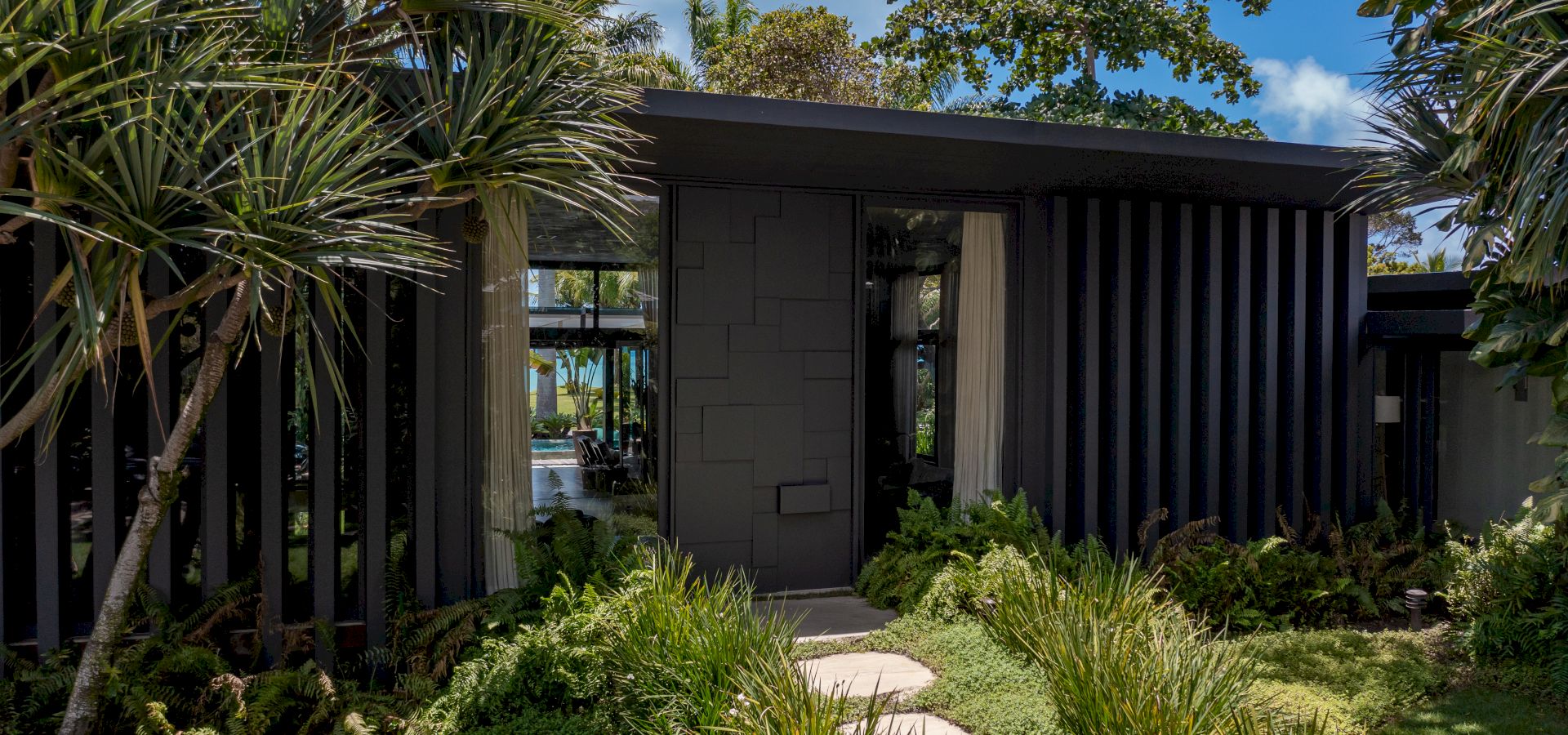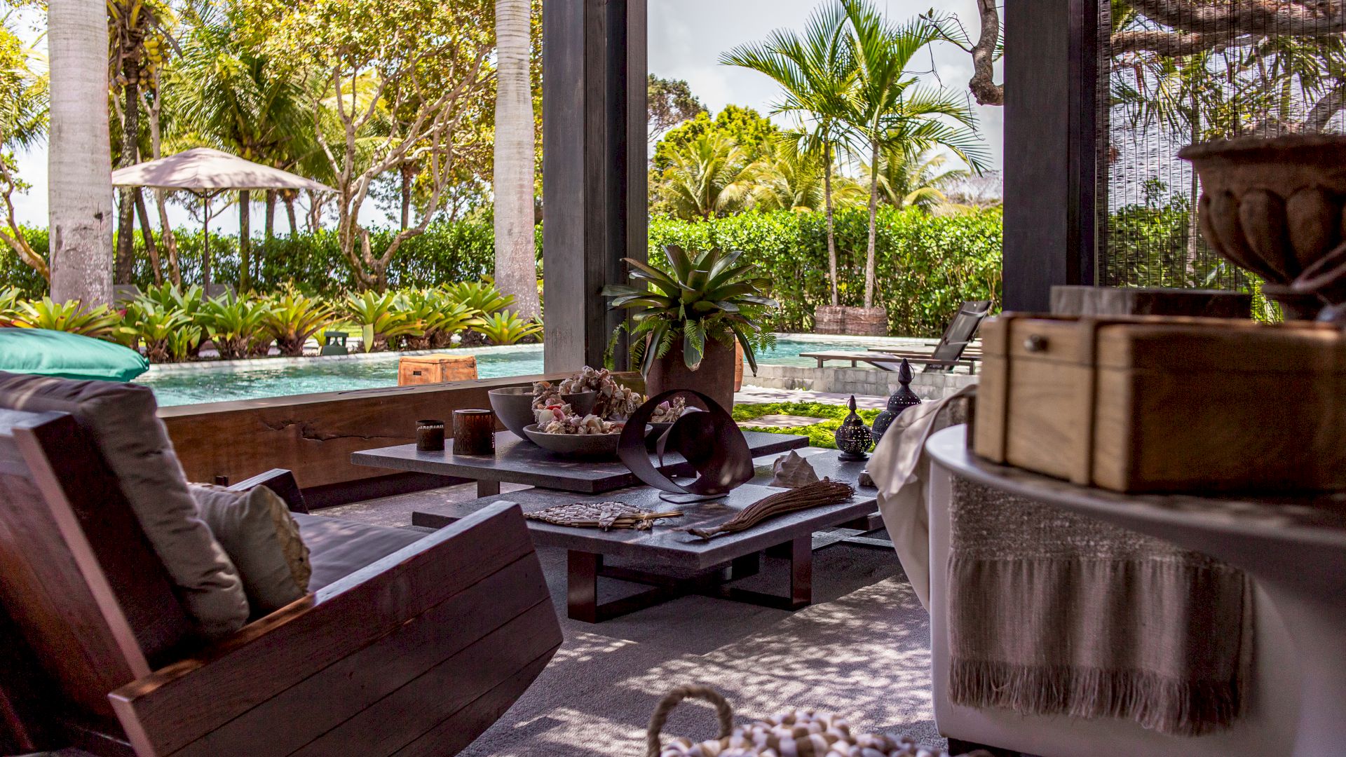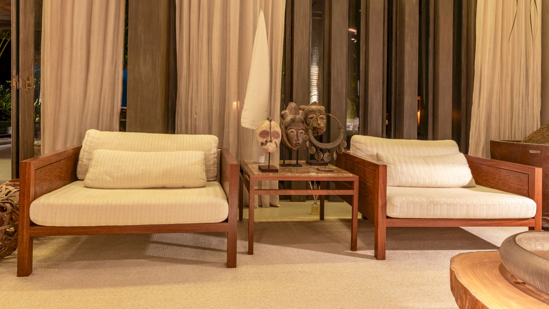 Com um projeto assinado pelo renomado escritório Débora Aguiar Arquitetos, a casa combina elementos rústicos e contemporâneos, destacando-se pelo uso de cores neutras e materiais naturais. O mobiliário inclui peças assinadas por designers brasileiros como Sergio Rodrigues, Claudia Moreira Salles, Carlos Motta, Ethel Carmona e Oscar Niemeyer. A arquitetura sustentável privilegia luz e ventilação natural, trazendo o verde para dentro dos ambientes e permitindo a circulação da brisa do mar.