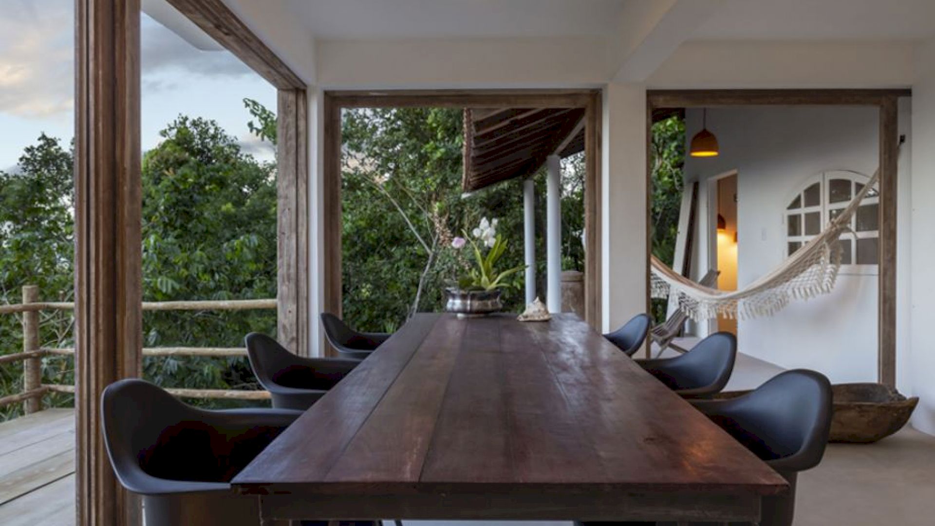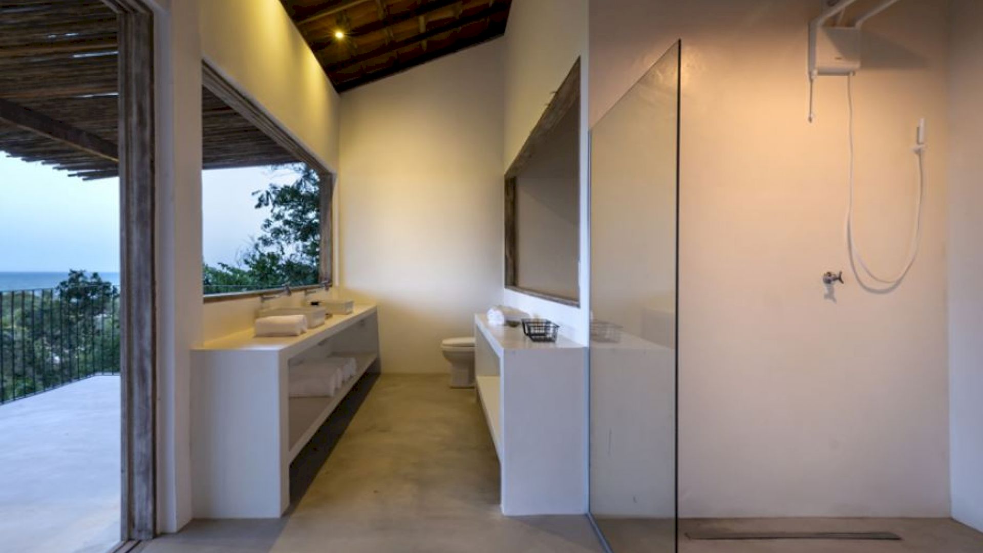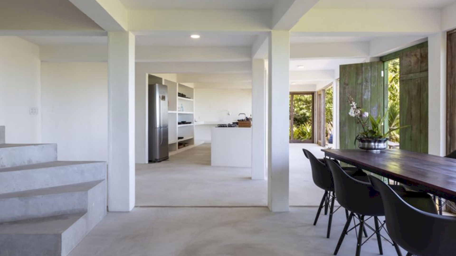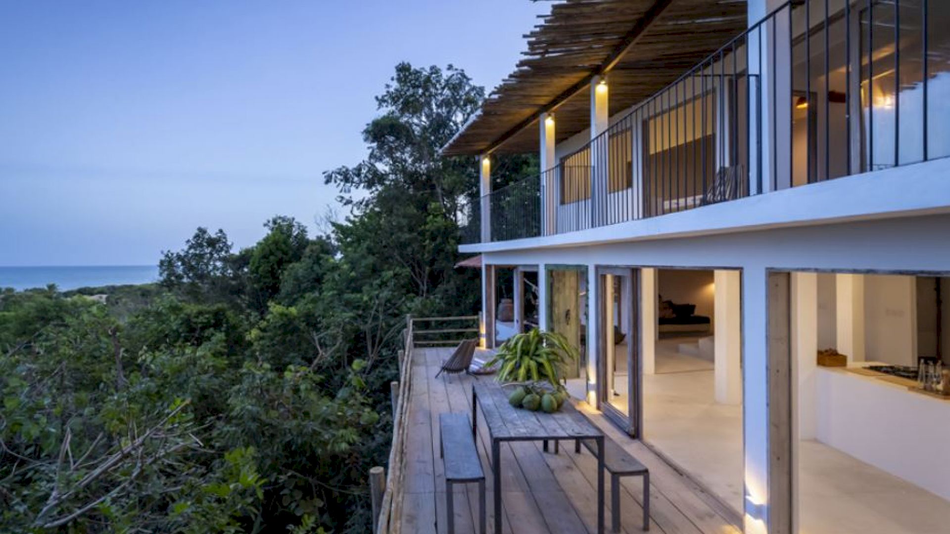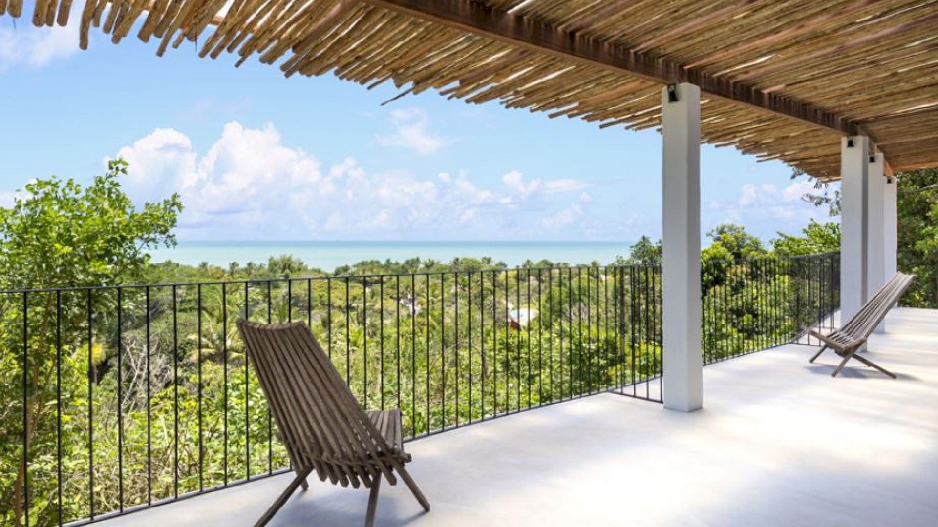 A Villa Praia dos Nativos 01, situada na encantadora Praia dos Nativos em Trancoso, com arquitetura e interior minimalista tropical, possui vista para o mar e mata, de todos os cômodos. Em um terreno de 2500m² com 250m² de área construída, a casa está idealmente preparada para acomodar até quatro hóspedes em um ambiente sofisticado e acolhedor. Embora não esteja à beira-mar, sua proximidade com a praia e a linda vista para o oceano permitem uma experiência de contato direto com a beleza da região. As duas suítes amplas, ambas equipadas com camas king size plus, oferecem uma experiência de descanso única, com a suíte principal destacando-se pelo conforto adicional de uma relaxante hidromassagem.