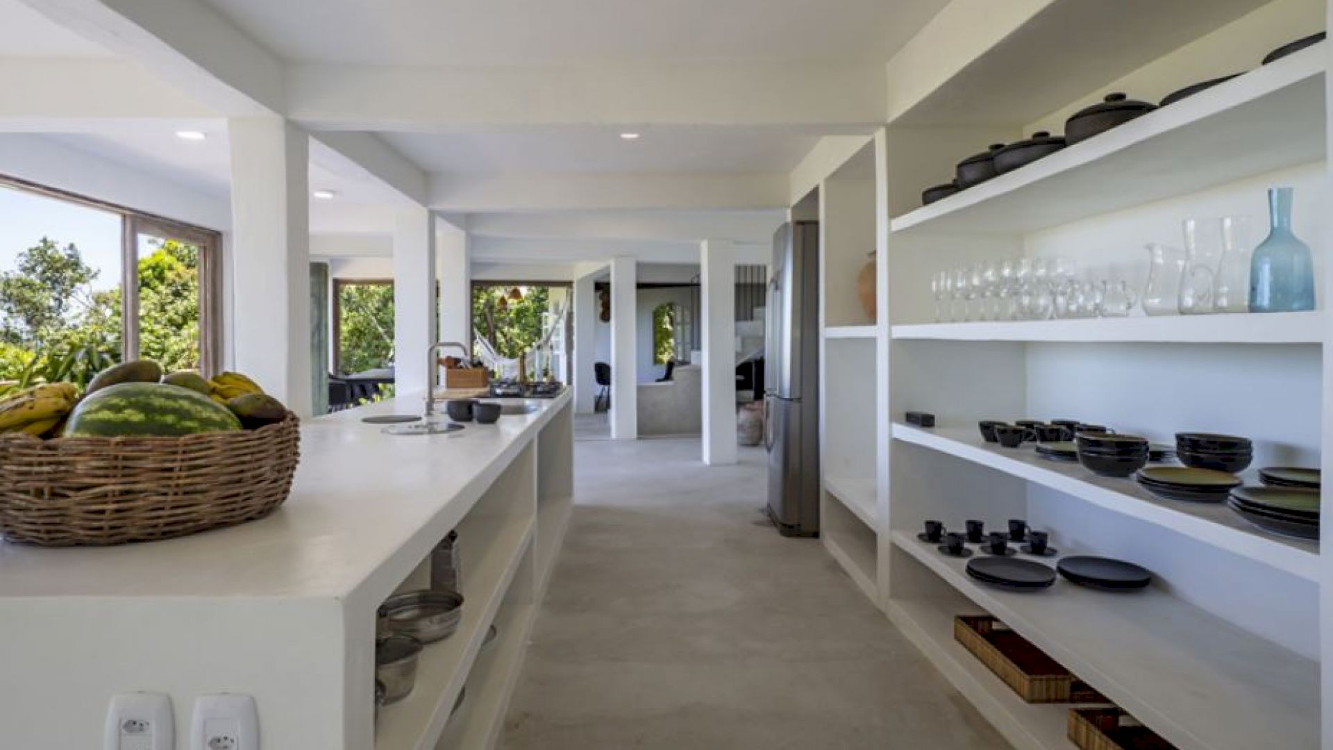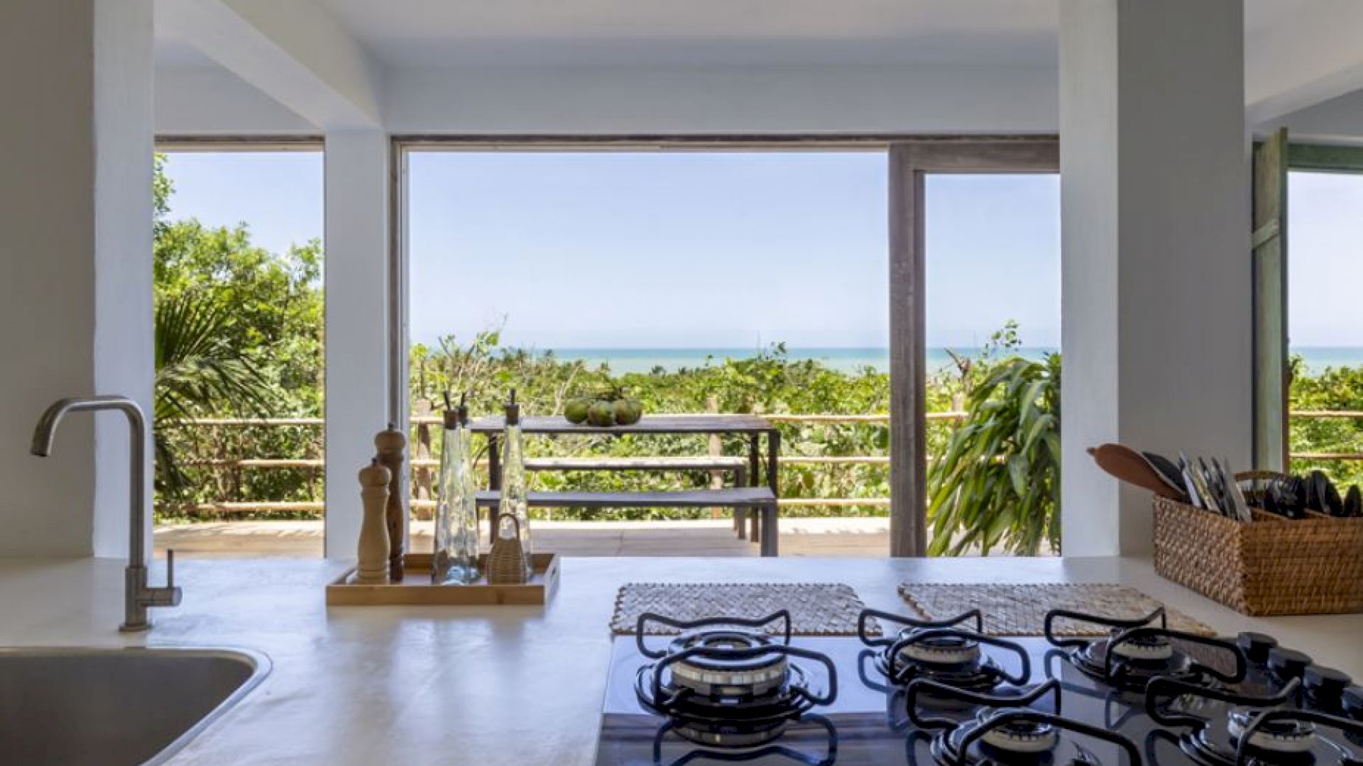 Pensada para proporcionar conveniência em cada detalhe, a Villa Praia dos Nativos 01 oferece uma cozinha completa com micro-ondas, freezer, máquina de café Nespresso e máquina de gelo, ideais para momentos de descontração e refeições práticas. A área social conecta-se harmoniosamente com o exterior, imersa na natureza ao redor, criando uma atmosfera de serenidade.