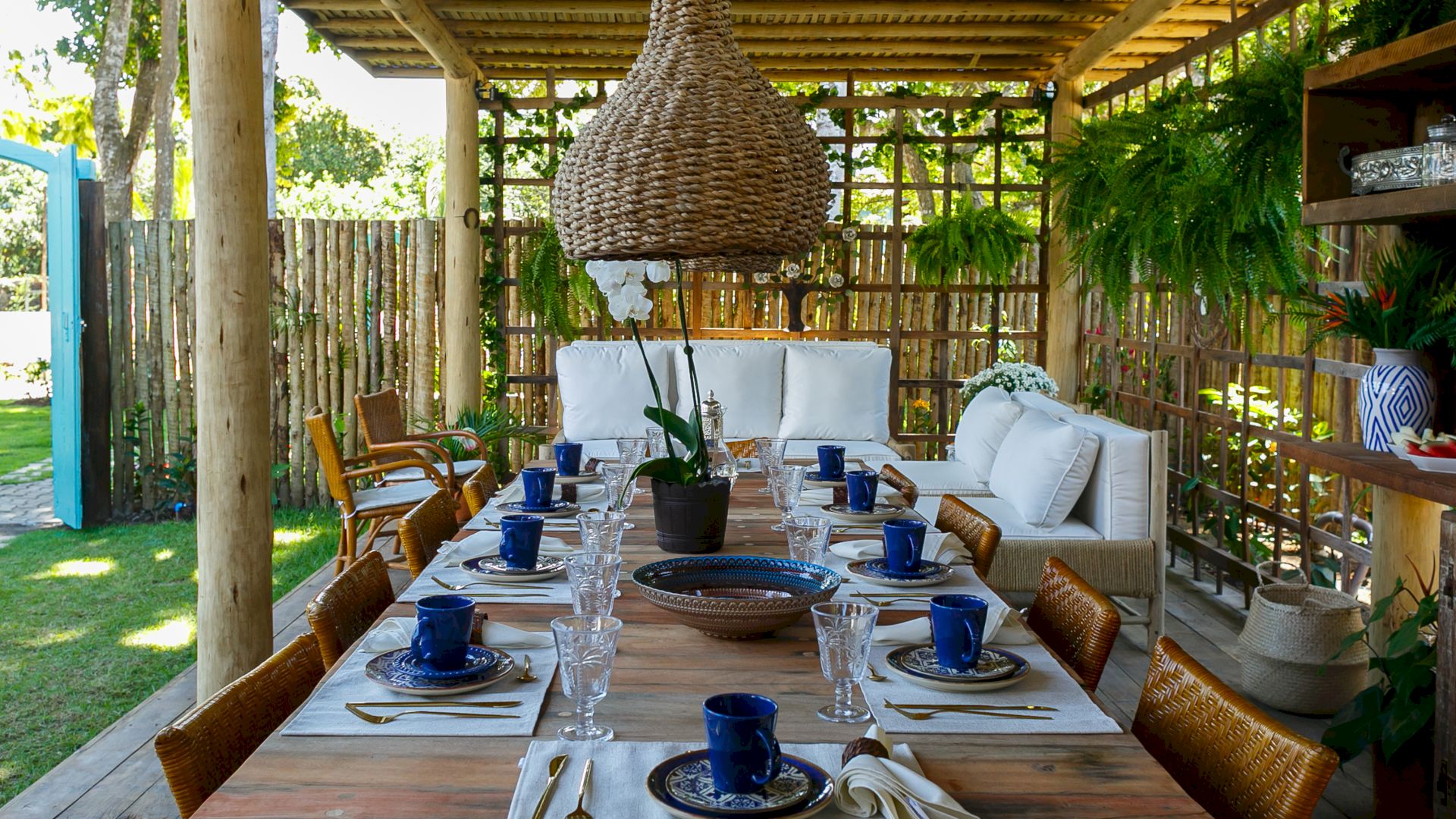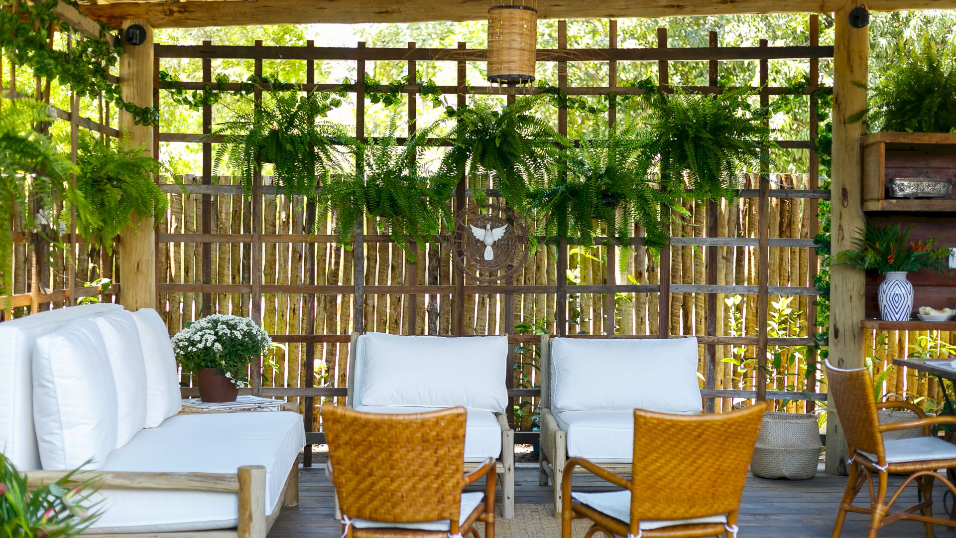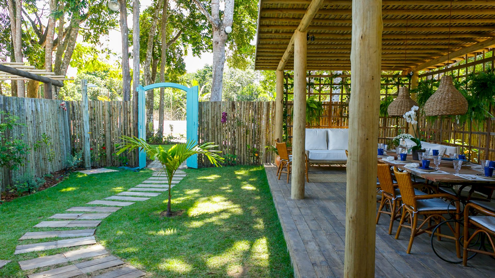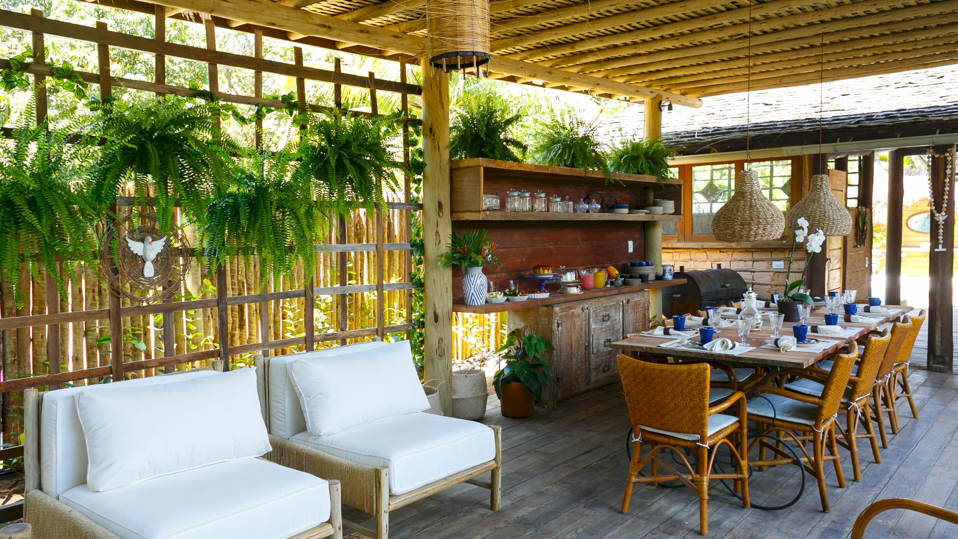 Do lado de fora, uma piscina refrescante e um deck relaxante completam o cenário, convidando a desfrutar os dias ensolarados de Trancoso. A Villa Colina 05 combina simplicidade e elegância, criando o ambiente perfeito para memórias inesquecíveis em um cenário único.