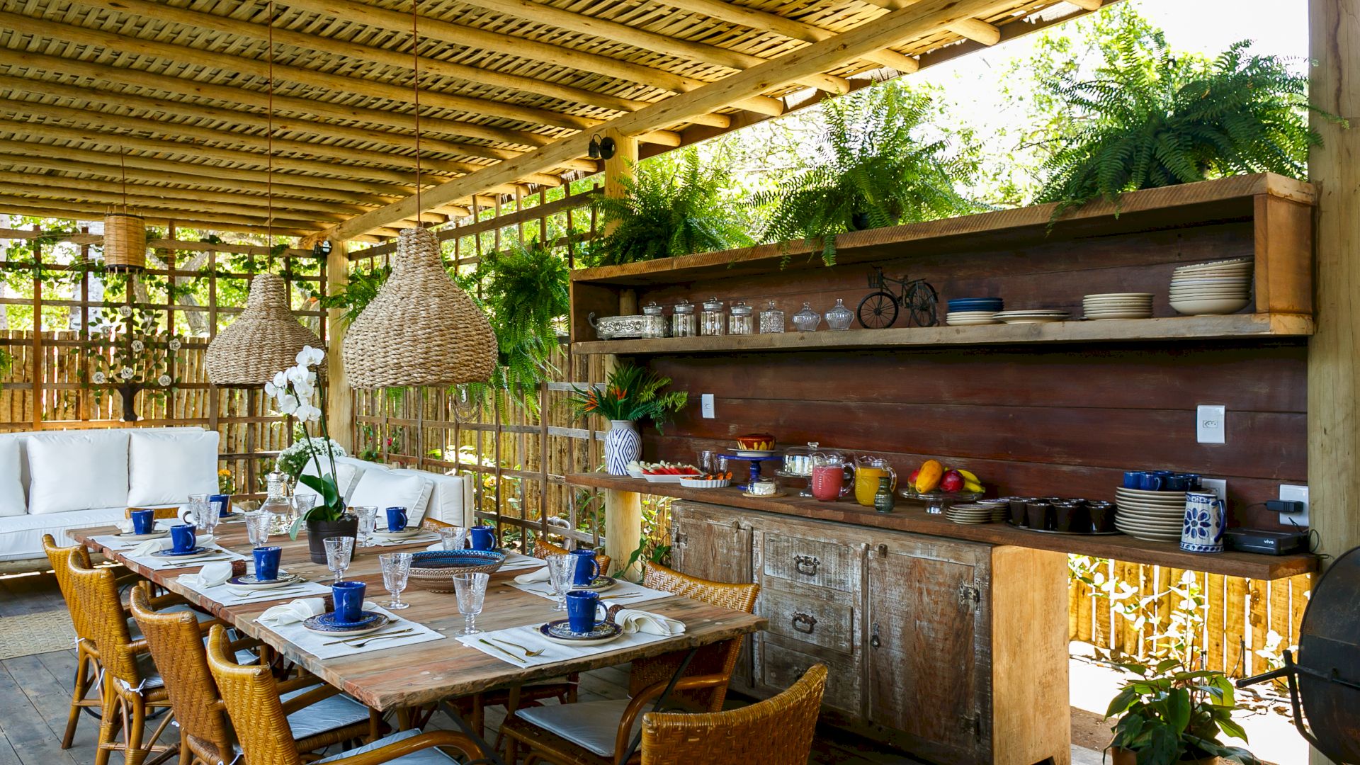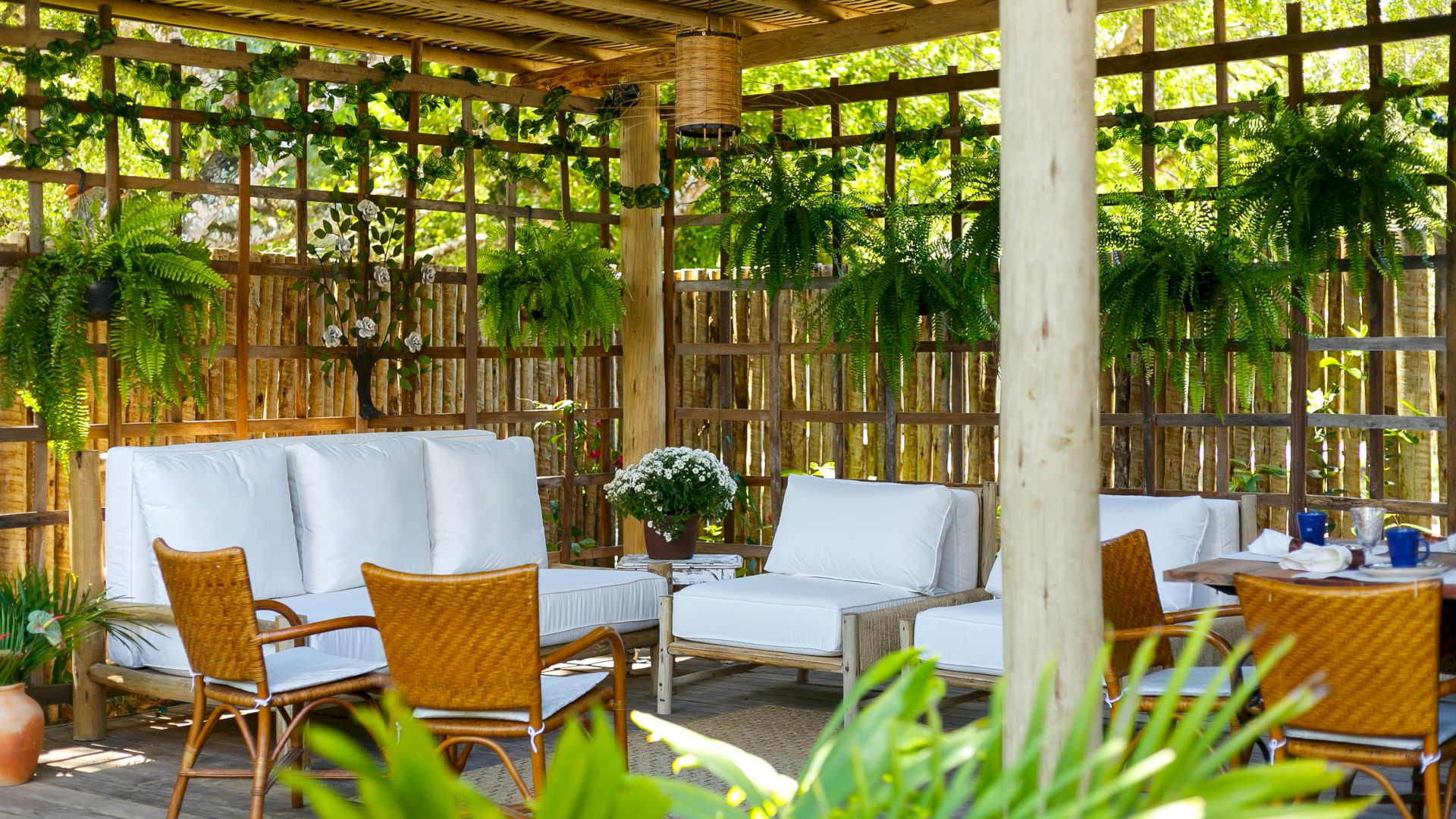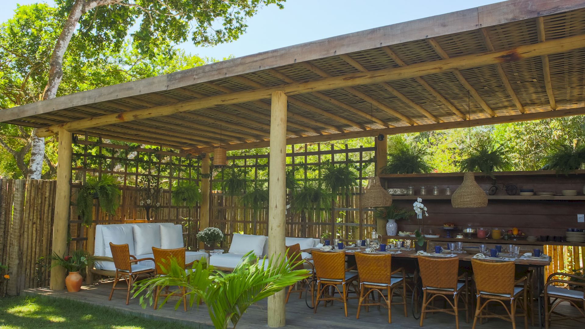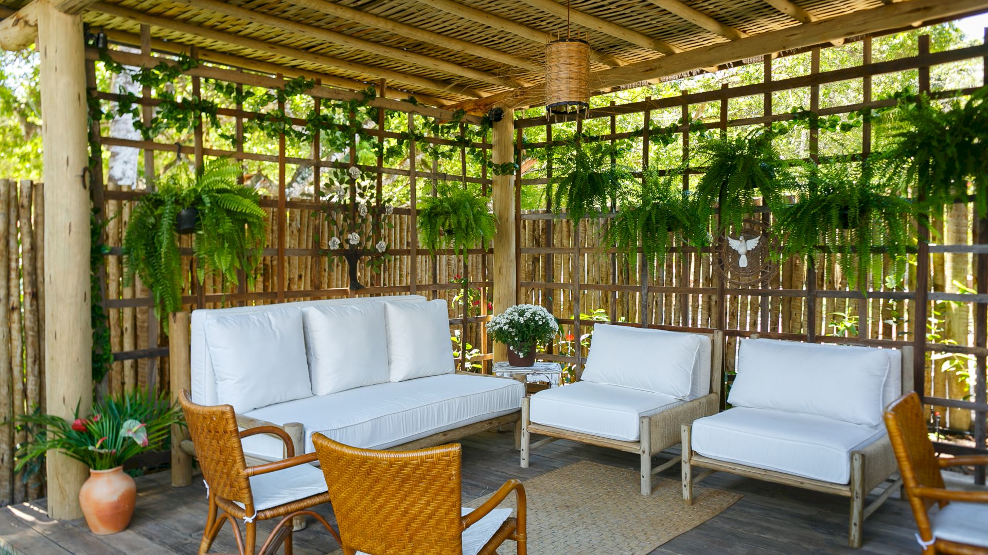Do lado de fora, uma piscina refrescante e um deck relaxante completam o cenário, convidando a desfrutar os dias ensolarados de Trancoso. A Villa Colina 05 combina simplicidade e elegância, criando o ambiente perfeito para memórias inesquecíveis em um cenário único.