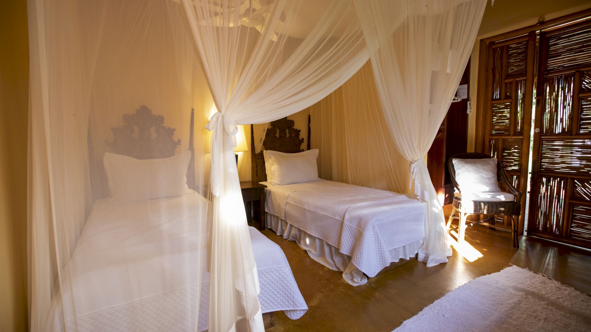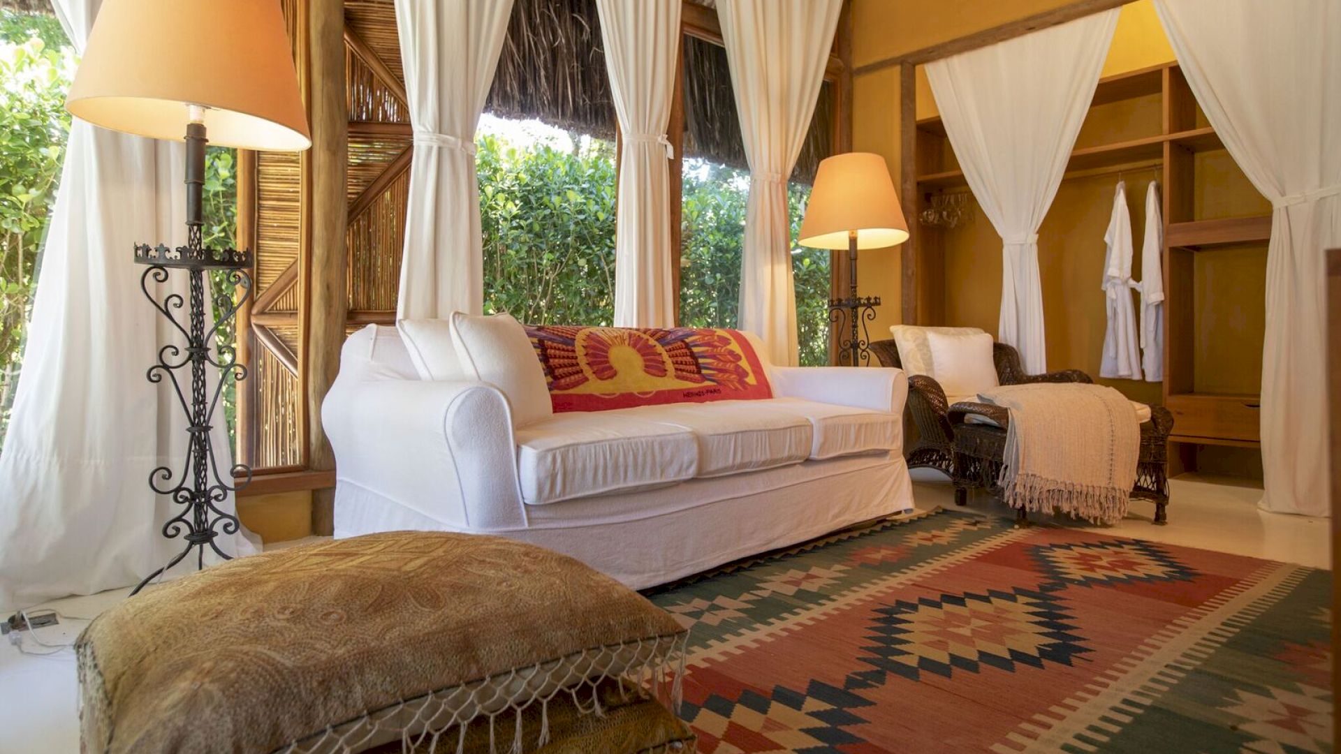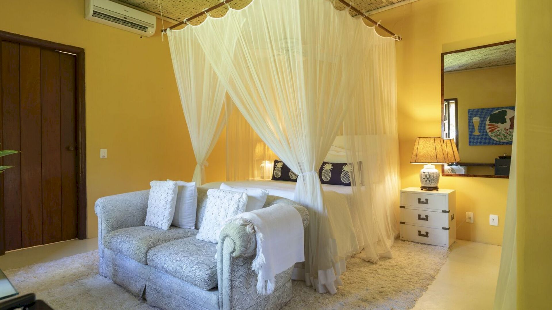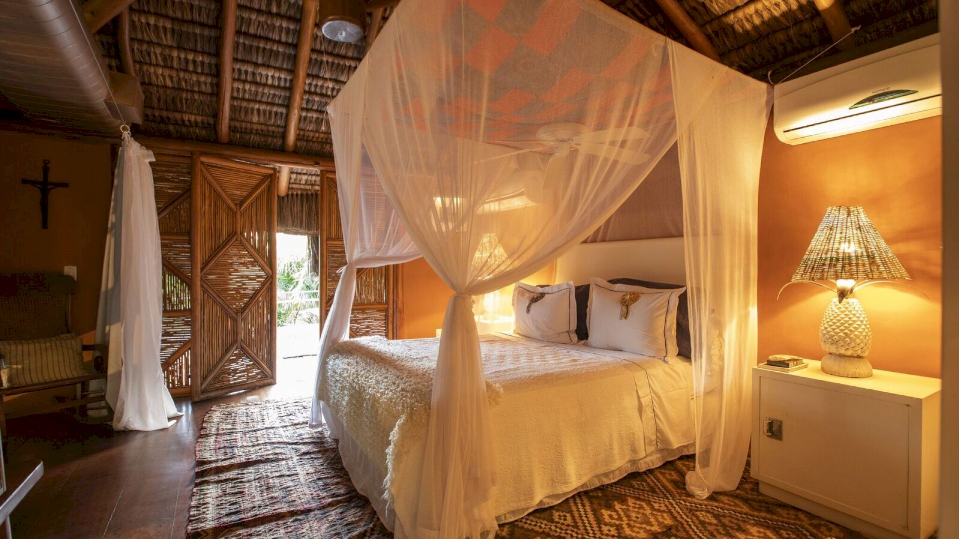 Todos os bungalows estão equipados com ar-condicionado, frigobar e internet wi-fi em fibra ótica, que também cobre toda a área da praia.