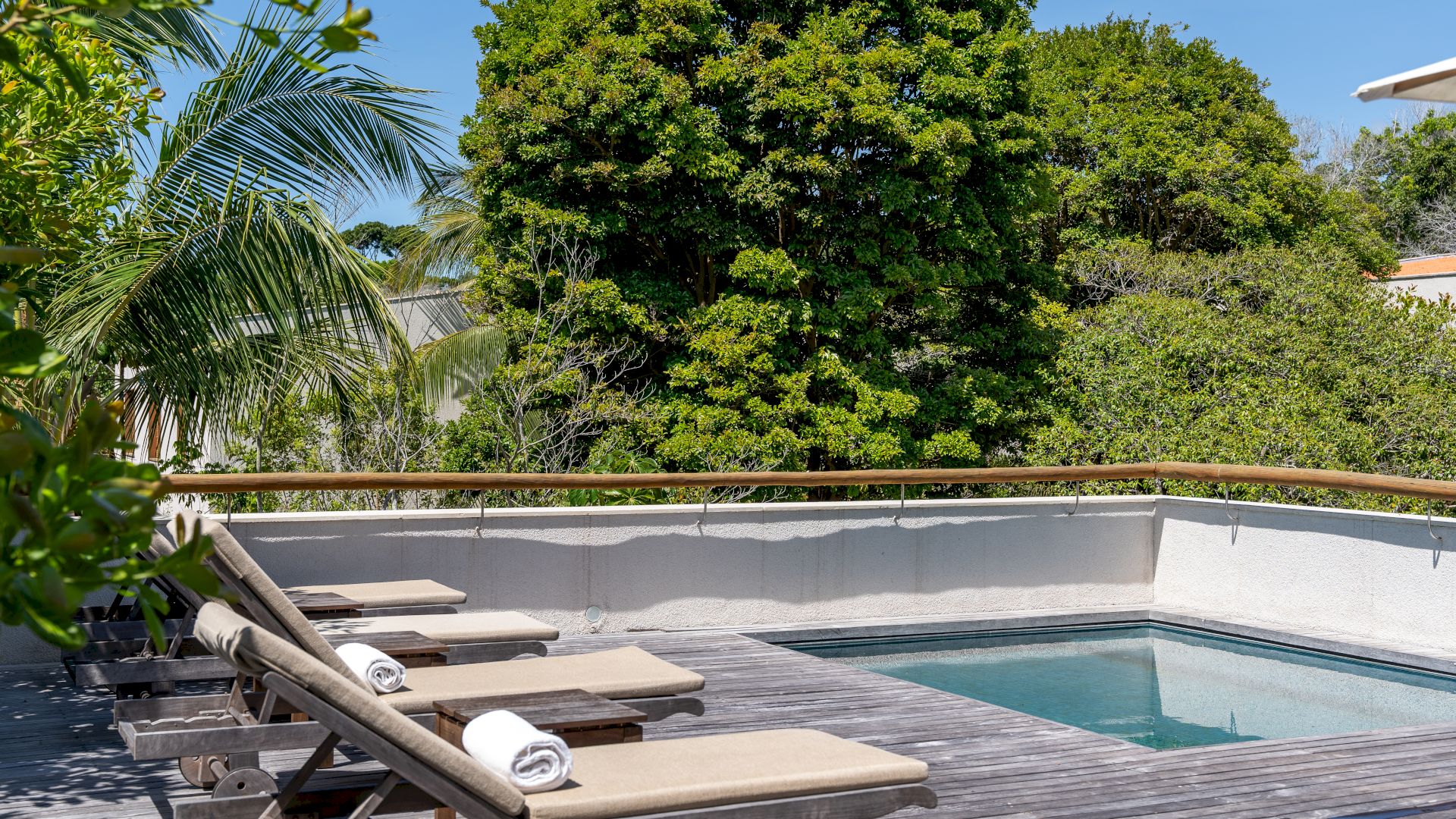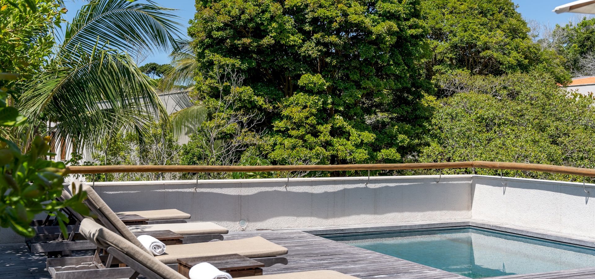 - Piscina privativa no rooftop, além de estrutura pé na areia compartilhada com o Fasano