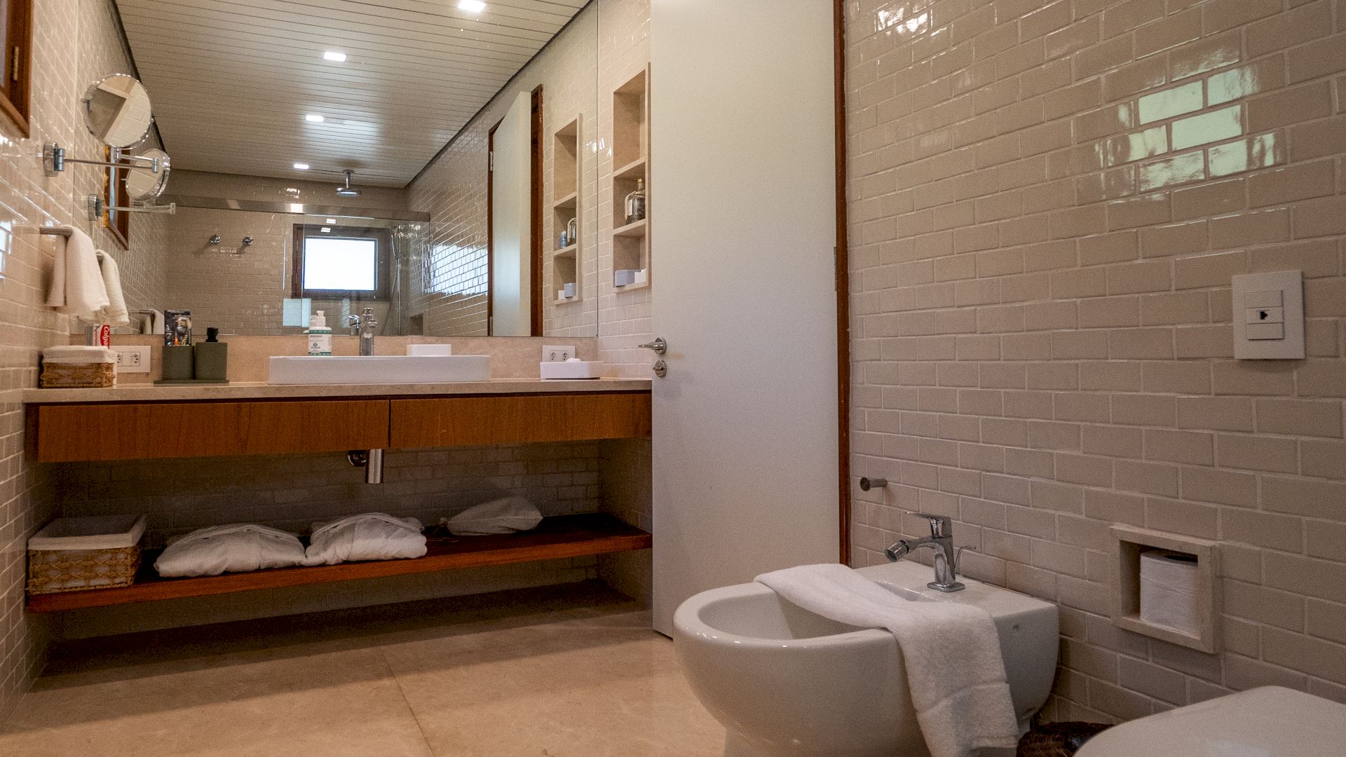 - Suítes: 5 (sendo 2 suítes independentes, 1 suíte master e 1 suíte americana com banheiro compartilhado)