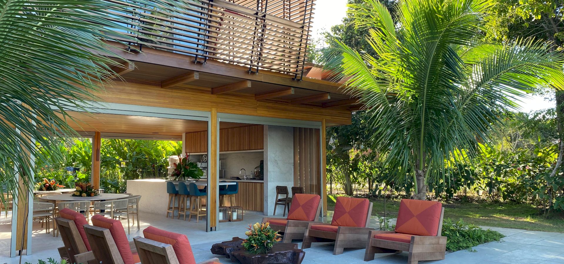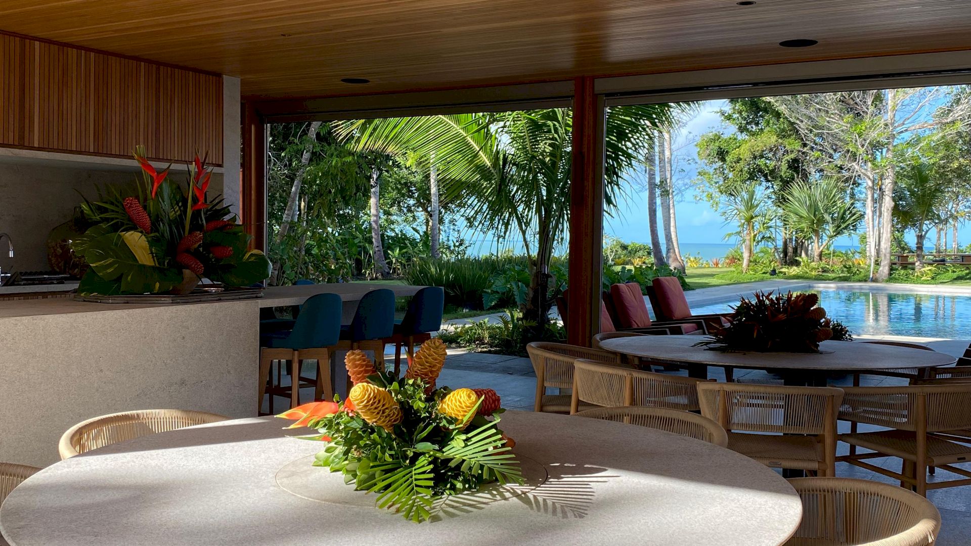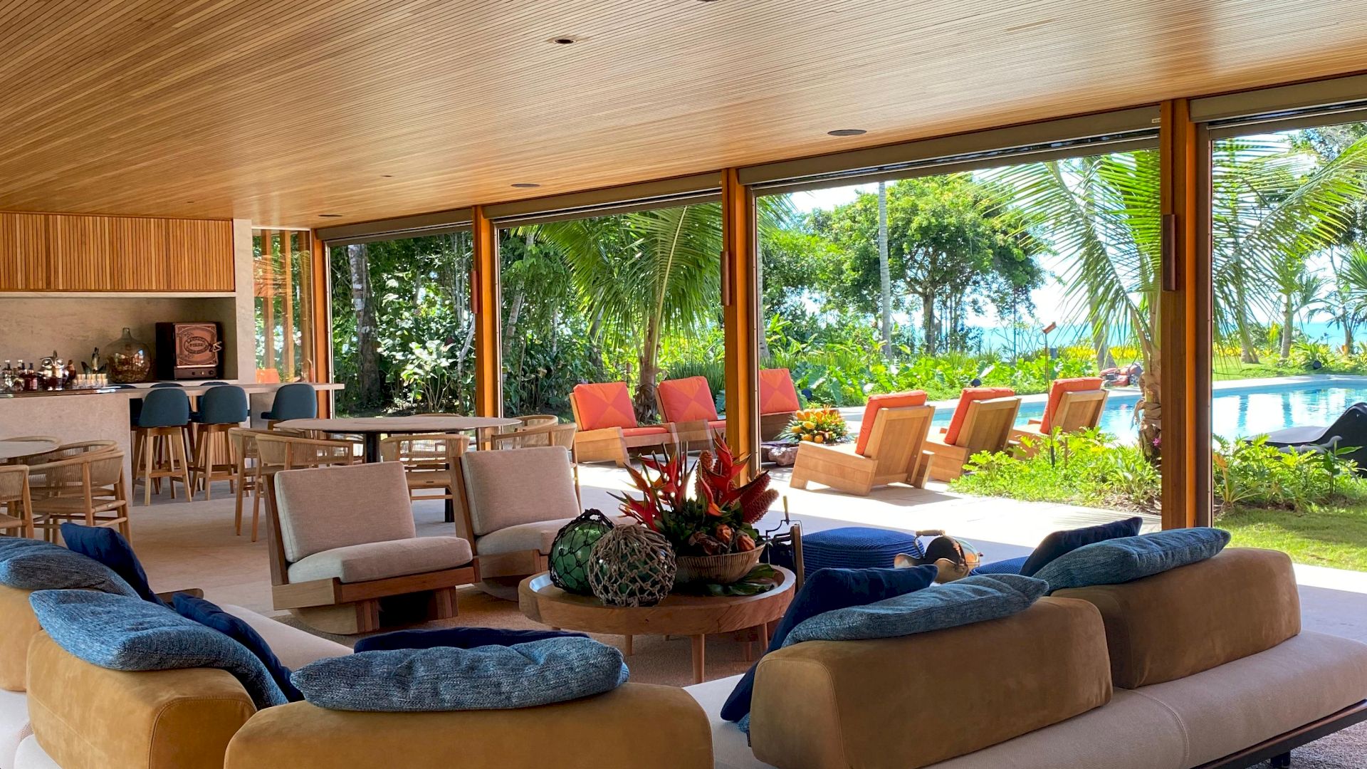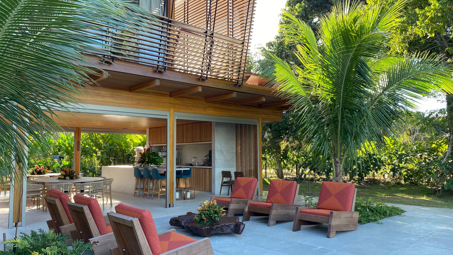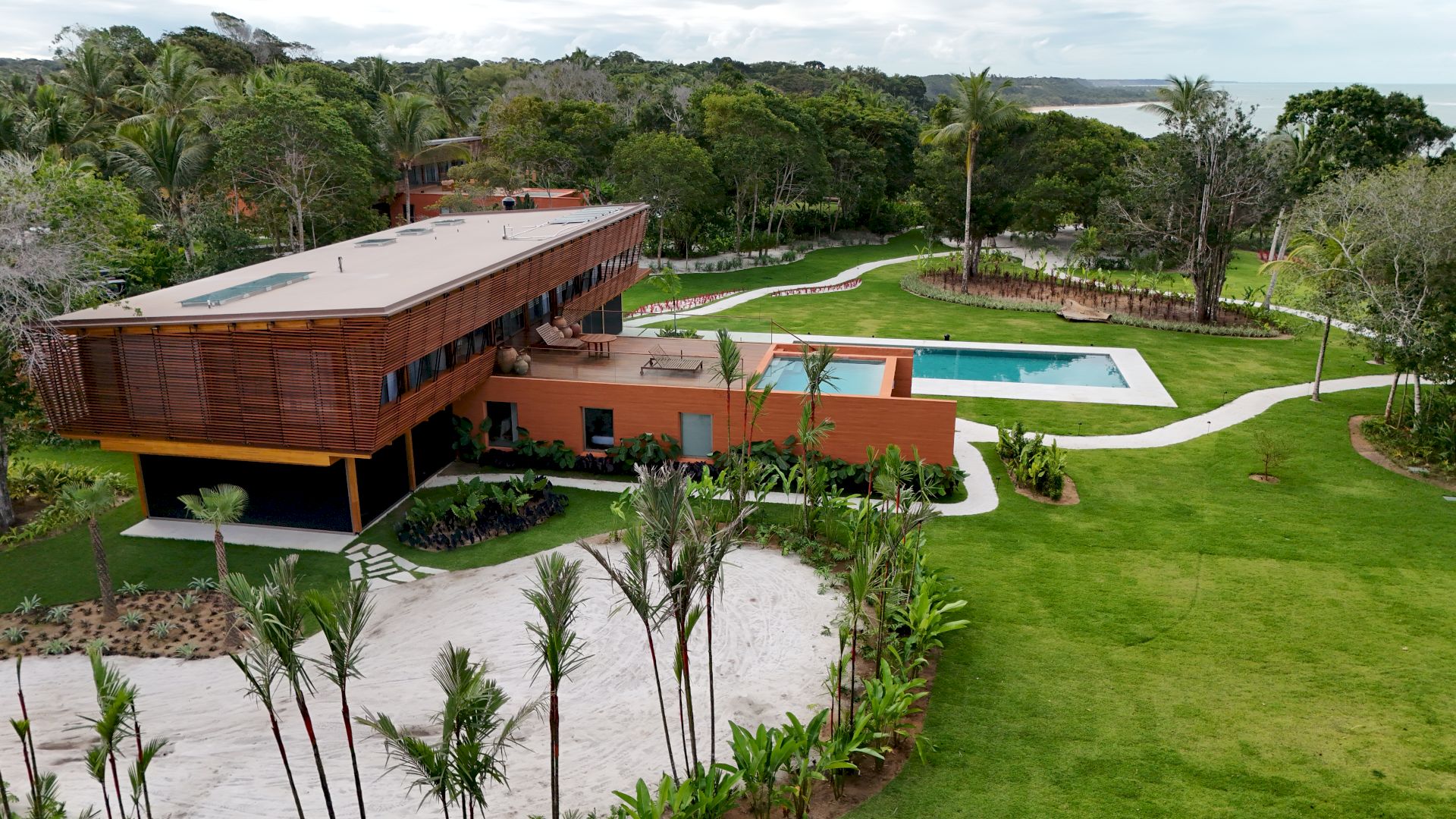 Implantada em um terreno de aproximadamente 4.000 m², com 796 m² de área construída, a propriedade foi projetada com traços contemporâneos e elegantes, priorizando o bem-estar e a convivência em meio ao cenário natural exuberante de Trancoso.
