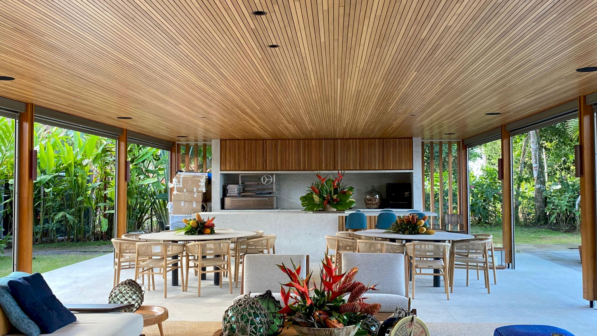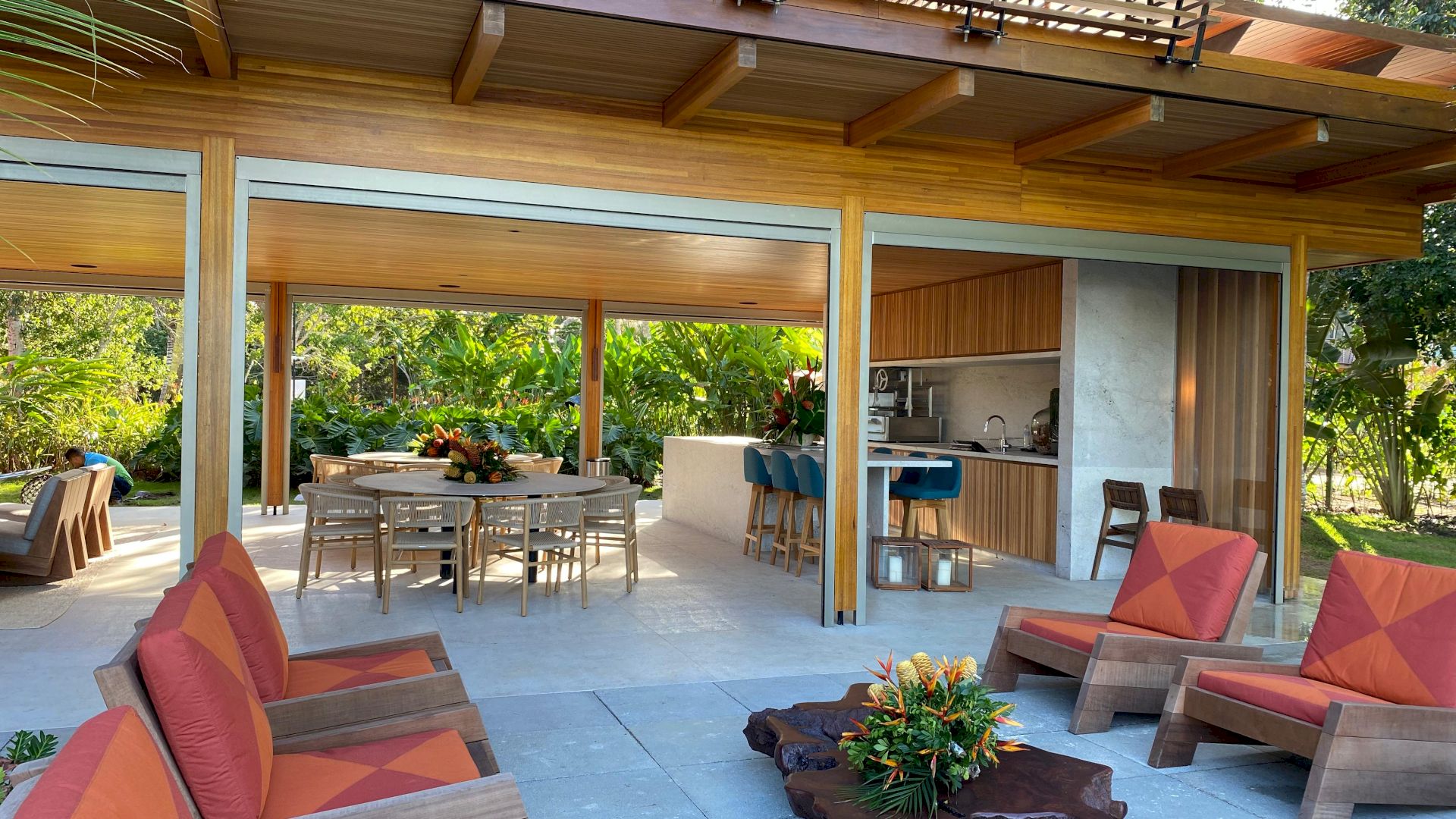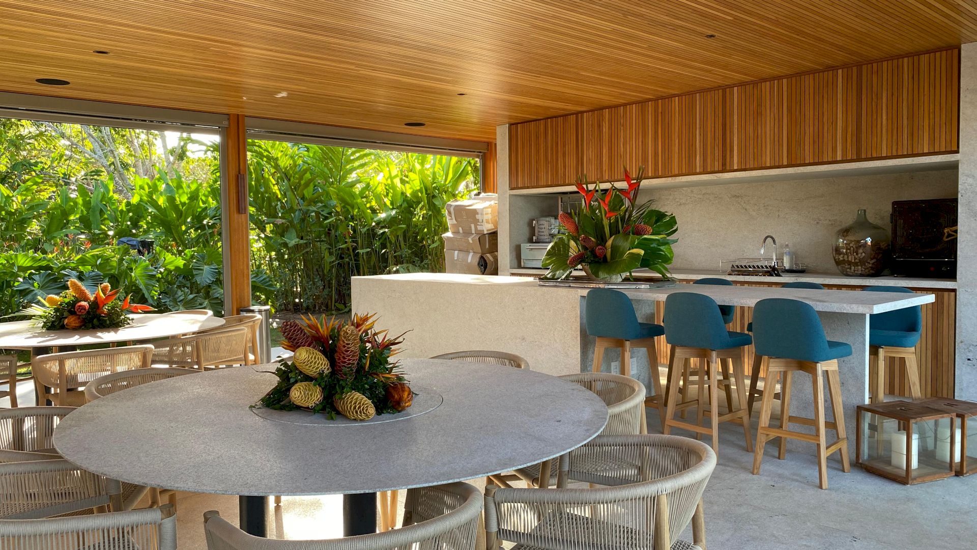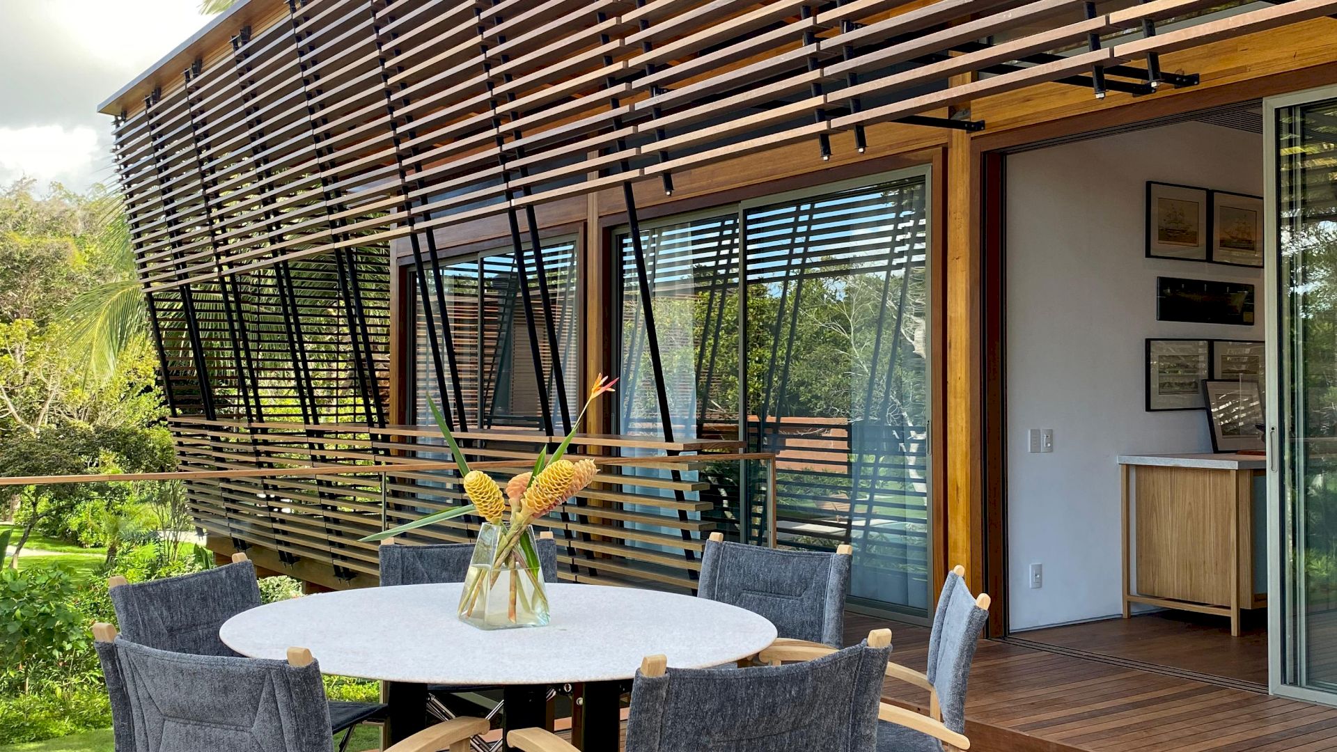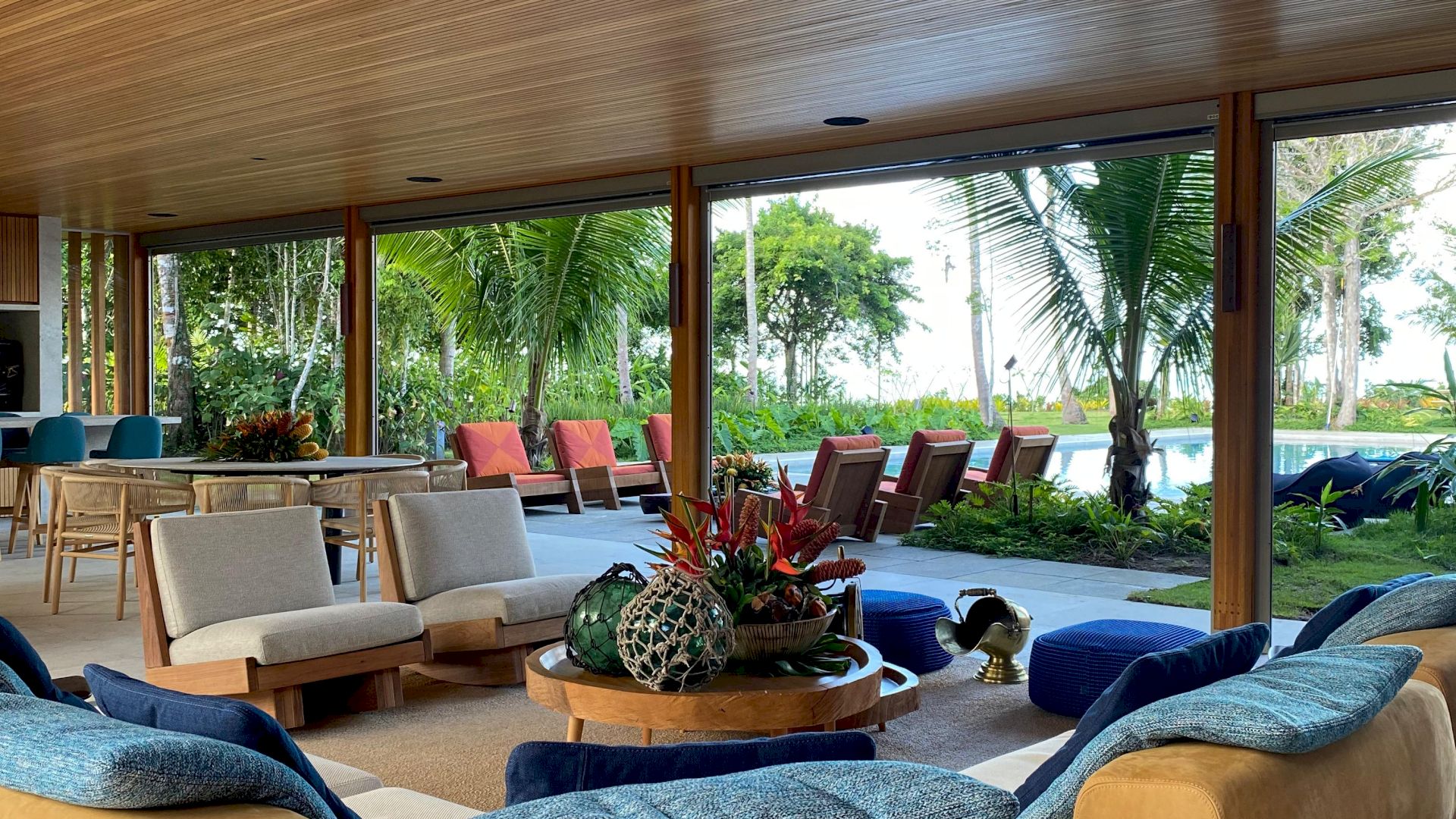 Implantada em um terreno de aproximadamente 4.000 m², com 796 m² de área construída, a propriedade foi projetada com traços contemporâneos e elegantes, priorizando o bem-estar e a convivência em meio ao cenário natural exuberante de Trancoso.
