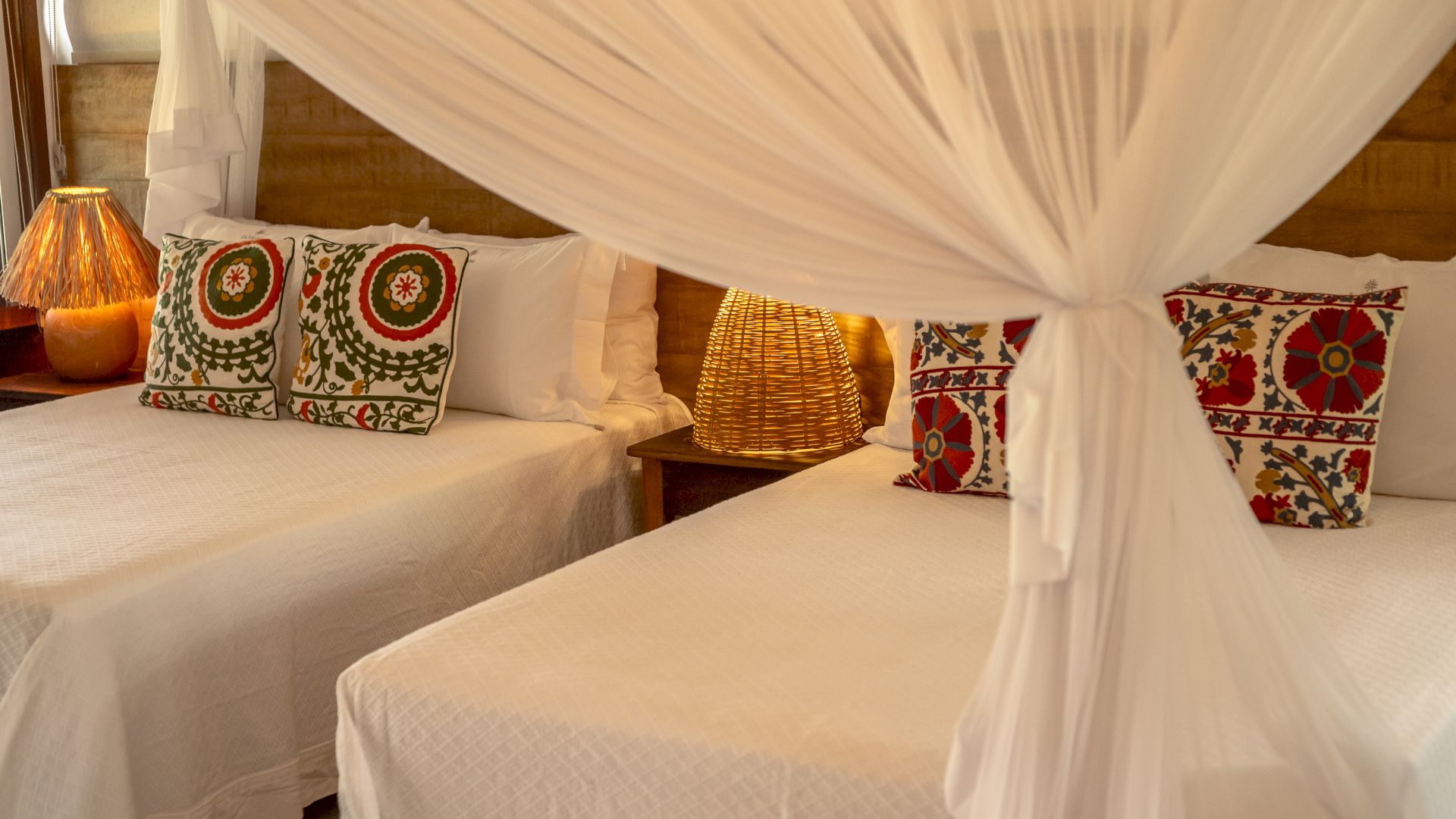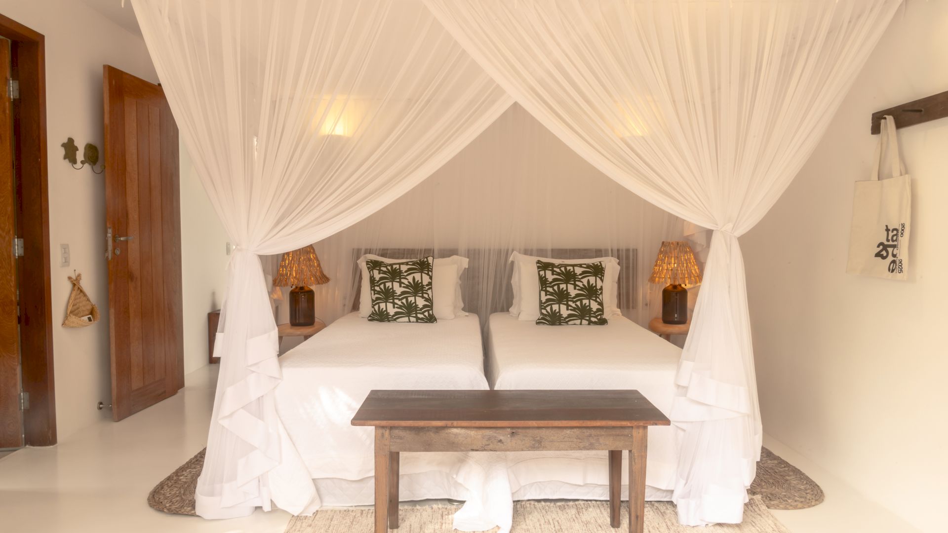 A propriedade conta com 4 suítes, acomodando confortavelmente até 8 pessoas. A configuração da casa foi pensada para garantir privacidade e integração: 3 suítes estão na casa principal, enquanto 1 suíte está localizada em um bangalô independente, ideal para hóspedes que buscam ainda mais tranquilidade.