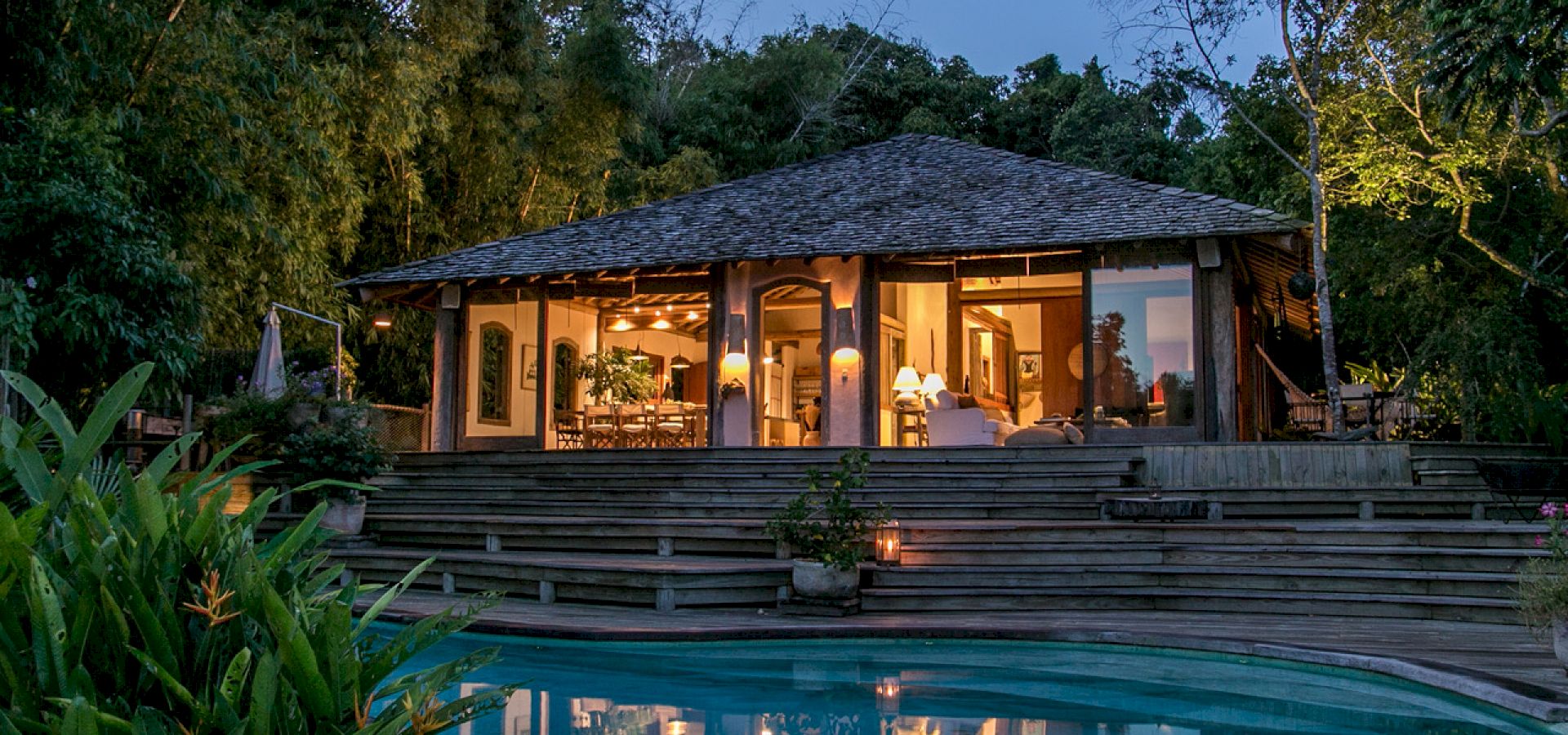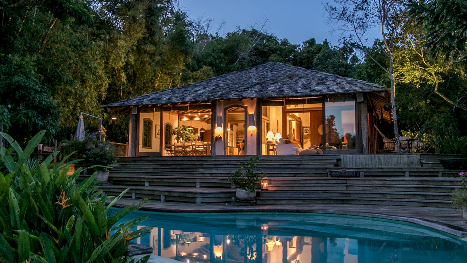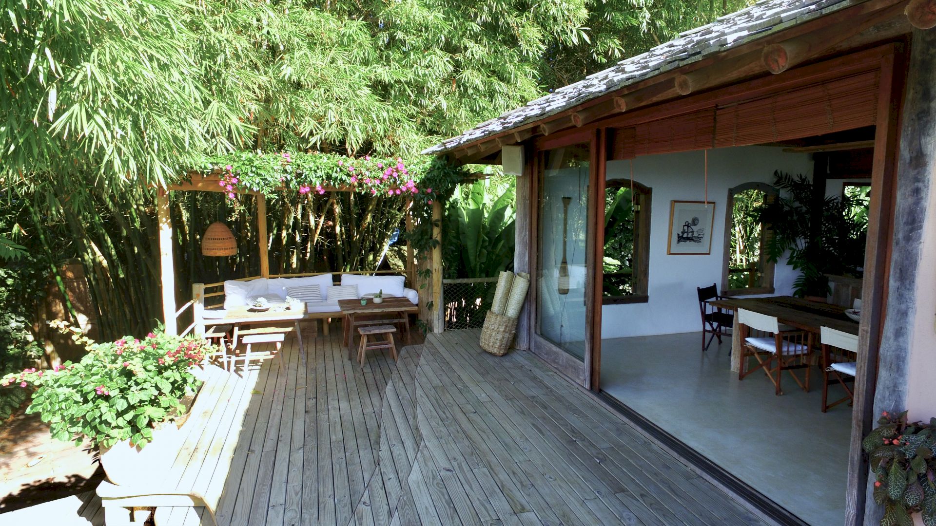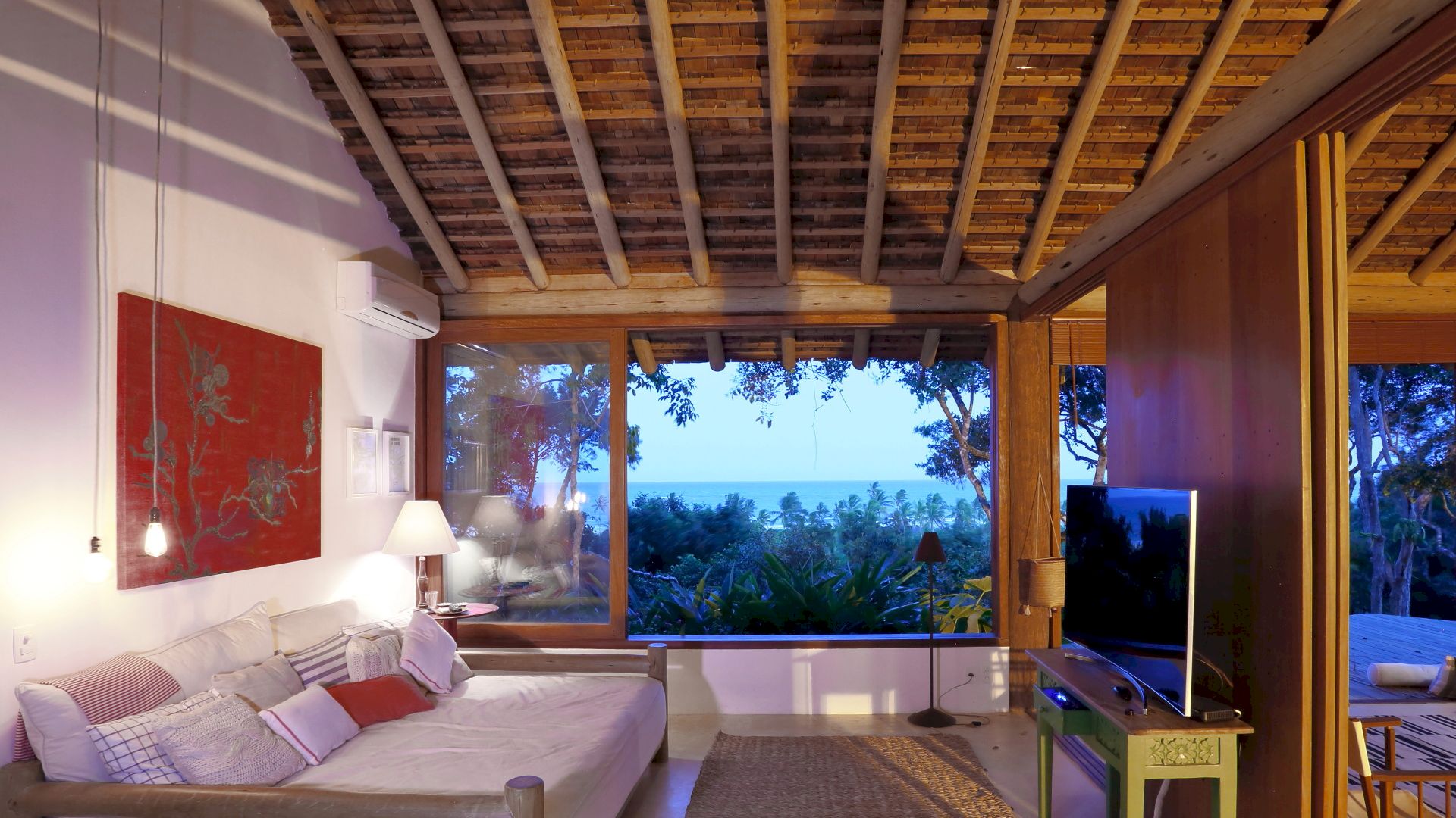 A casa é composta por 4 suítes na casa principal e 1 bangalô, todos com ar condicionado.