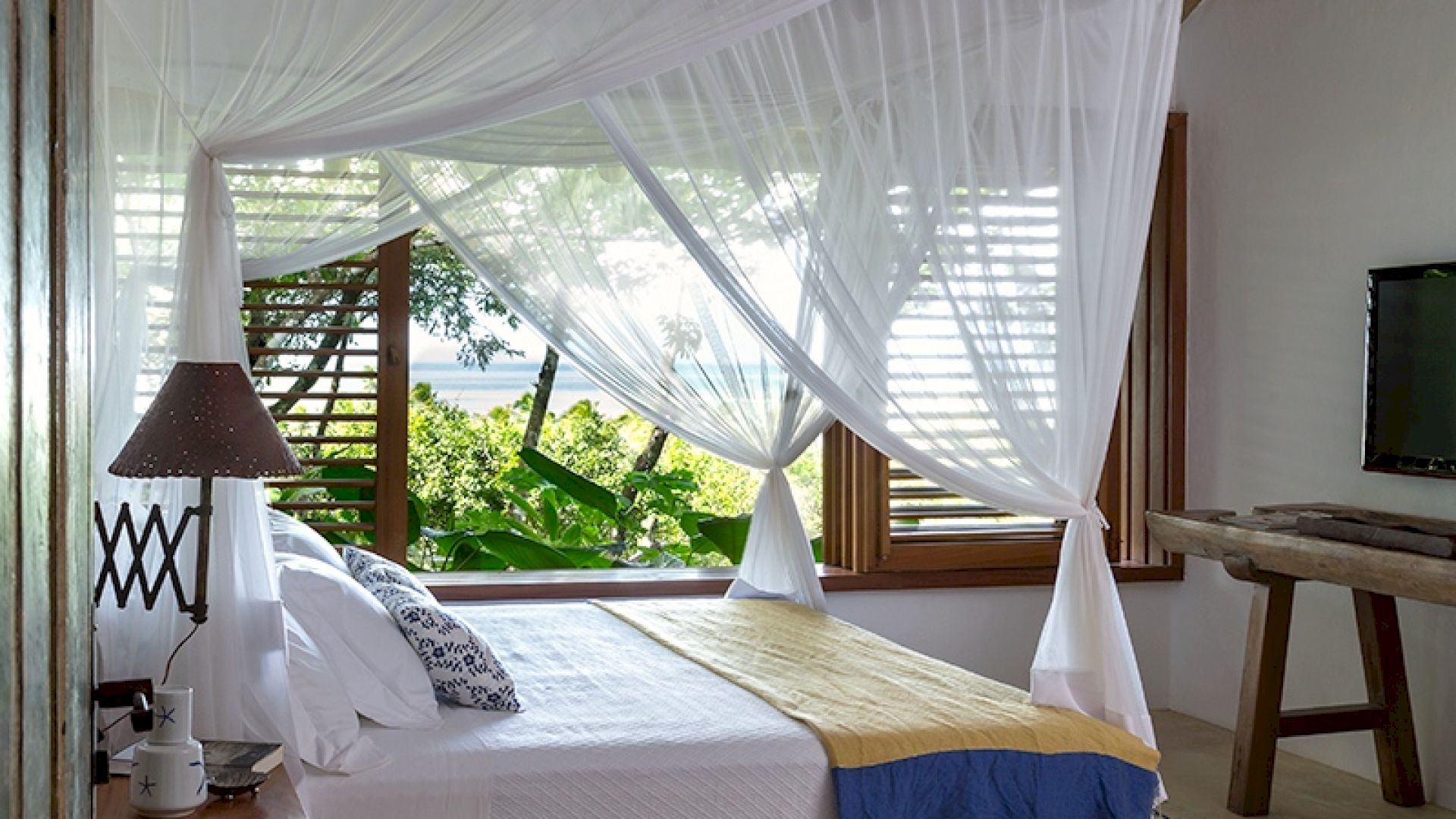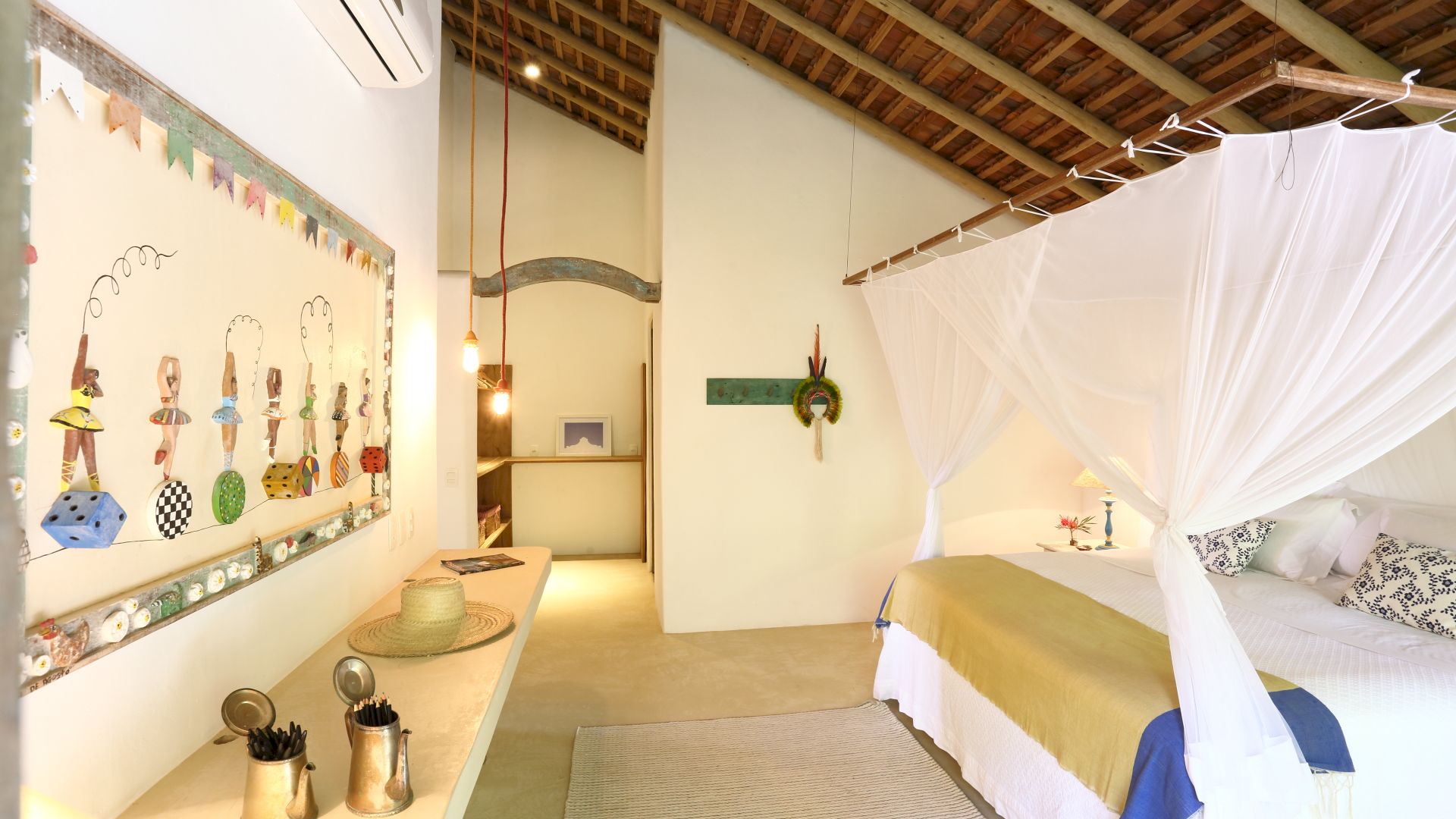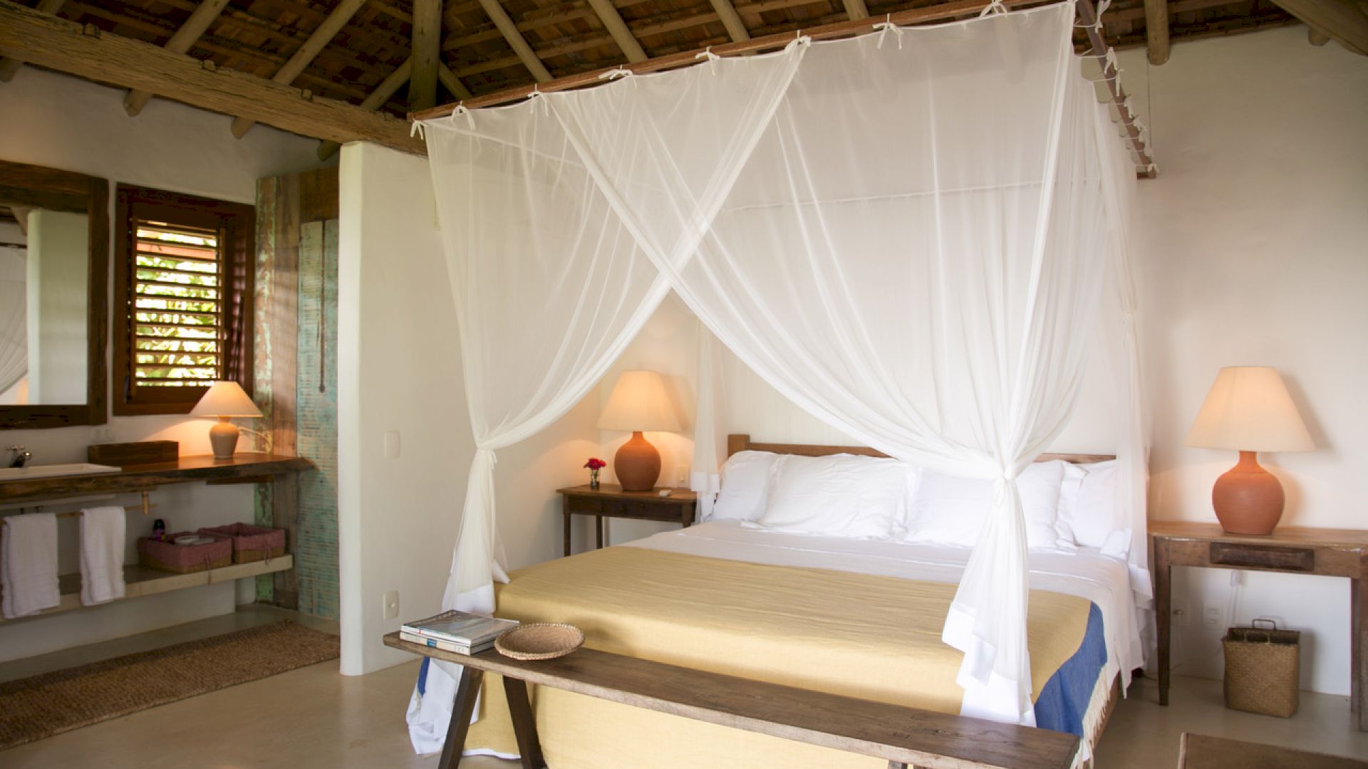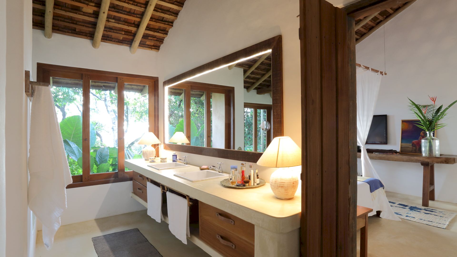 A casa é composta por 4 suítes na casa principal e 1 bangalô, todos com ar condicionado.