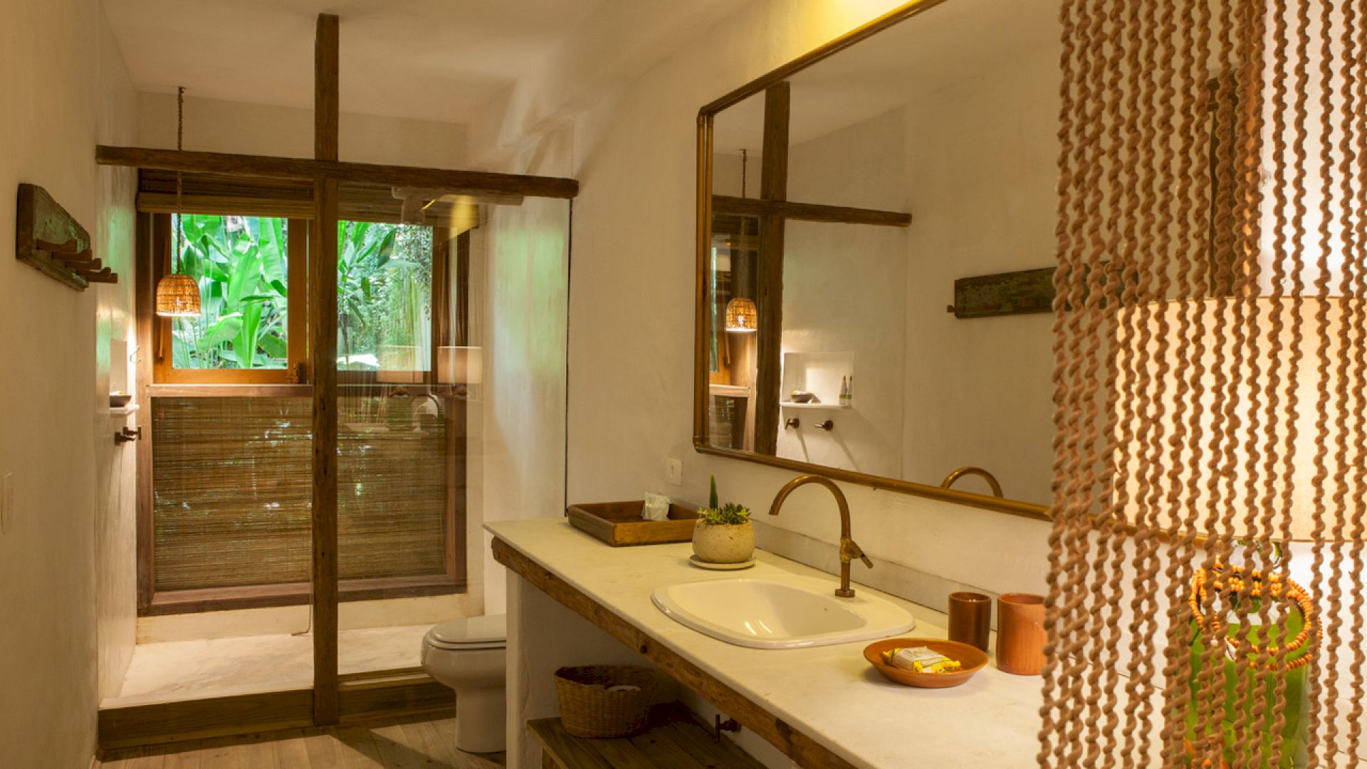 - 1 suíte com cama king size convertível para 2 camas de solteiro, cofre e uma deliciosa varanda integrada a mata, no andar principal