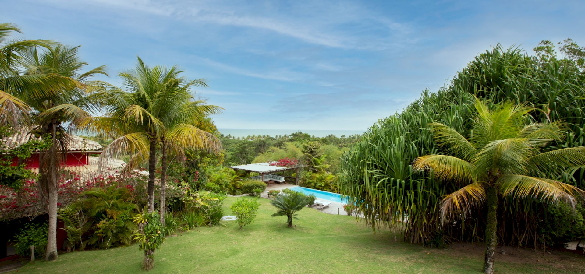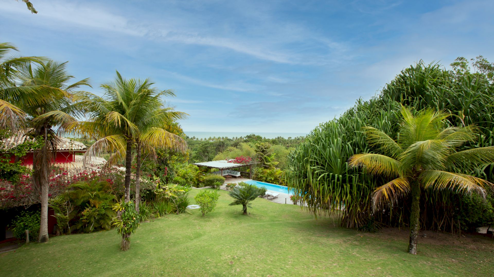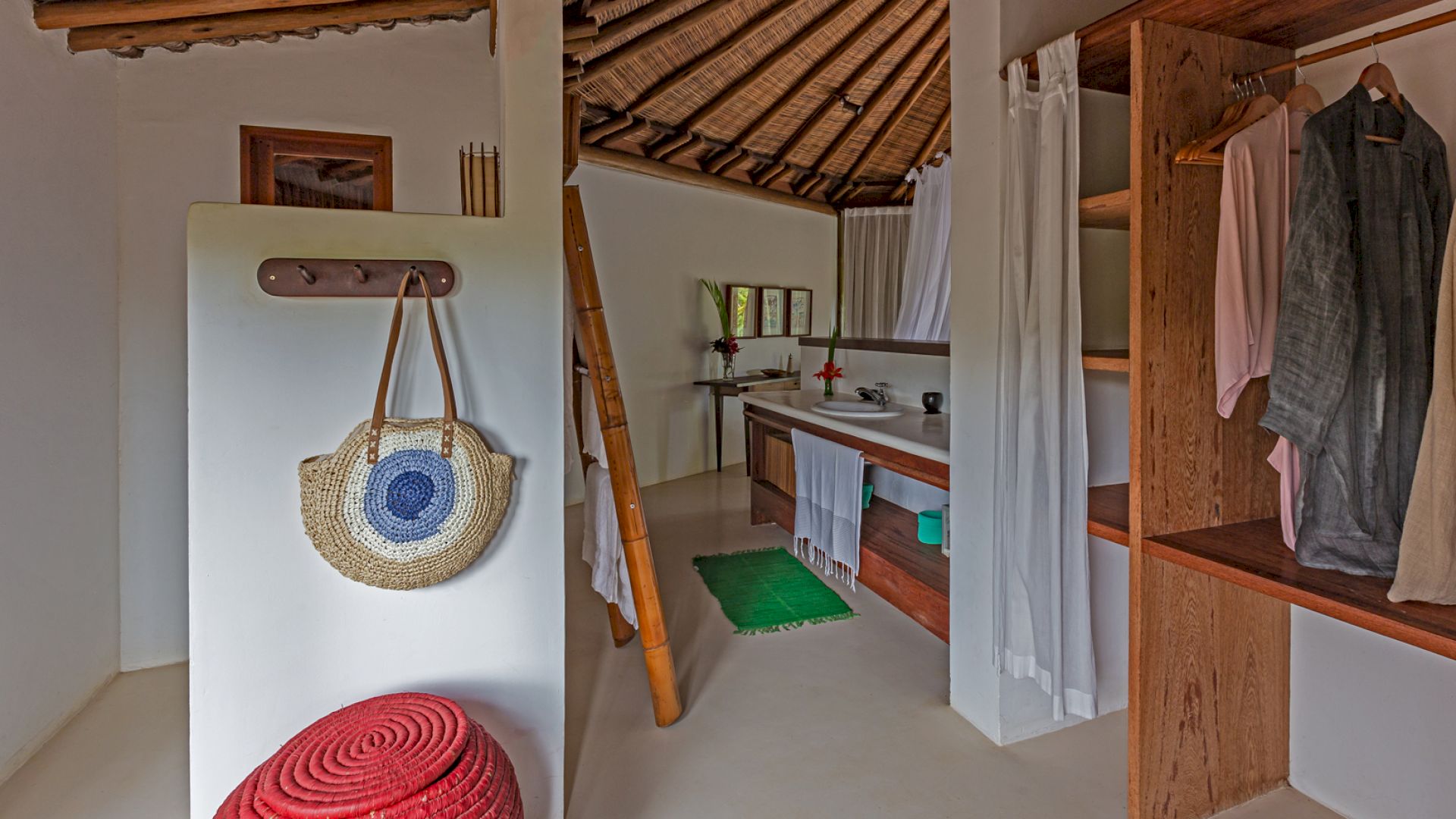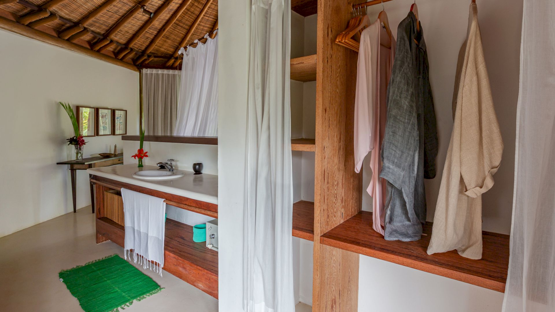 jardim, cama de casal king size, closet, cofre, ar condicionado, ventilador de teto, mosquiteiro.