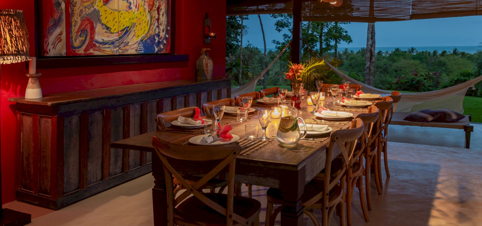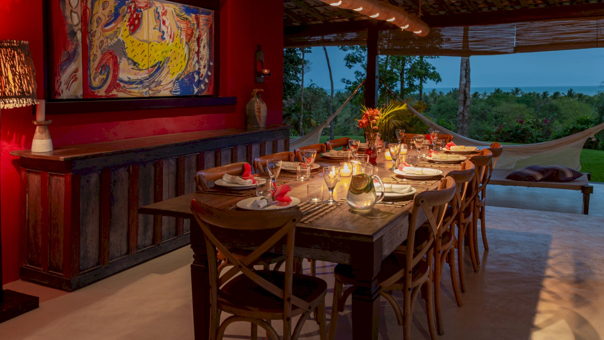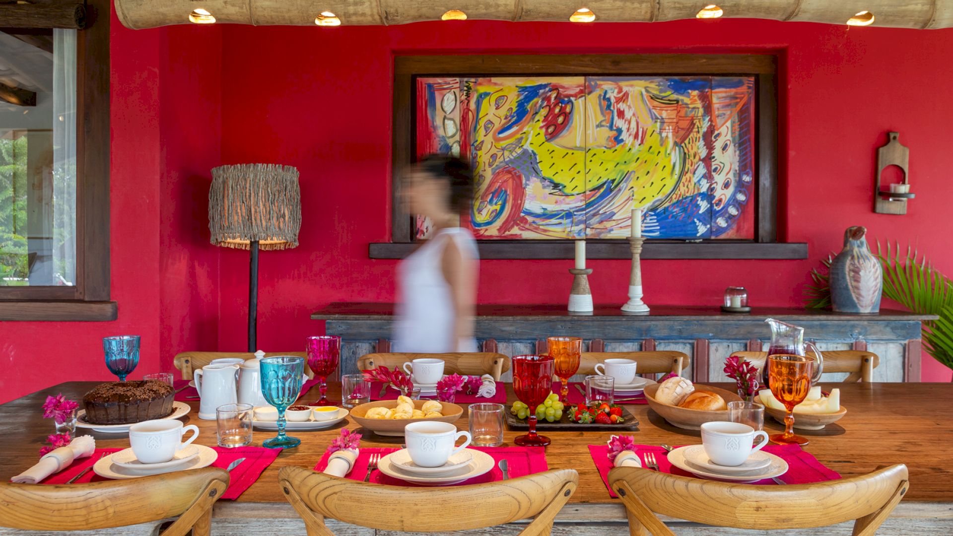 – Sala de jantar com mesa e aparelhos de jantar para 16 pessoas