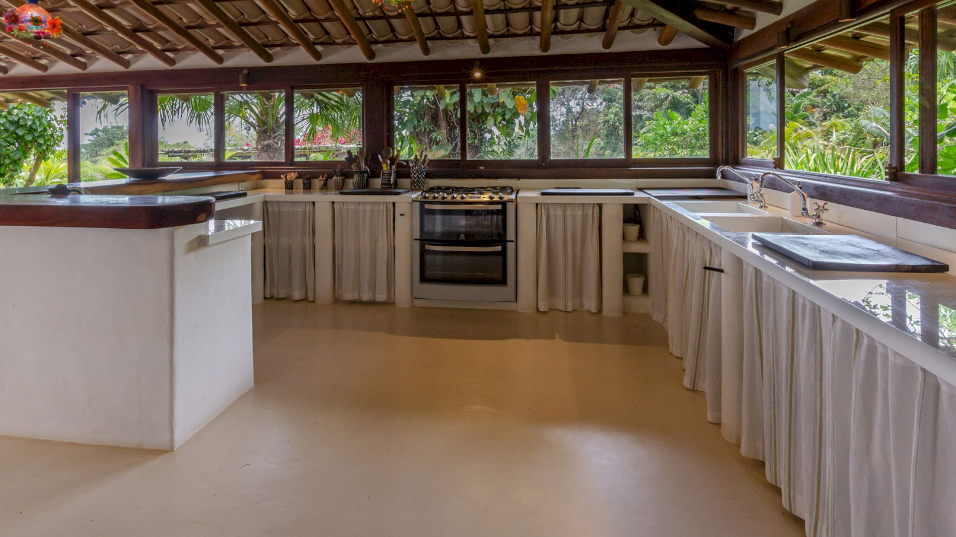 – Cozinha equipada com 2 geladeiras, 1 freezer horizontal, 1 fogão 5 bocas, 1 forno, 1 fogão