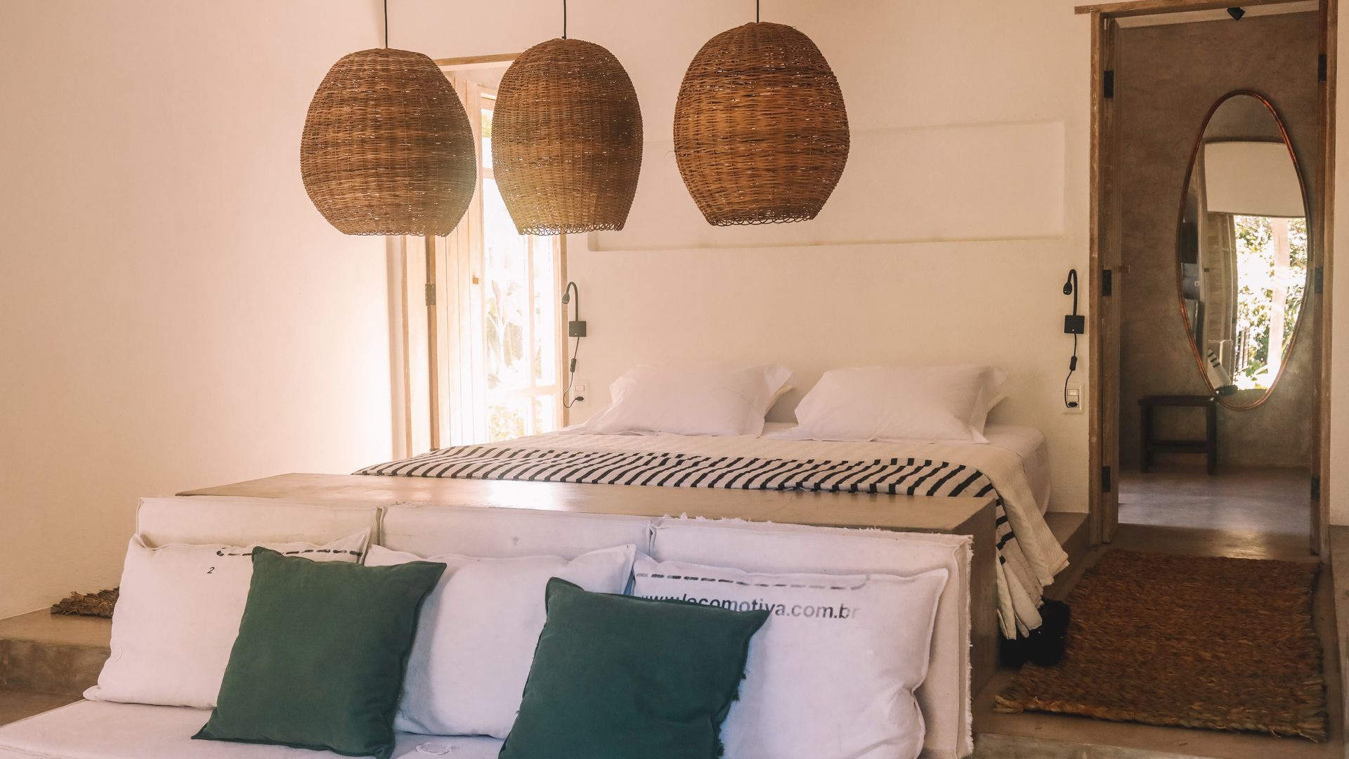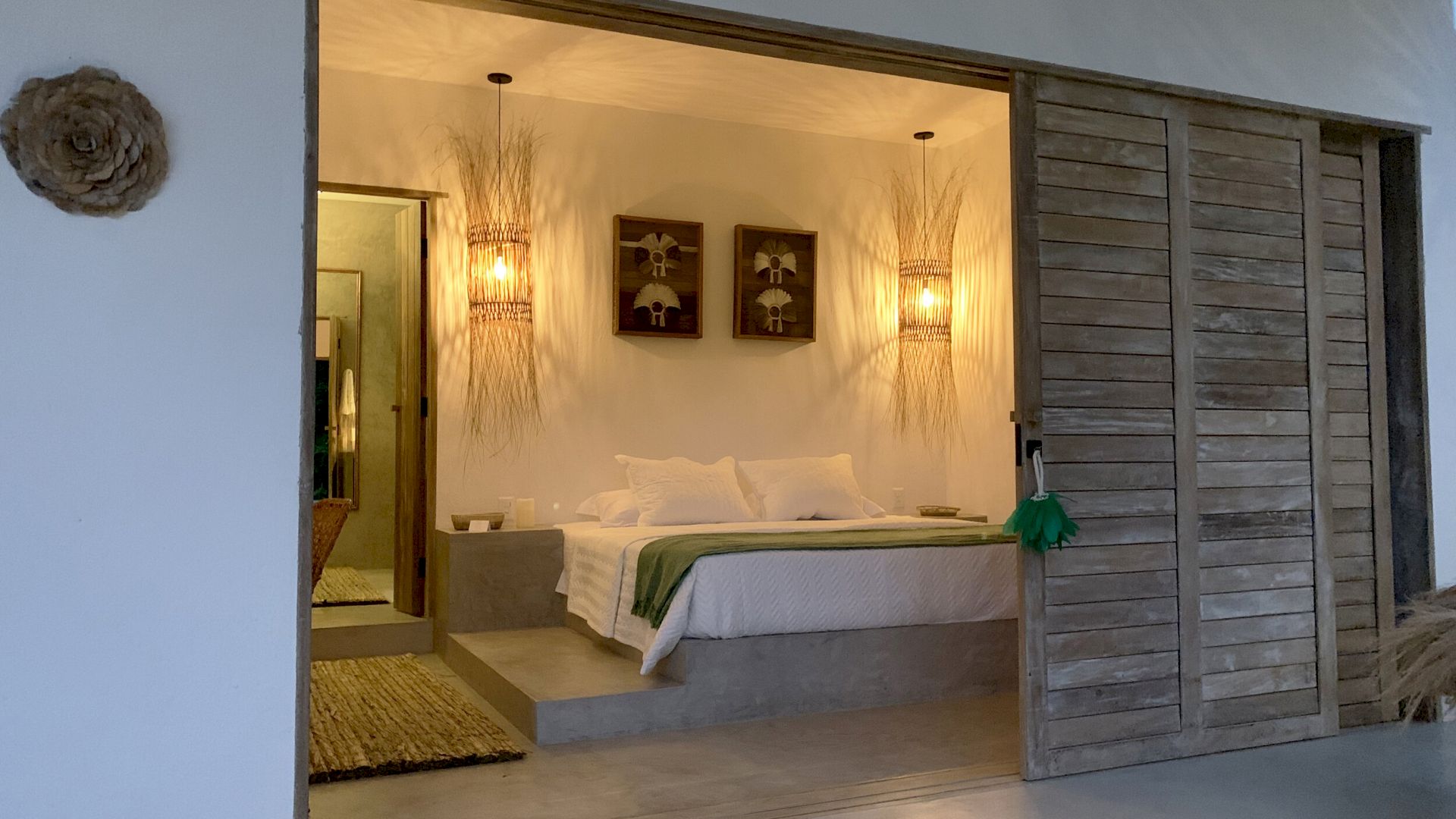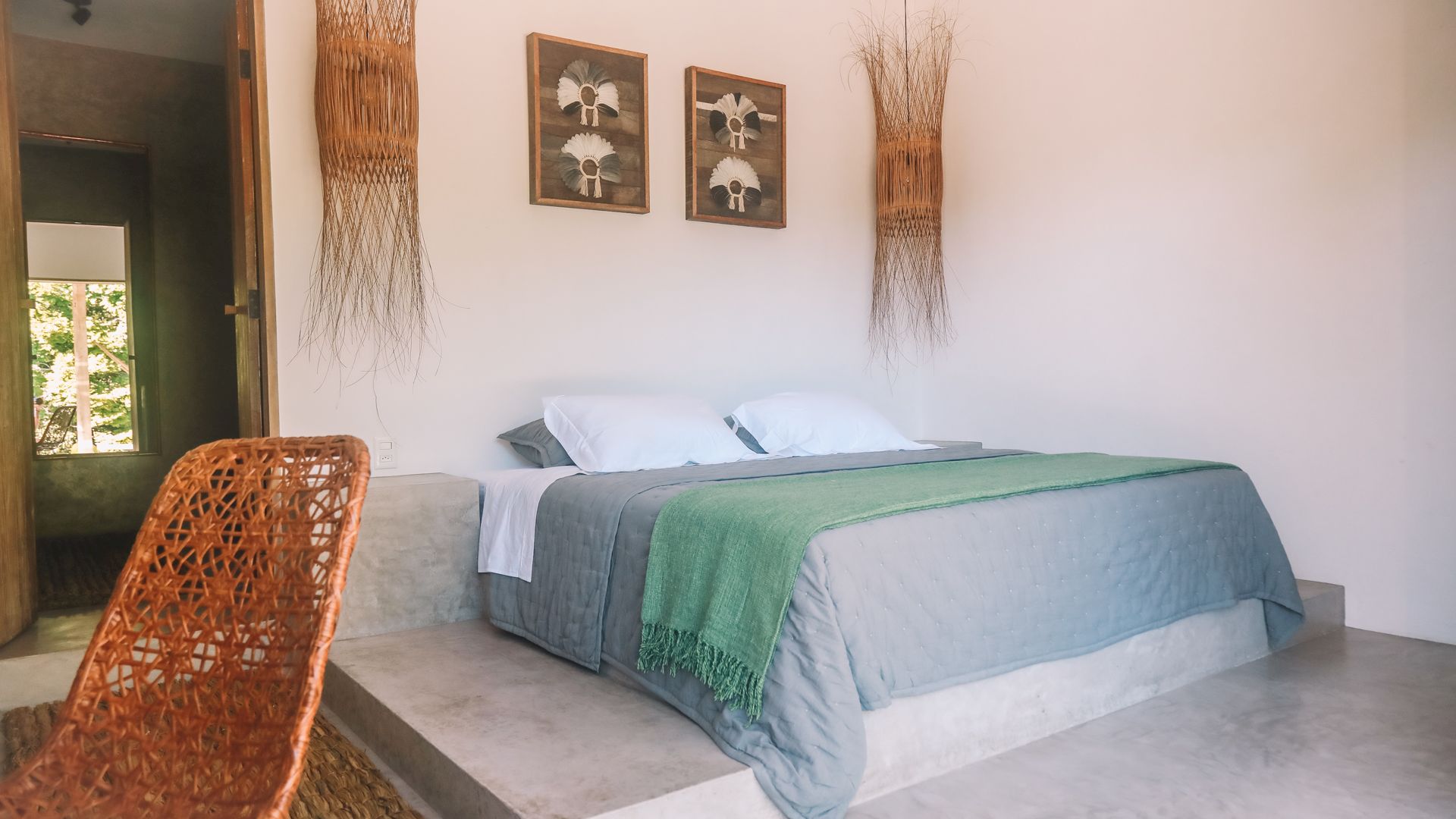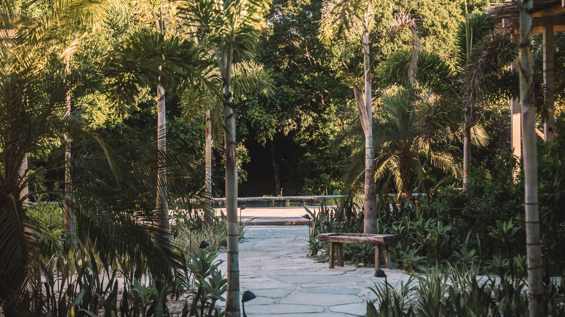 Cada suíte possui jardim privativo e banheiro integrado à natureza, proporcionando privacidade e contato direto com o ambiente tropical. Os quartos foram projetados em duas estruturas distintas, cada um com layout e mobiliário exclusivo.