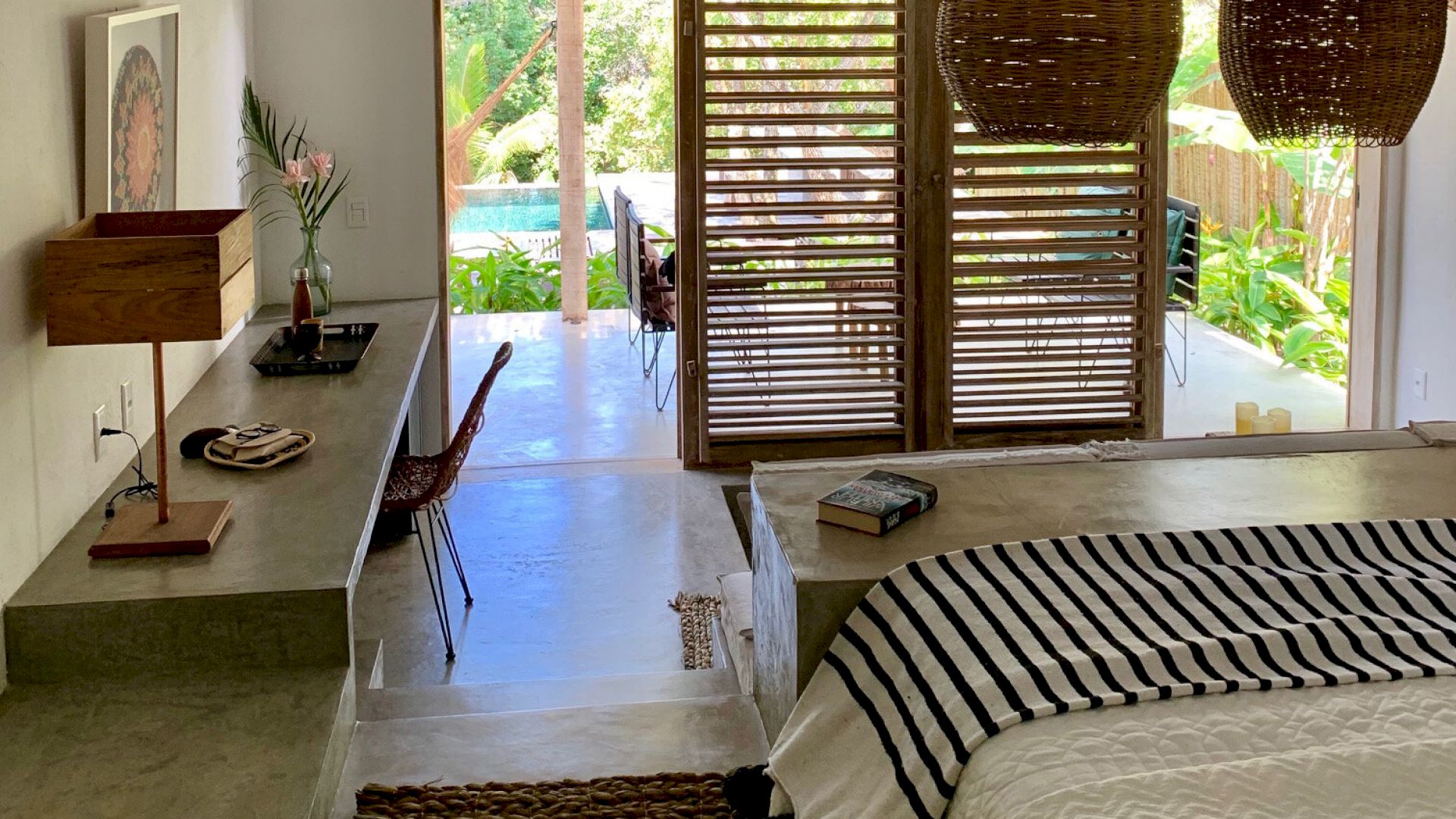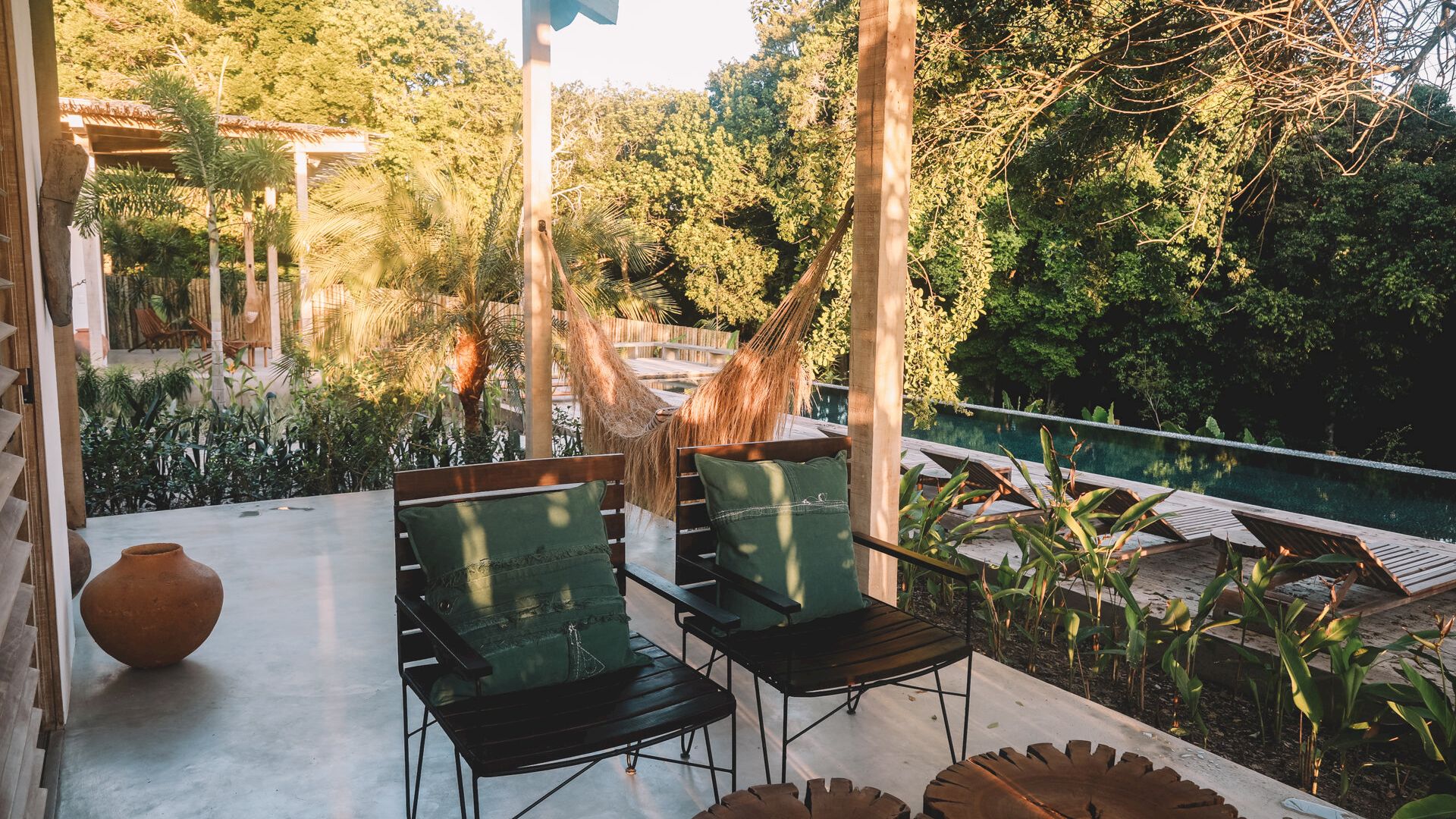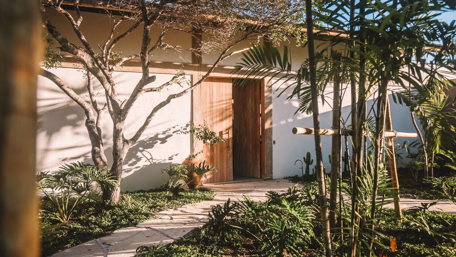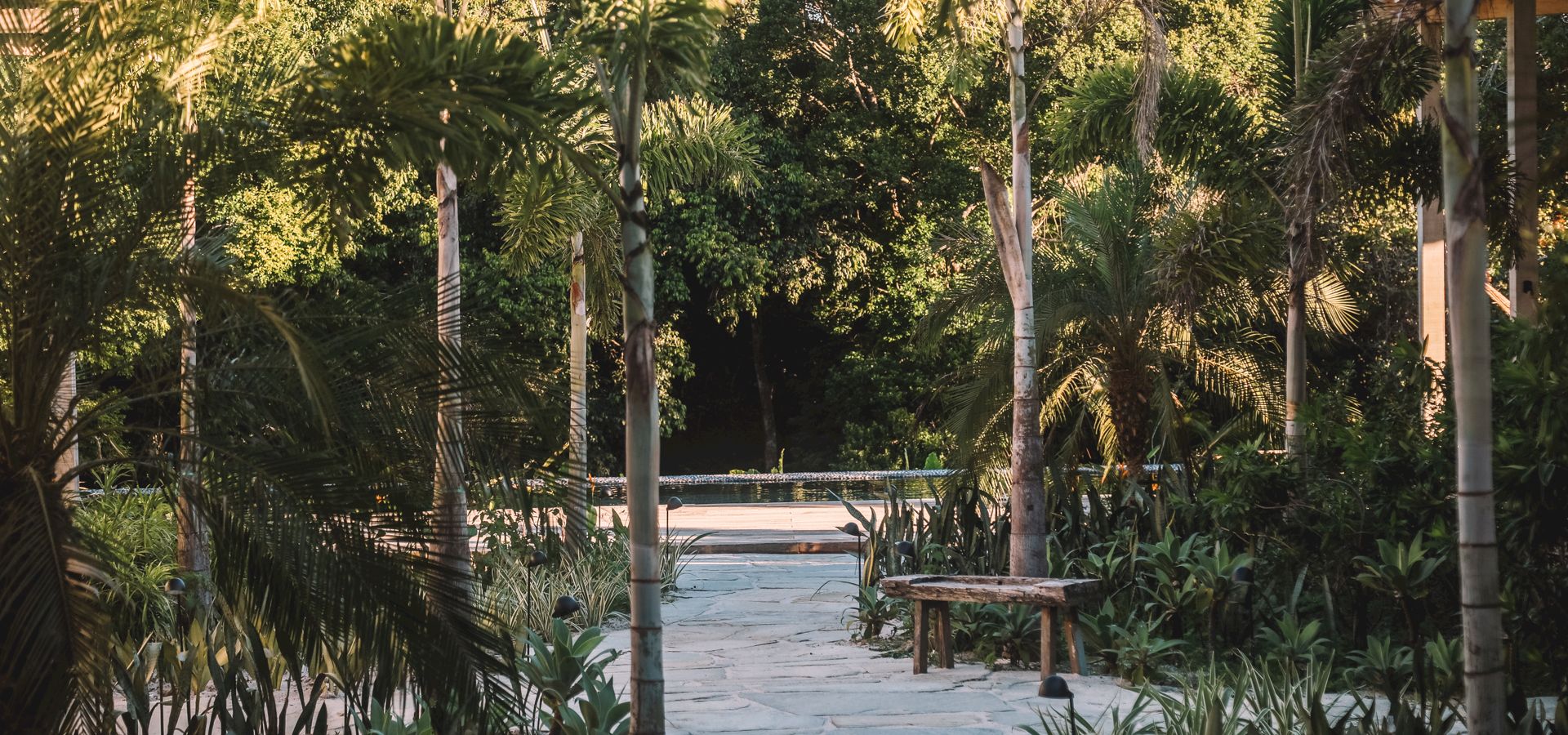 Cada suíte possui jardim privativo e banheiro integrado à natureza, proporcionando privacidade e contato direto com o ambiente tropical. Os quartos foram projetados em duas estruturas distintas, cada um com layout e mobiliário exclusivo.