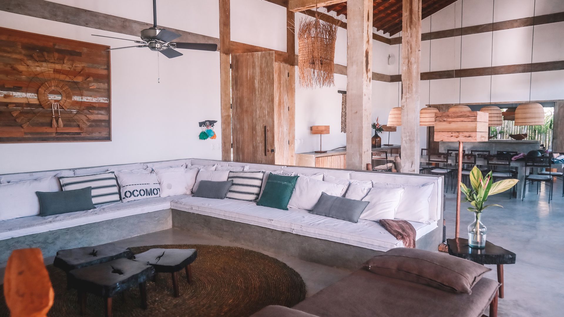 Localizada dentro do Condomínio Altos de Trancoso, a villa mistura exclusividade e privacidade com a proximidade do Quadrado, centro histórico tombado pela Unesco (10 minutos a pé), e da praia tropical (cerca de 800 metros).