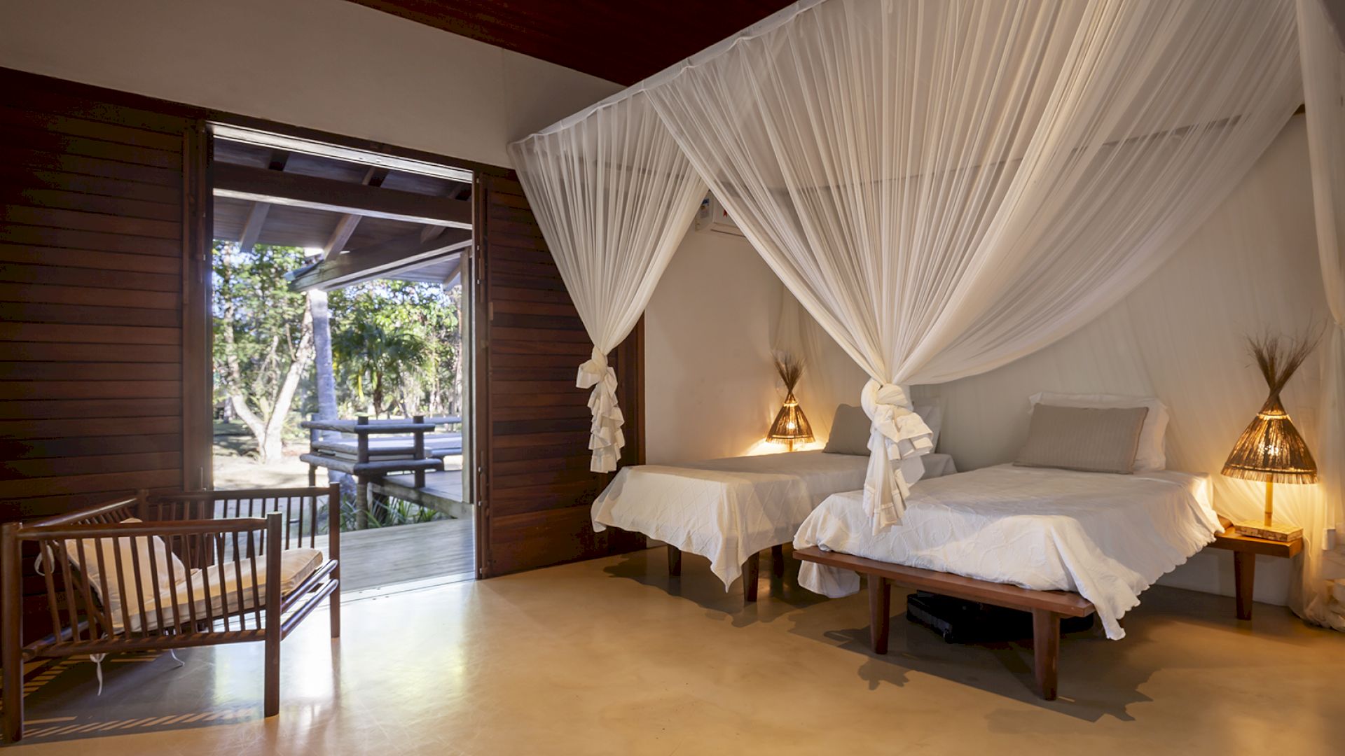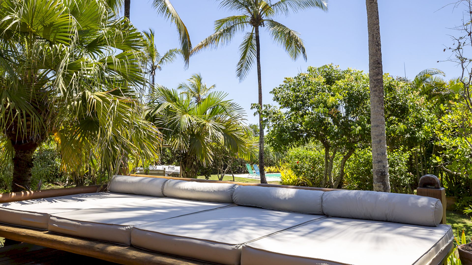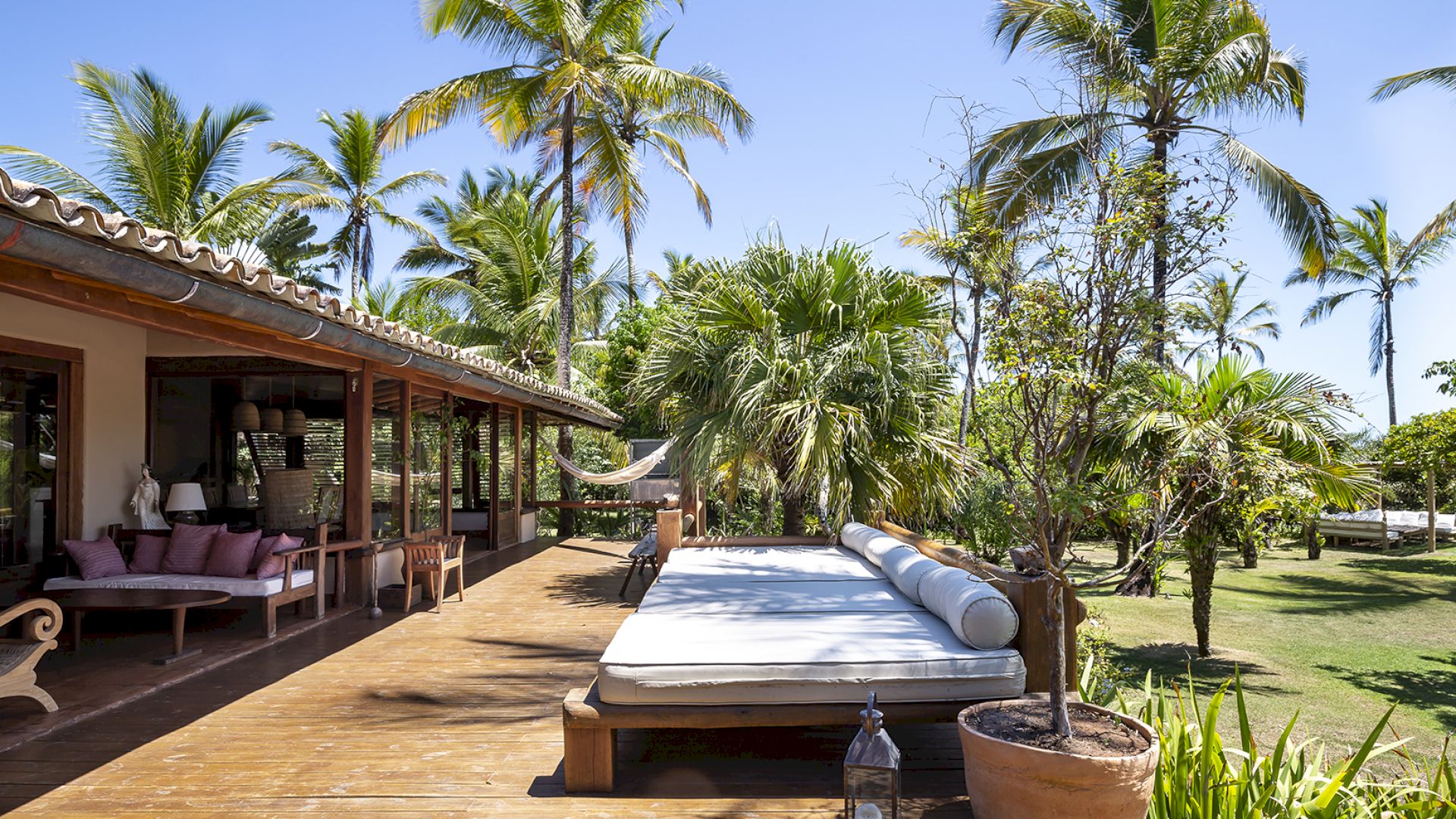 • Amplo deck de madeira com sofá-solarium