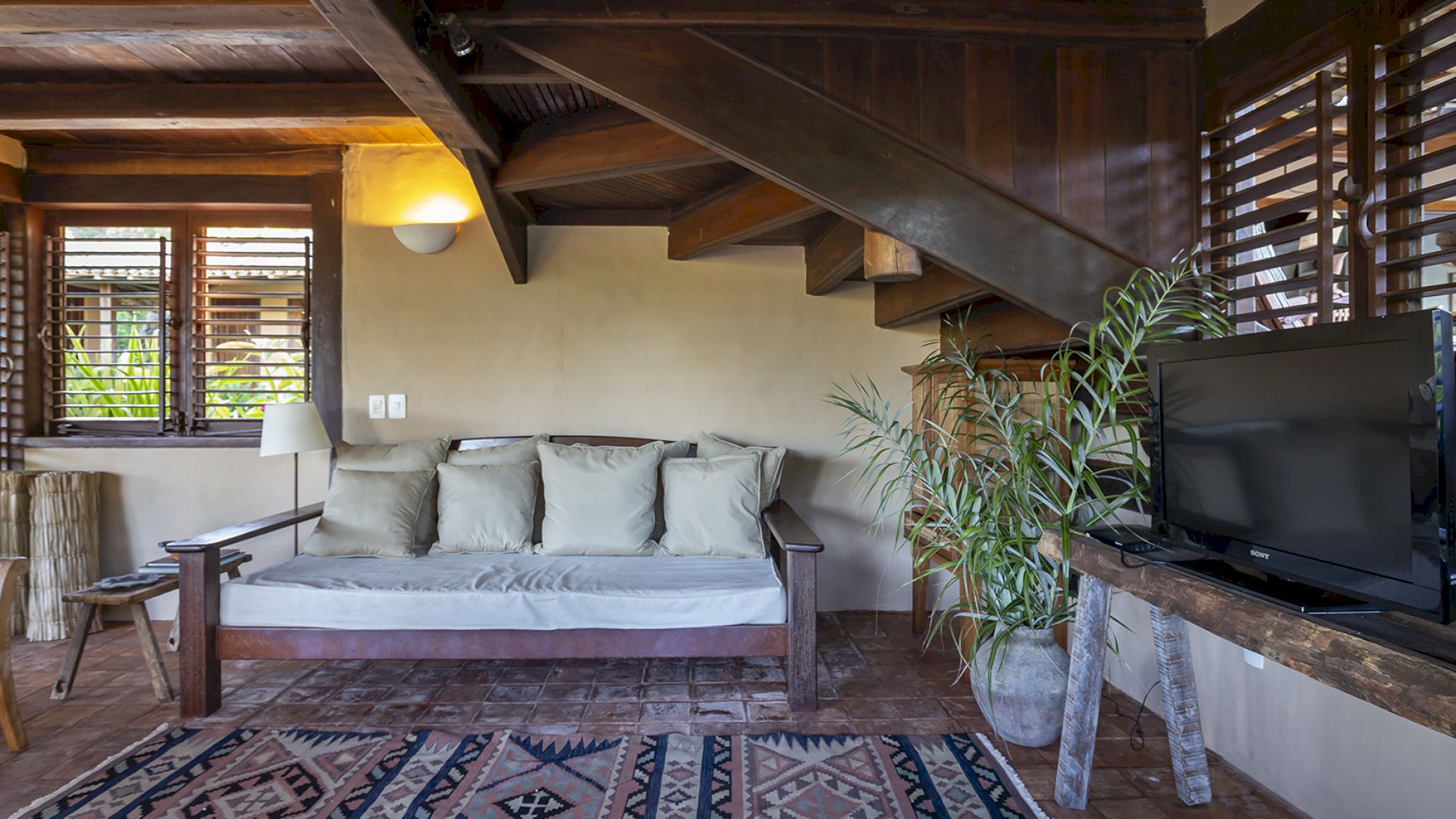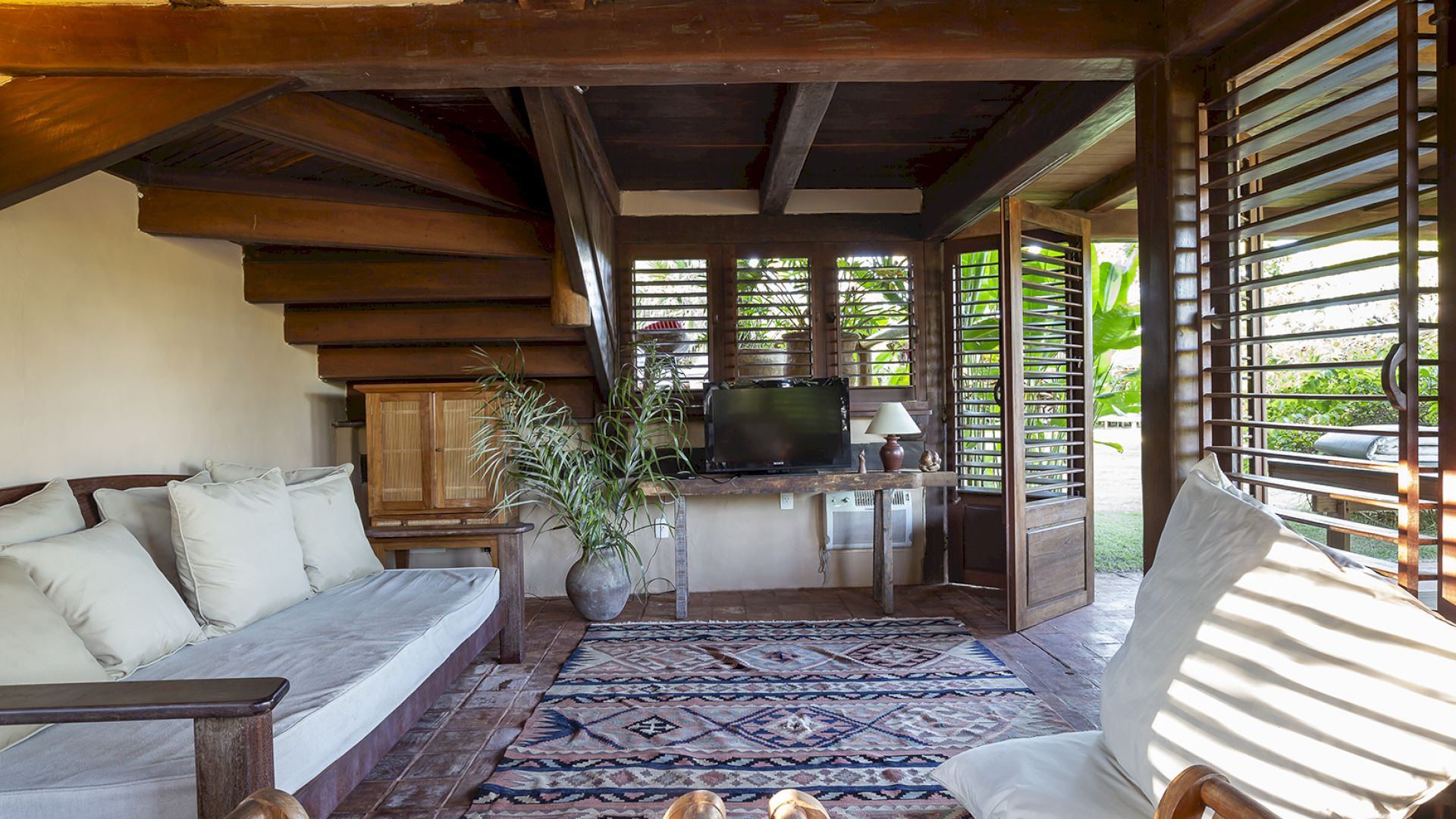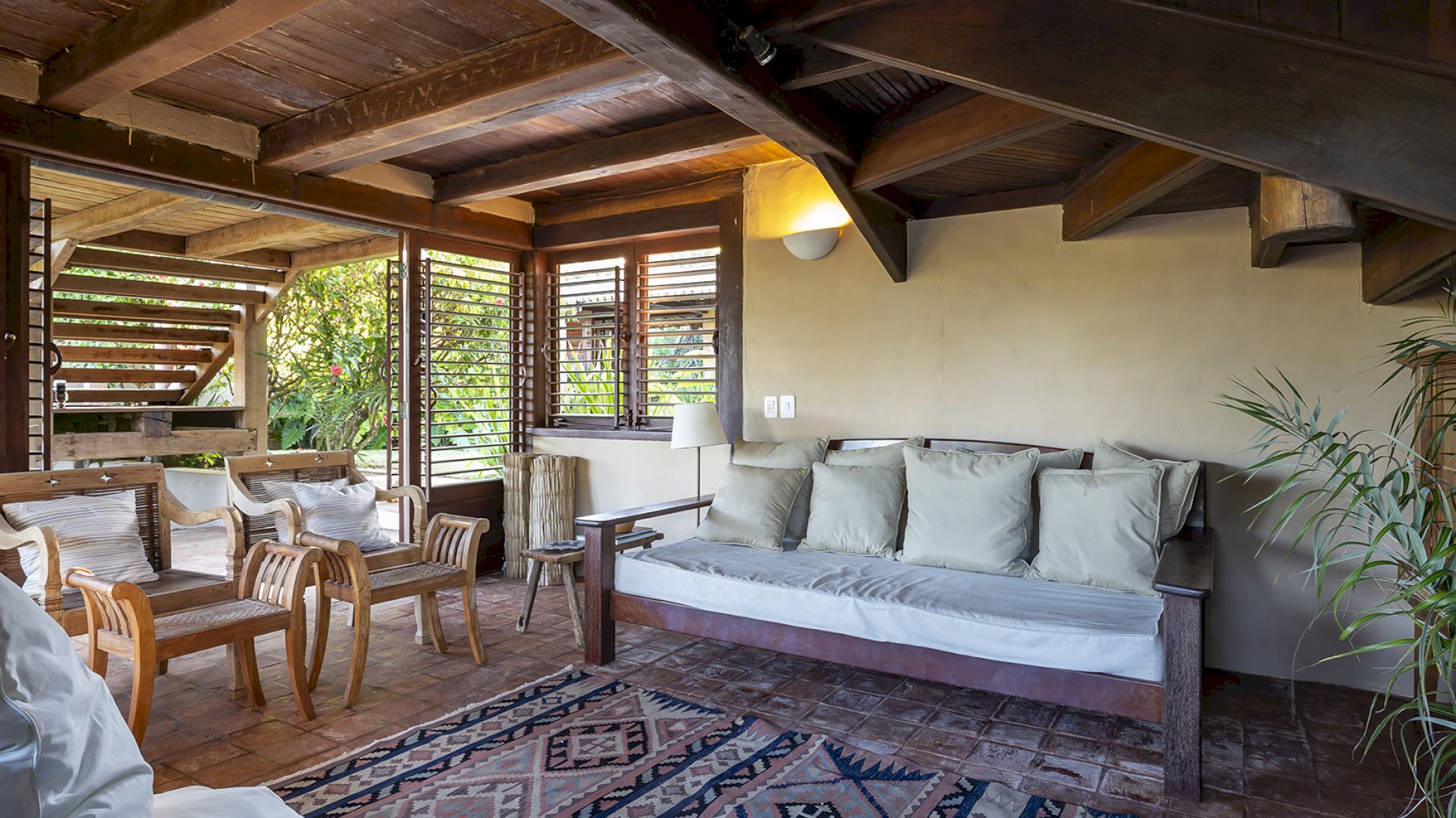 • Amplo deck de madeira com sofá-solarium