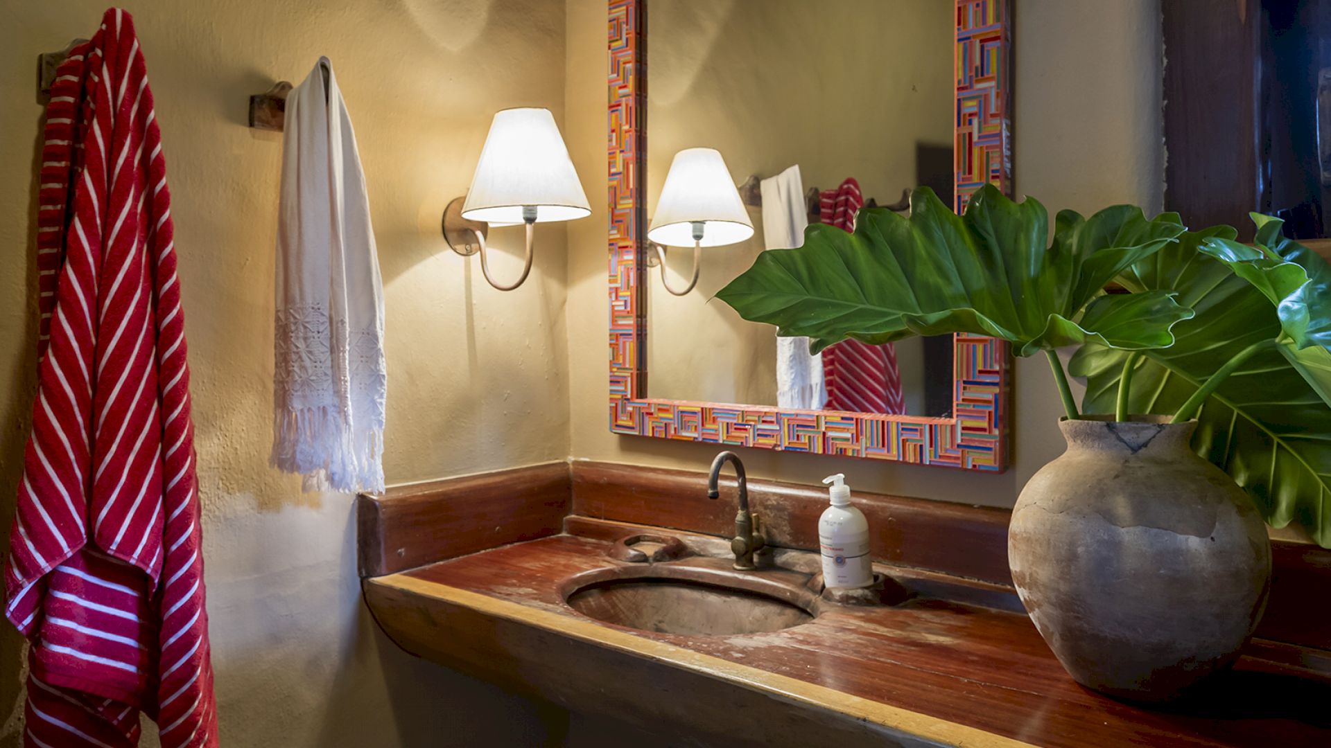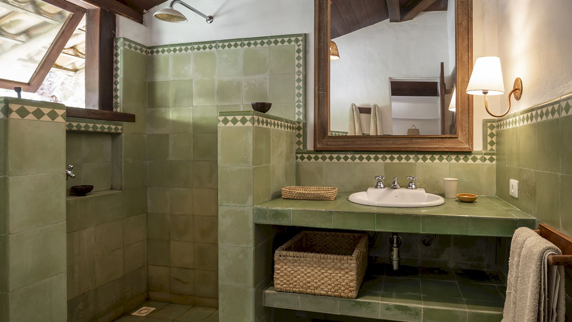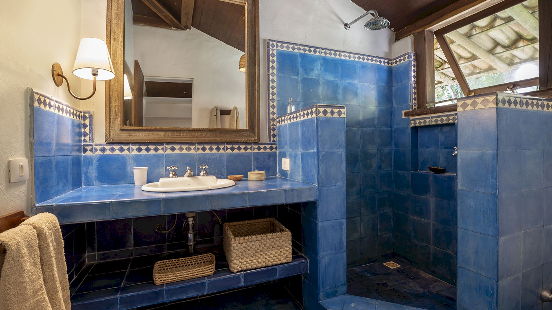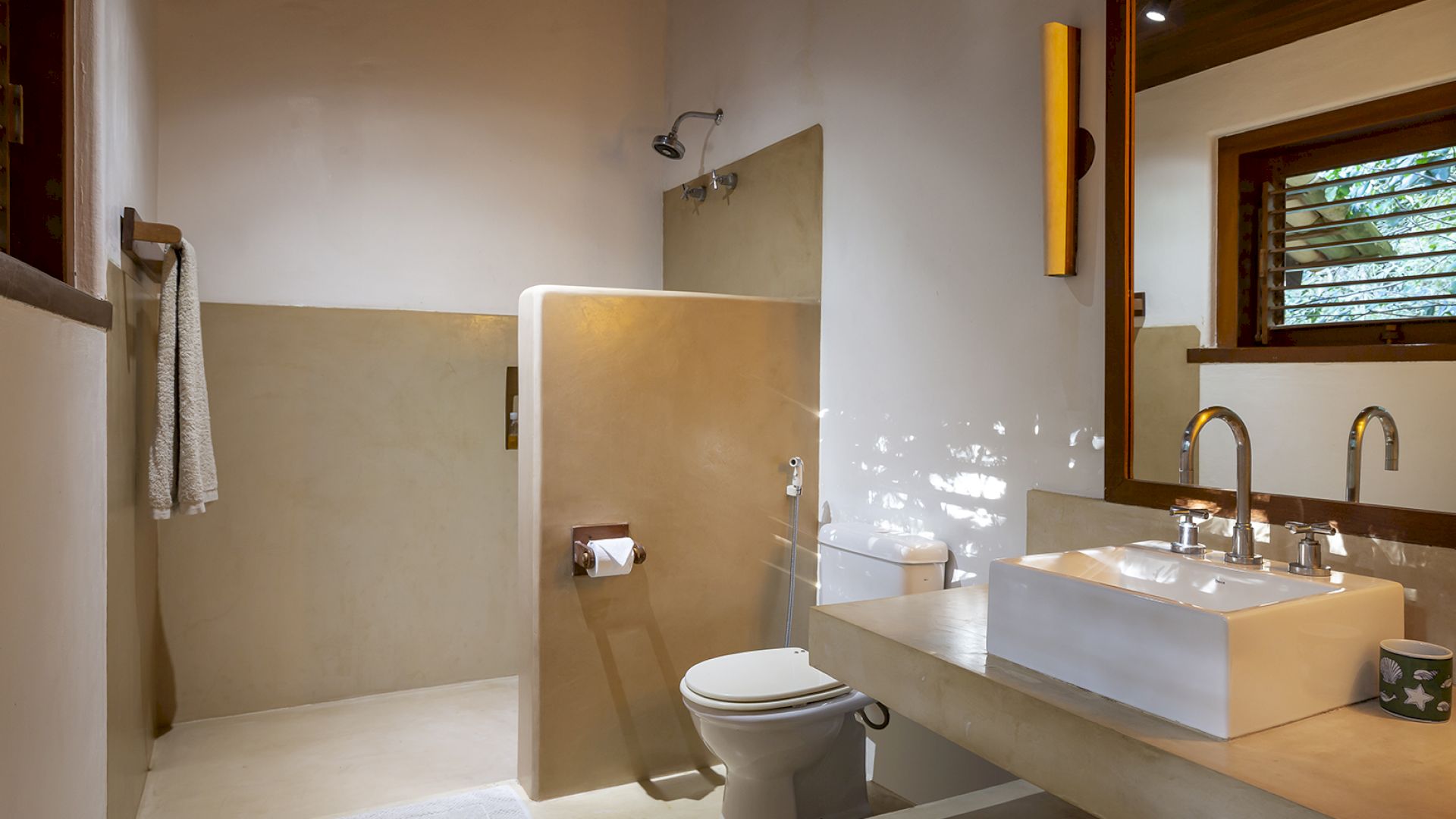 A villa acomoda até 14 hóspedes em 5 suítes e 2 quartos distribuídos entre a casa principal e a casa de hóspedes: