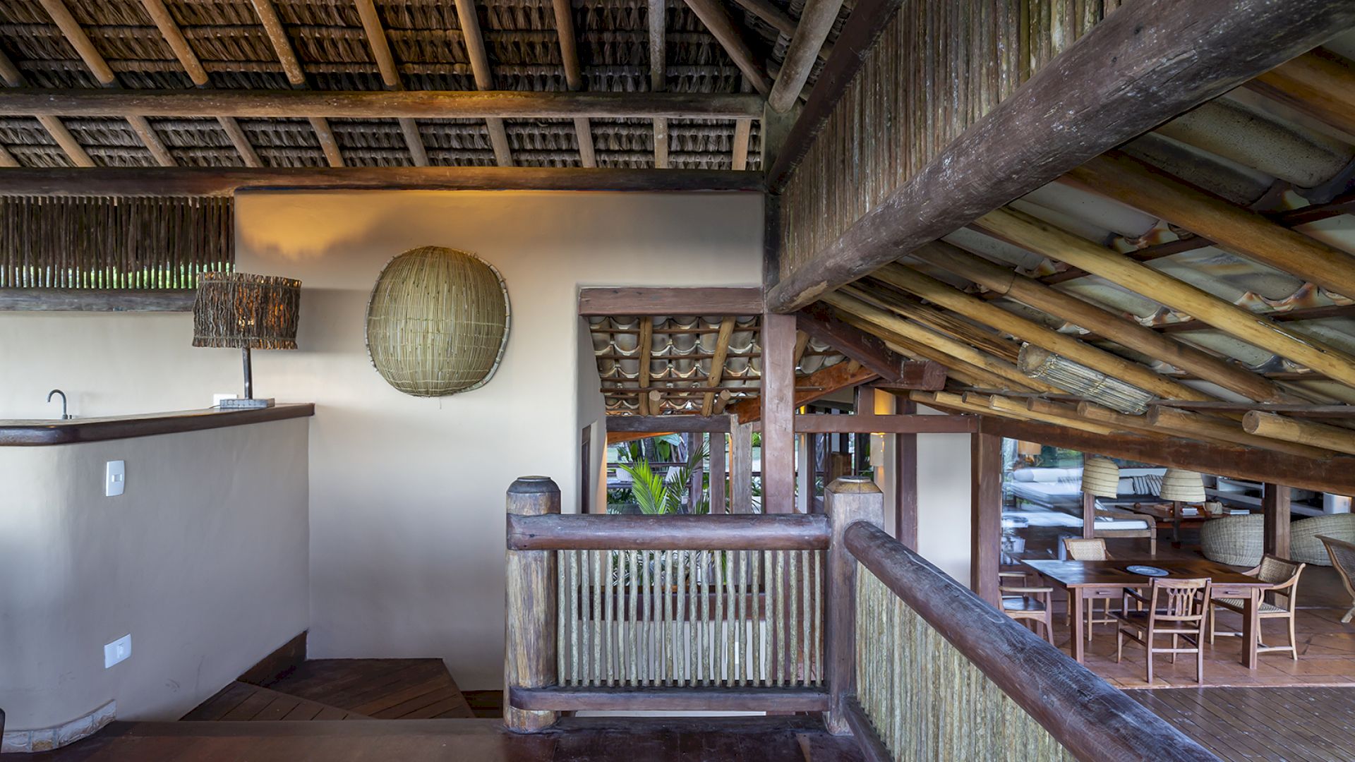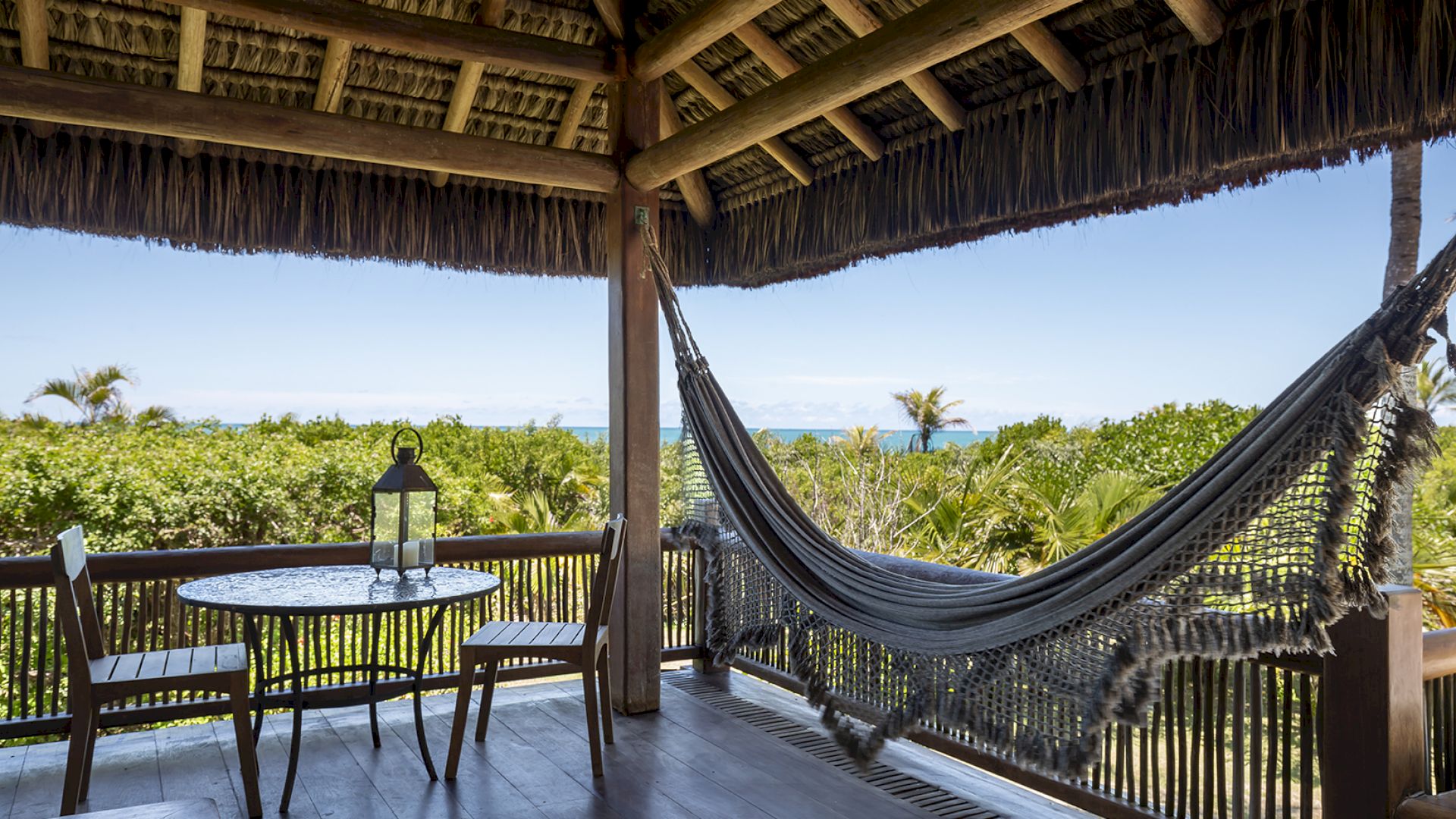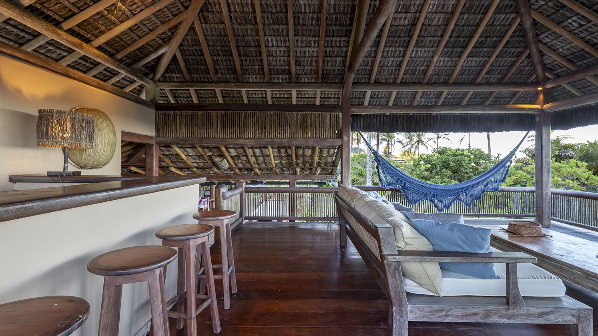 • Mirante com cobertura de piaçava, sofás, bar e vista panorâmica do mar — da Praia dos Coqueiros à Ponta de Itapororoca