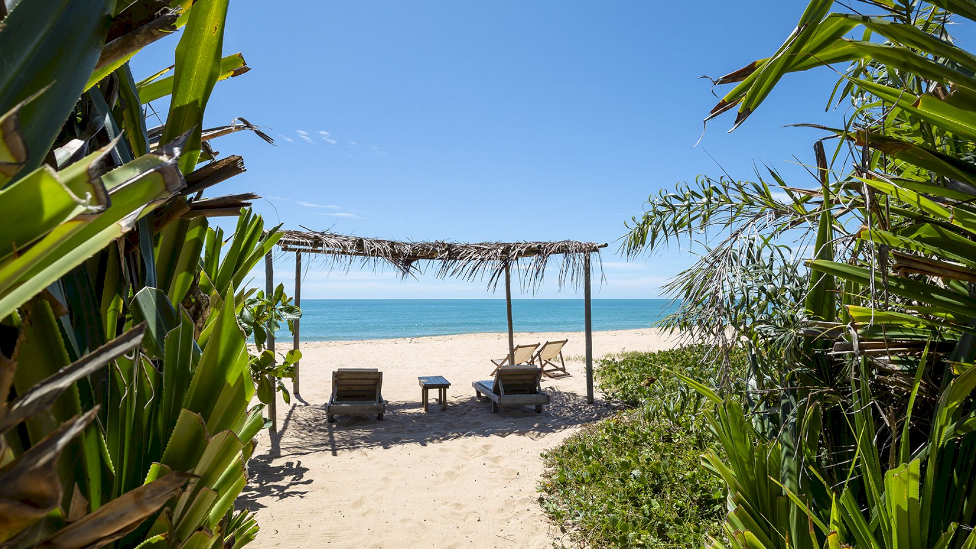 • Cabana de praia com espreguiçadeiras