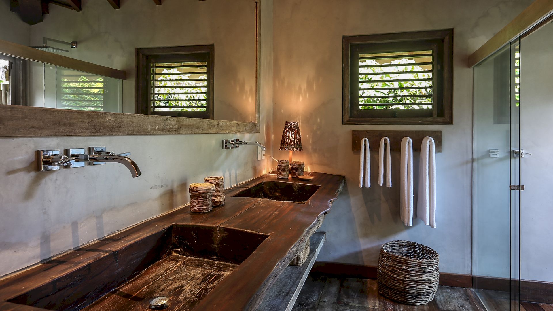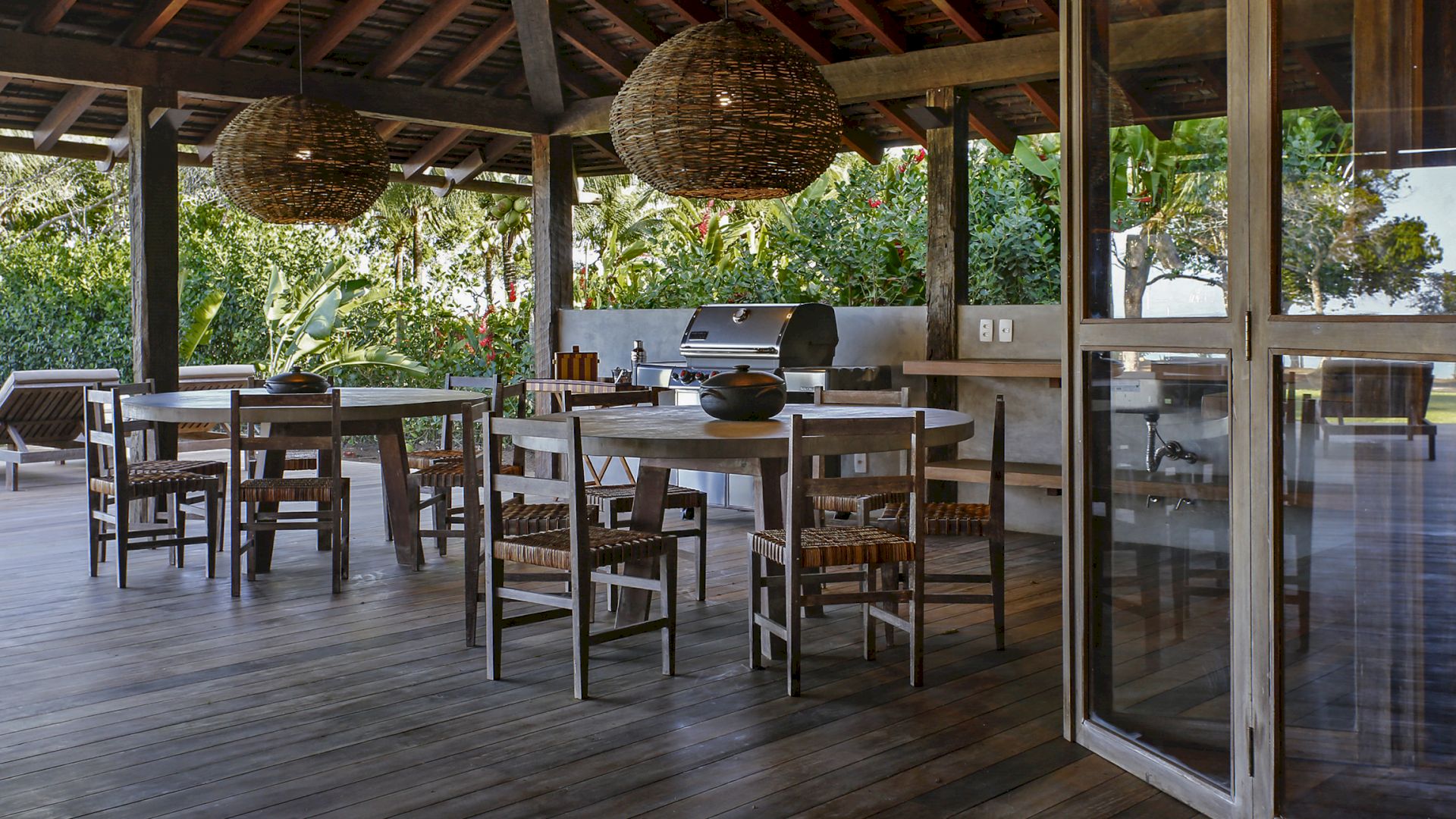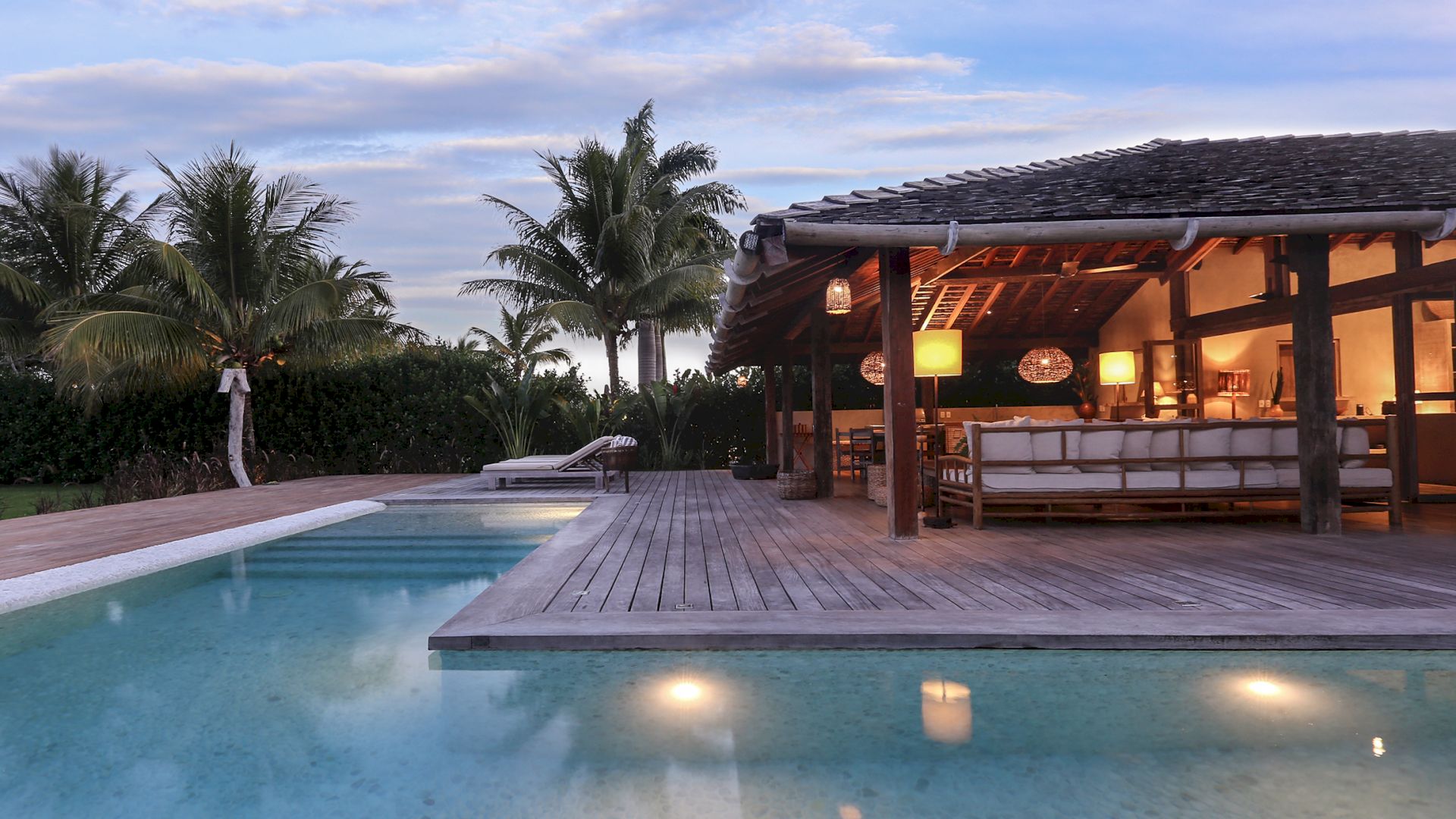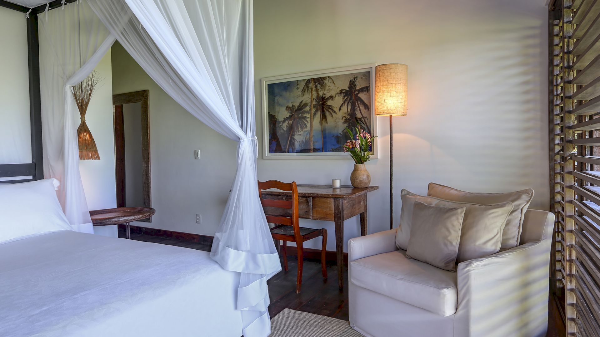A villa acomoda até 10 hóspedes em 5 suítes espaçosas, todas equipadas com cofre, ar-condicionado e mosquiteiro: