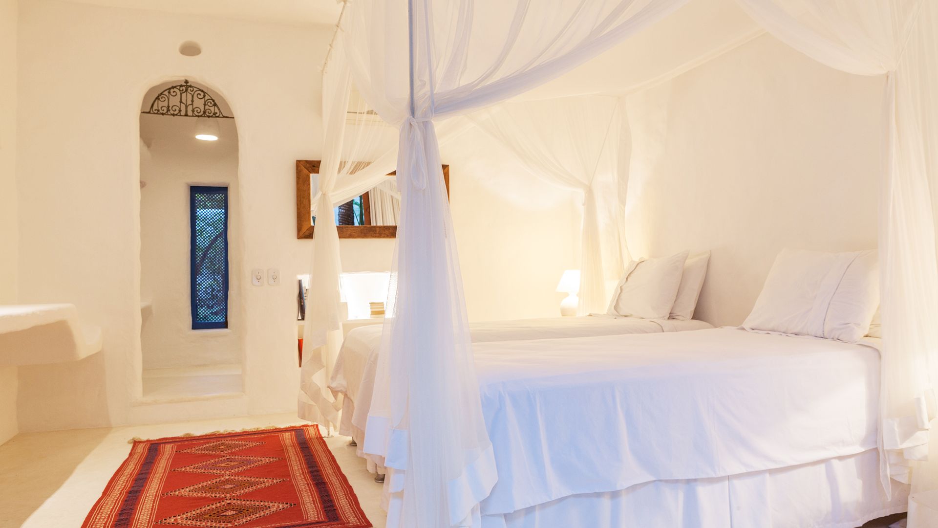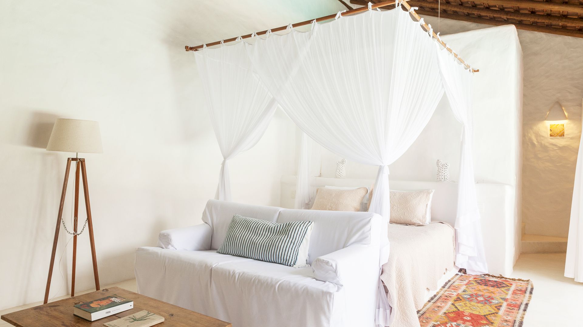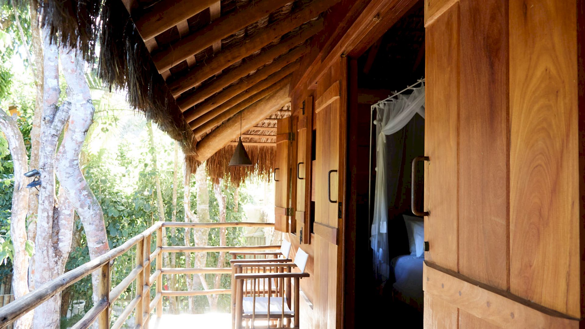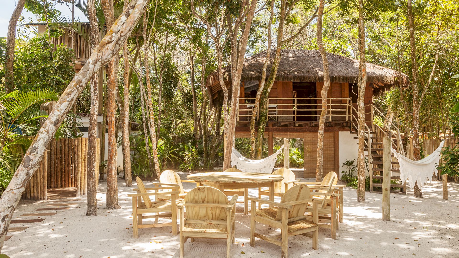 As quatro suítes, sendo uma a casa da árvore, são todas equipadas com ar condicionado, mosquiteiro.