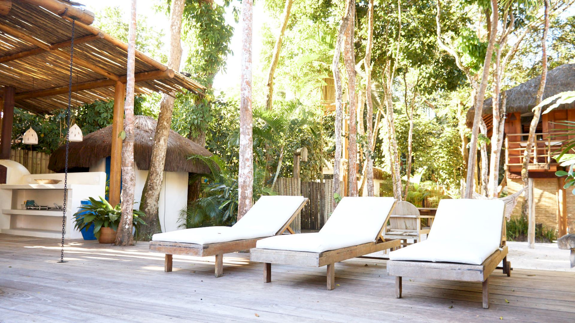 O jardim da Casa é um verdadeiro oásis e oferece diversas áreas para relaxar: deck de madeira com espreguiçadeiras, redes e terraços com vista panorâmica da casa e sua vegetação exuberante.