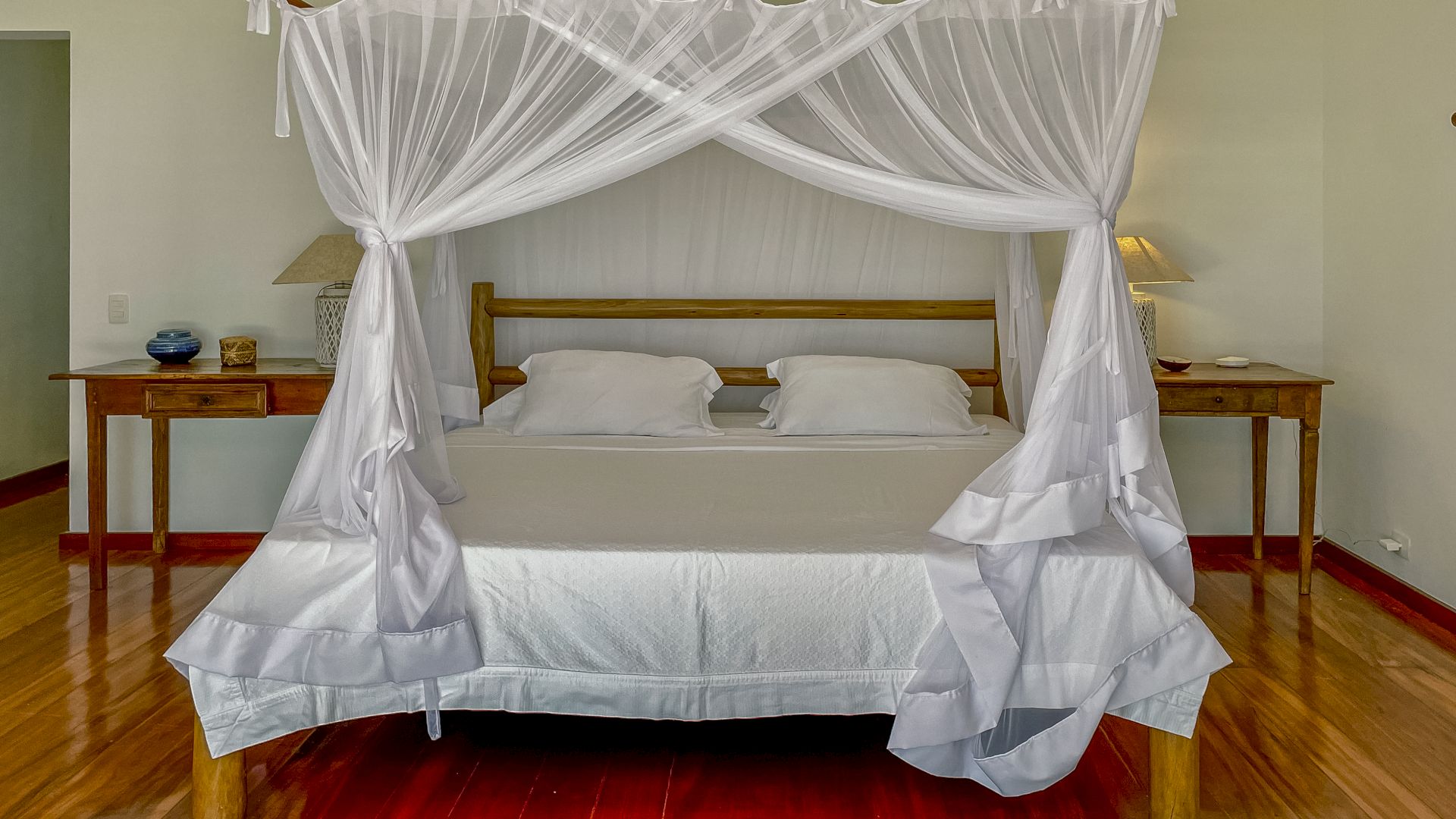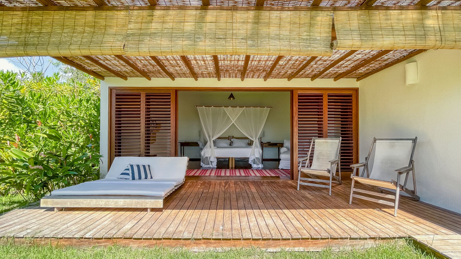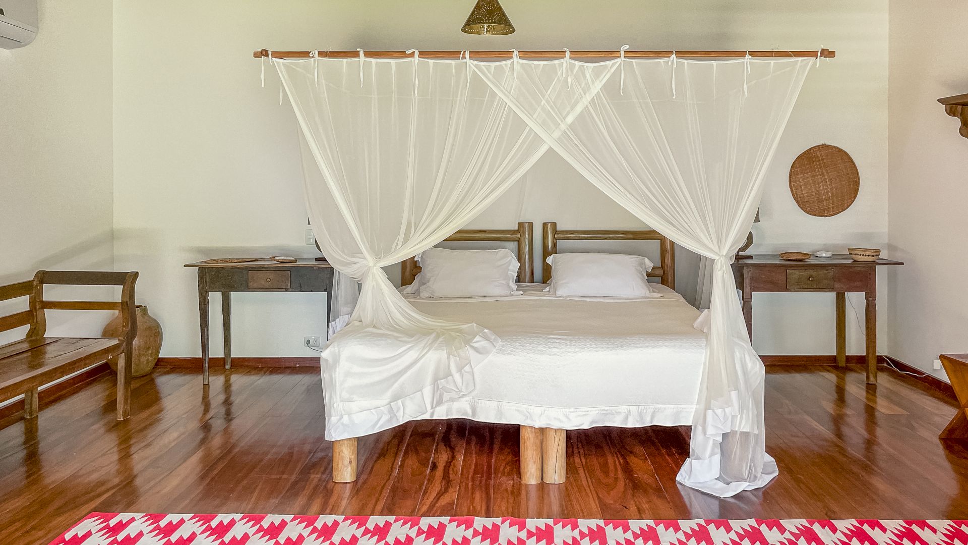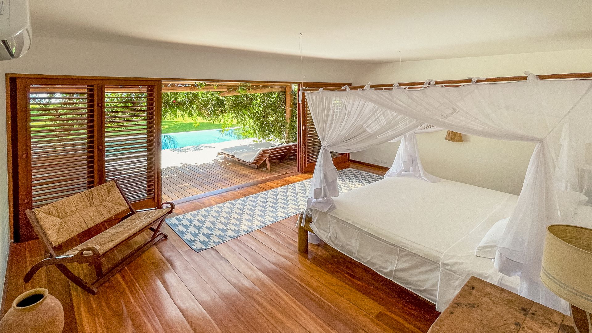 A villa acomoda até 10 hóspedes em 5 suítes espaçosas, todas equipadas com ar-condicionado e mosquiteiro: