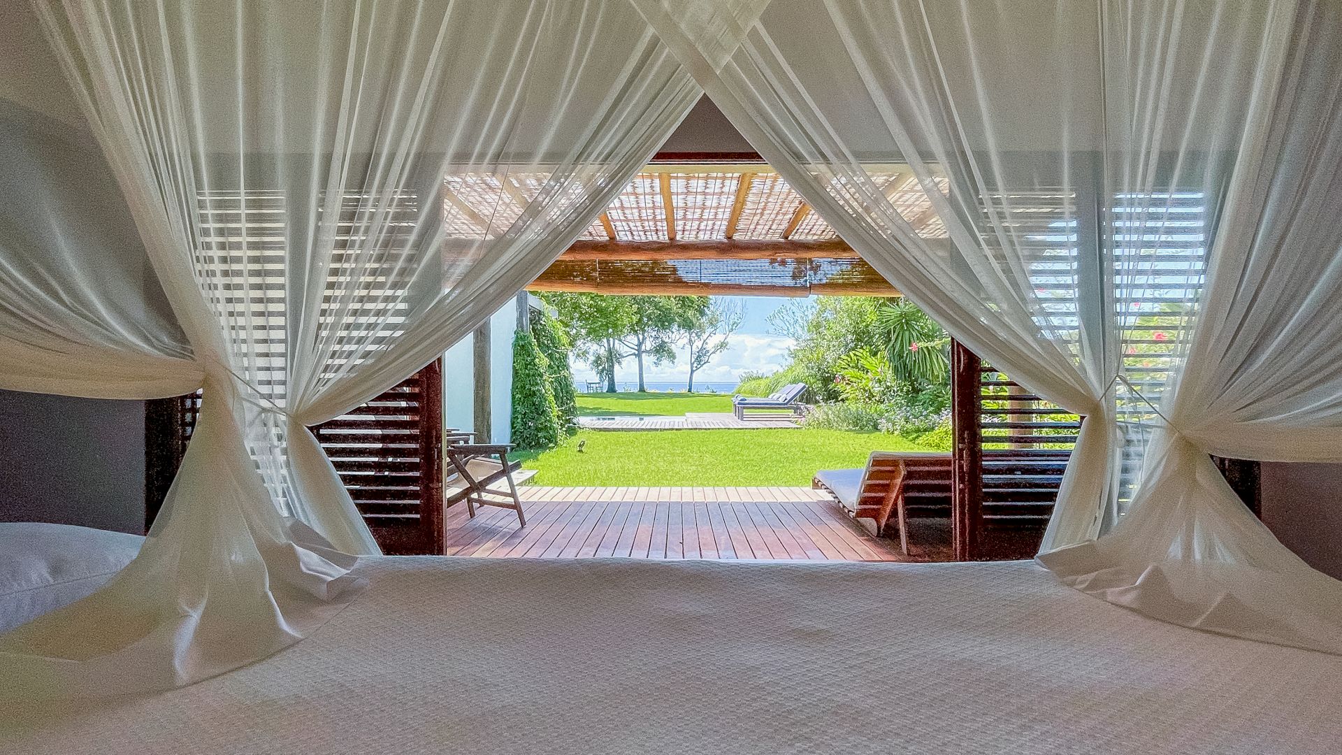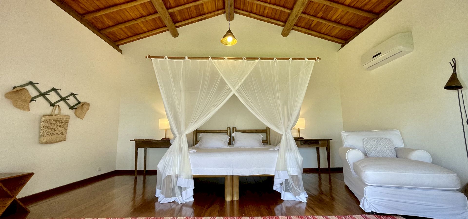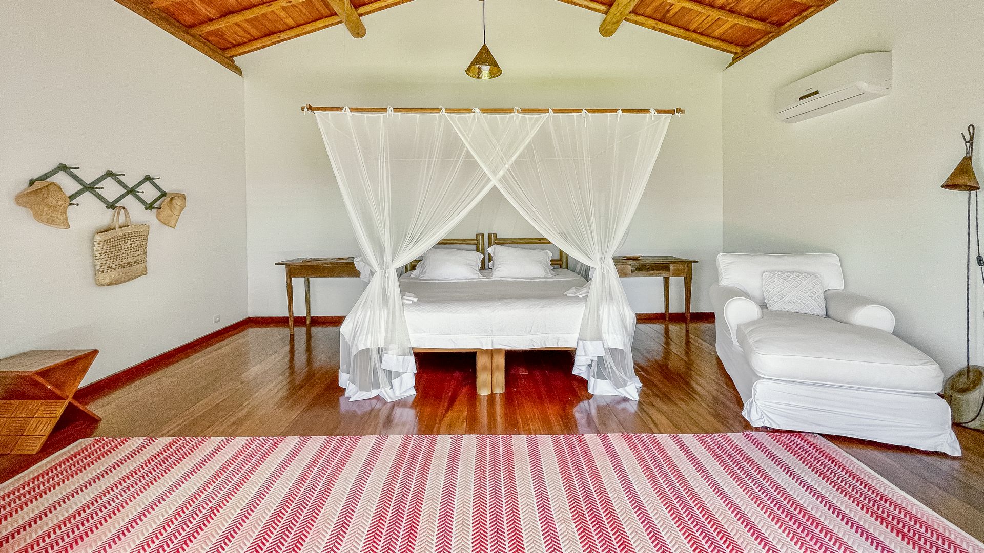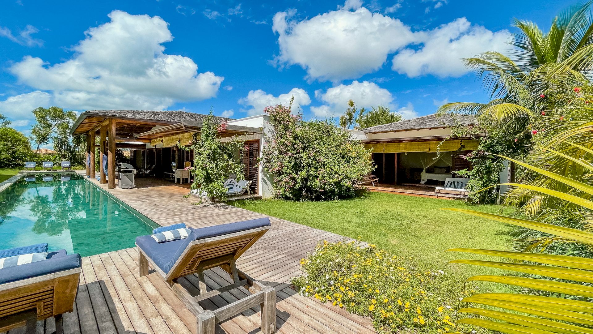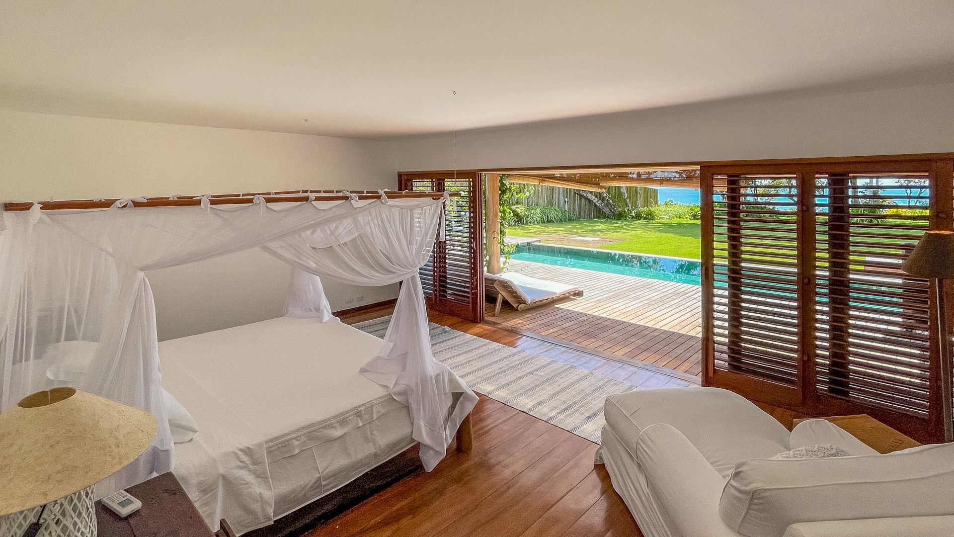 A villa acomoda até 10 hóspedes em 5 suítes espaçosas, todas equipadas com ar-condicionado e mosquiteiro: