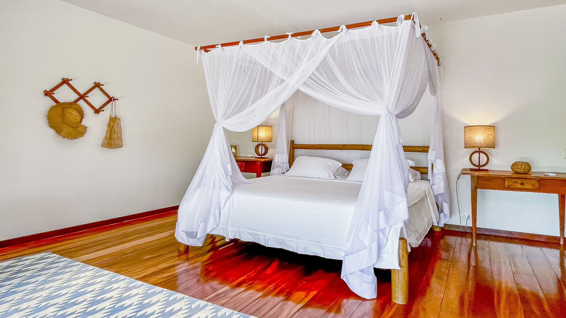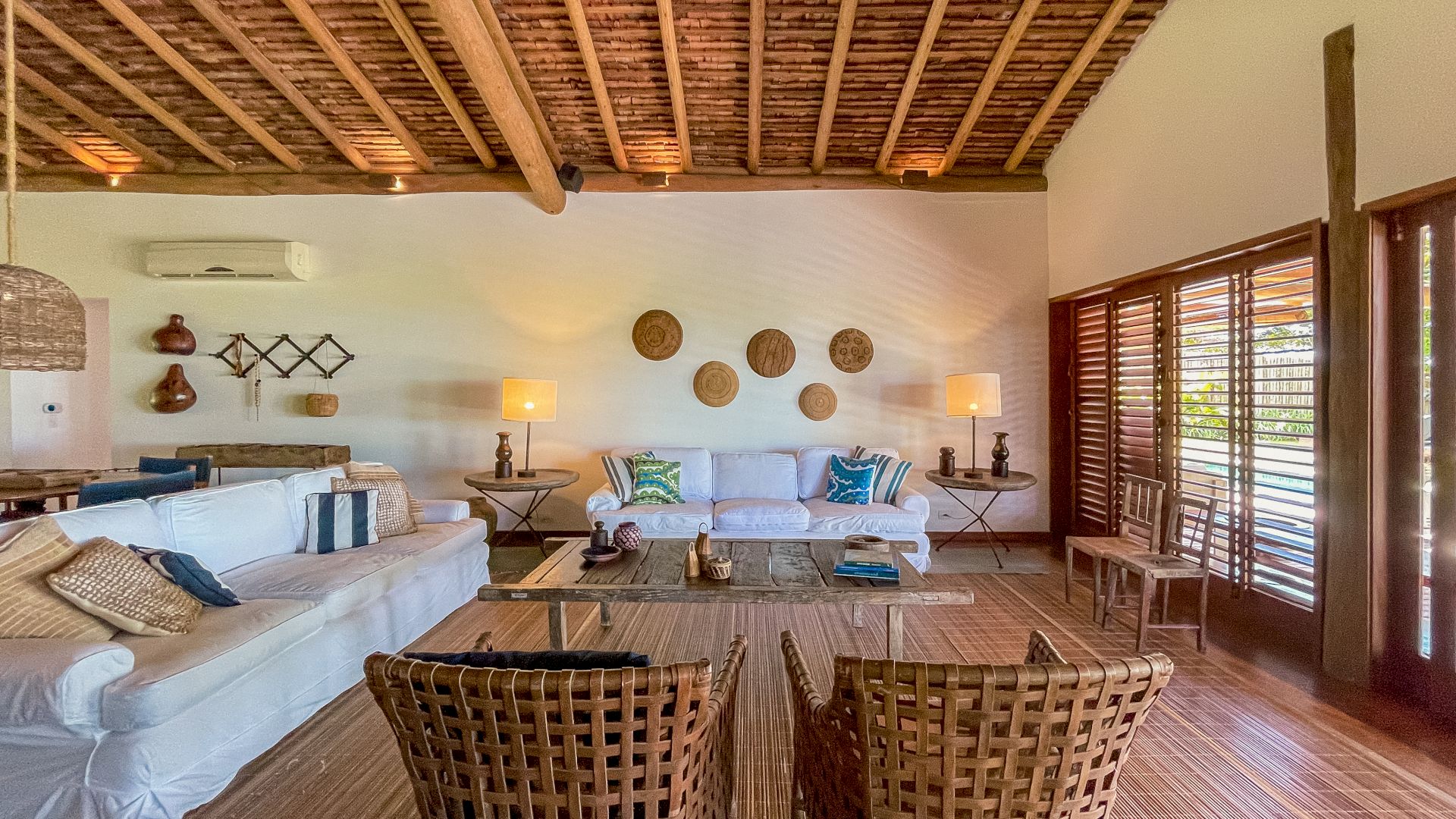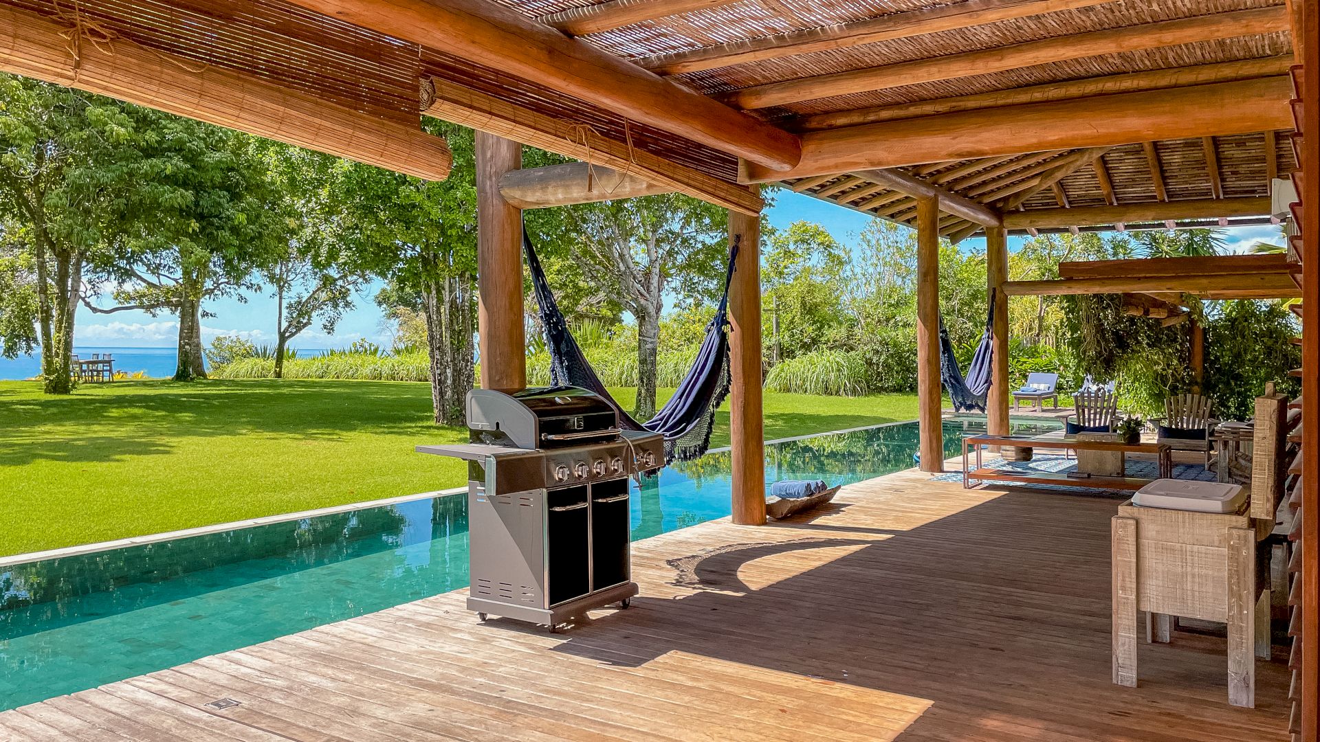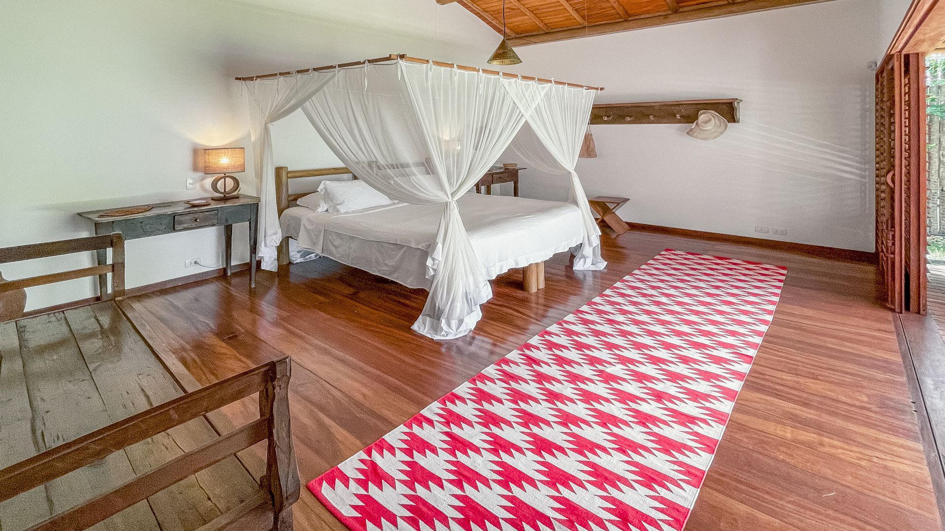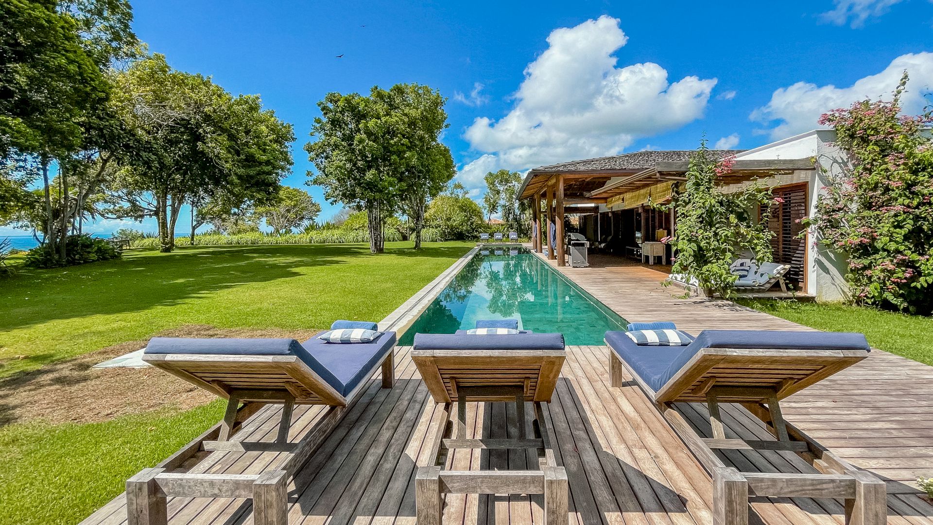 A villa acomoda até 10 hóspedes em 5 suítes espaçosas, todas equipadas com ar-condicionado e mosquiteiro: