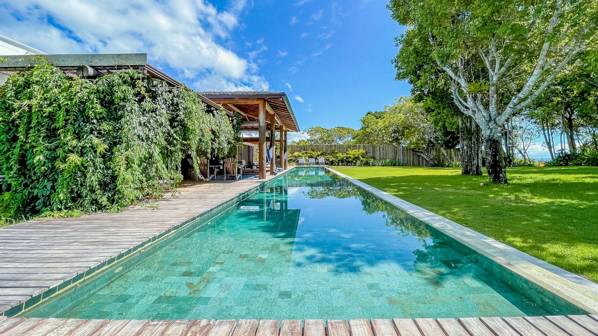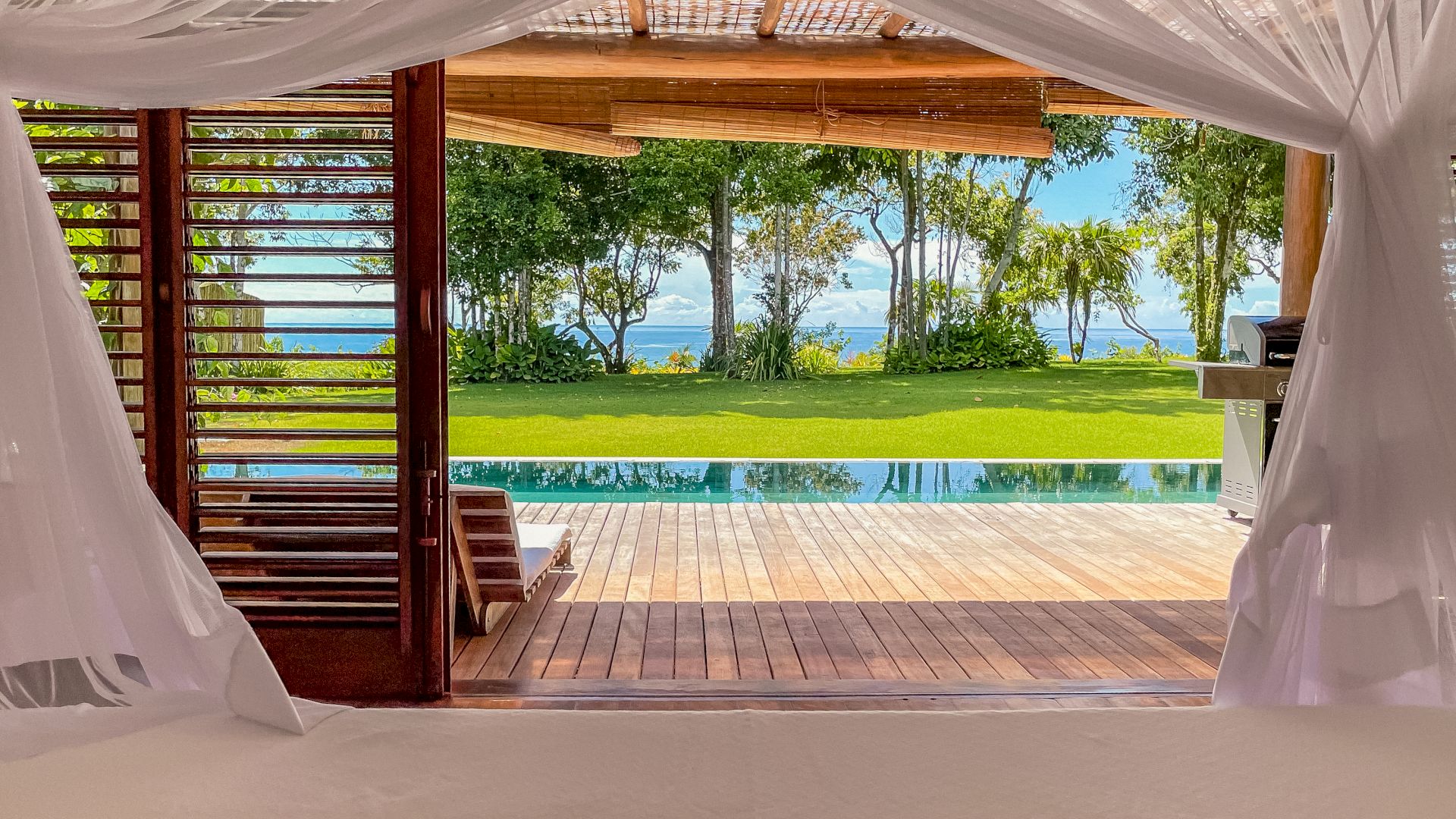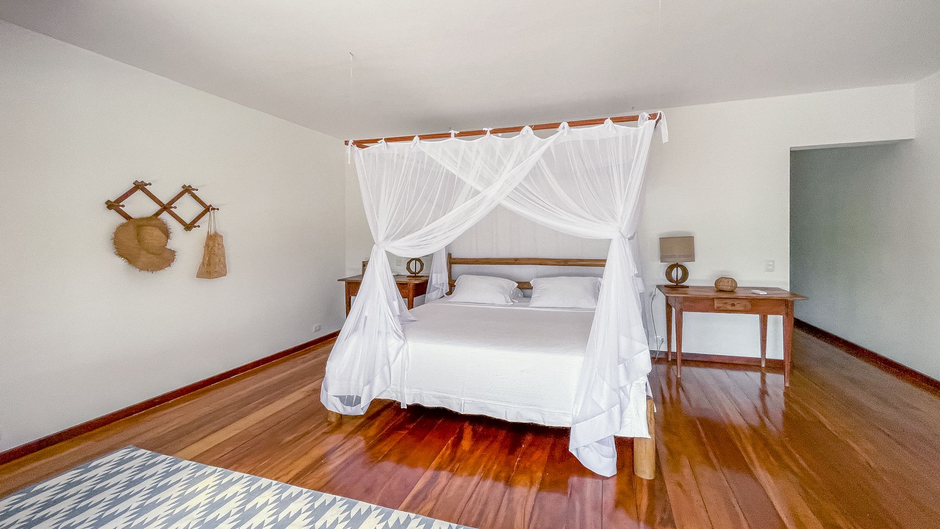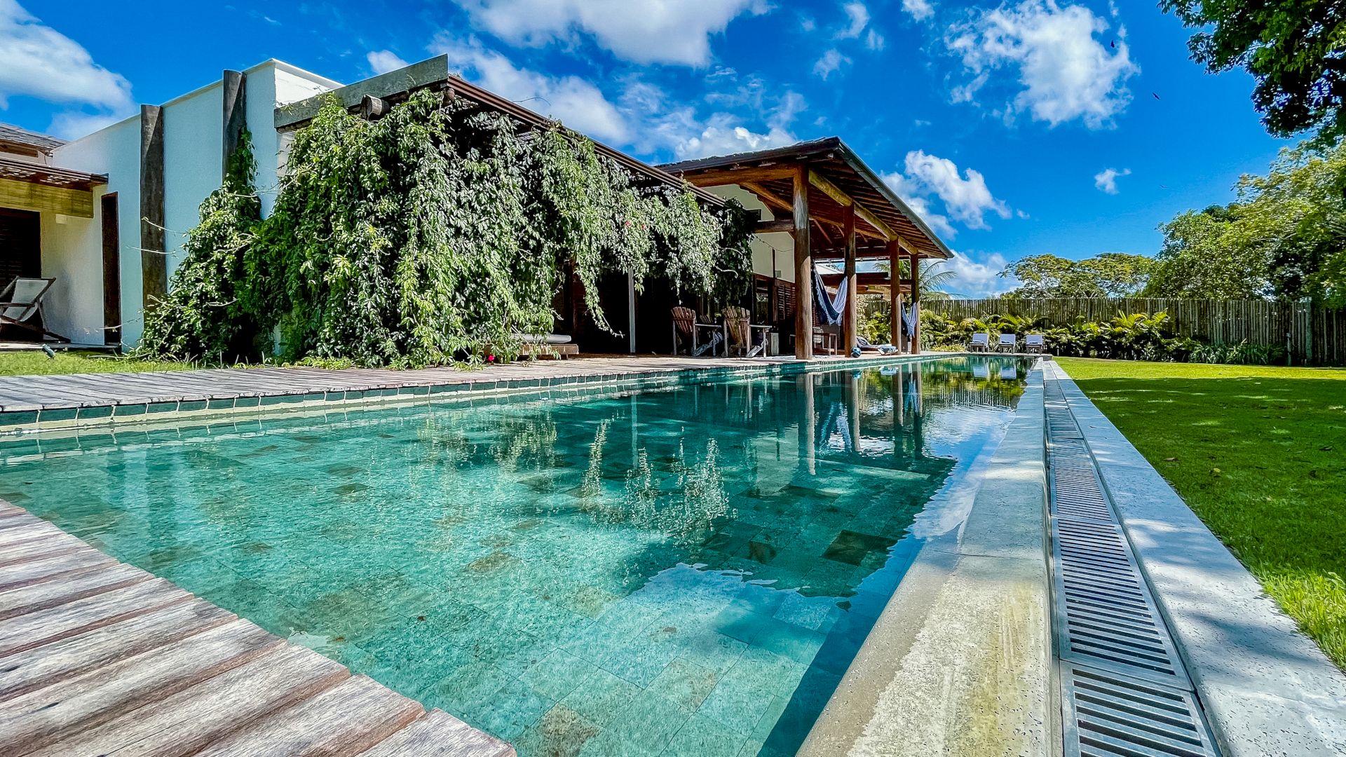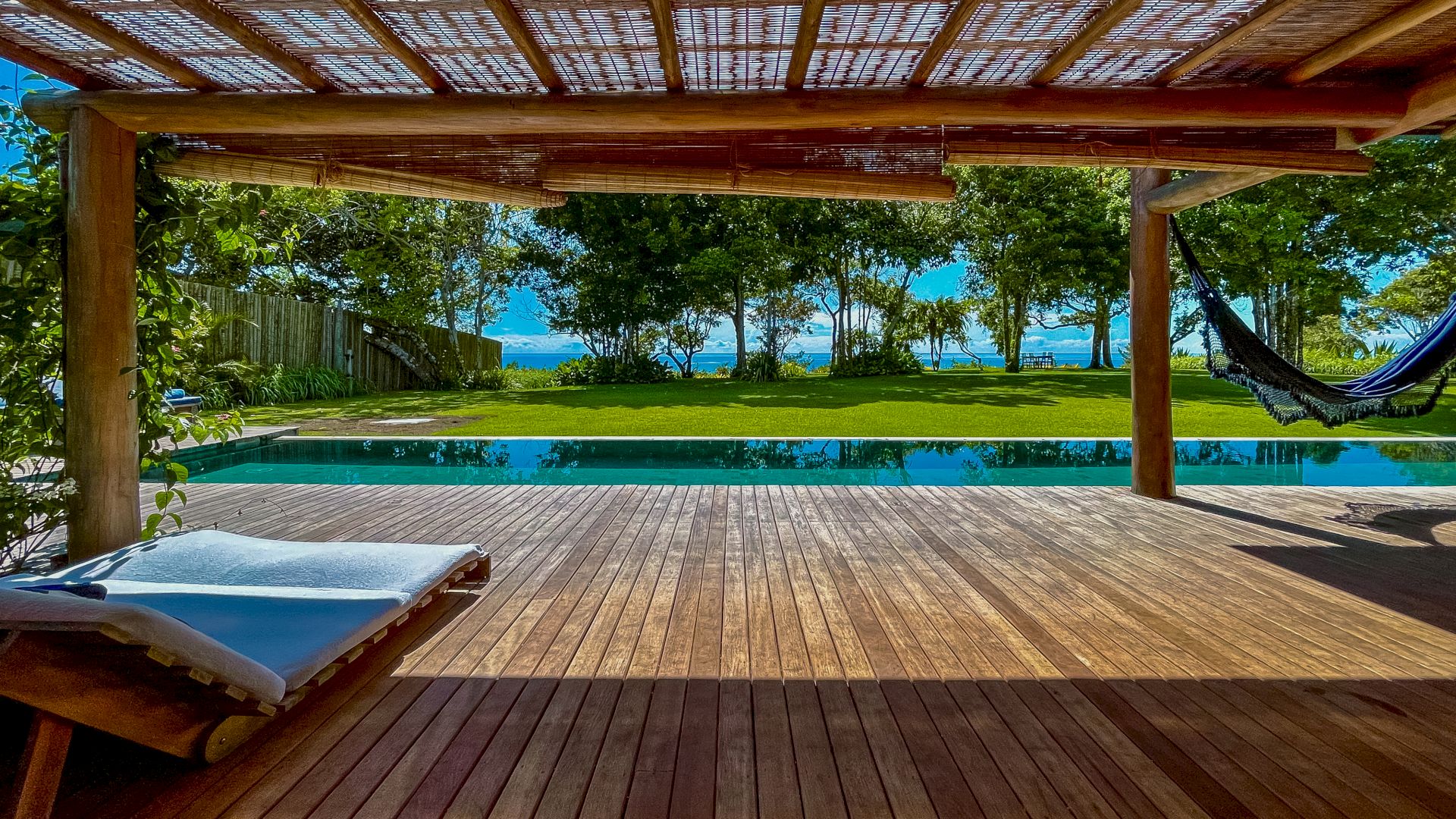 A villa acomoda até 10 hóspedes em 5 suítes espaçosas, todas equipadas com ar-condicionado e mosquiteiro: