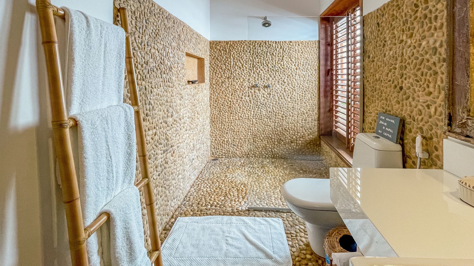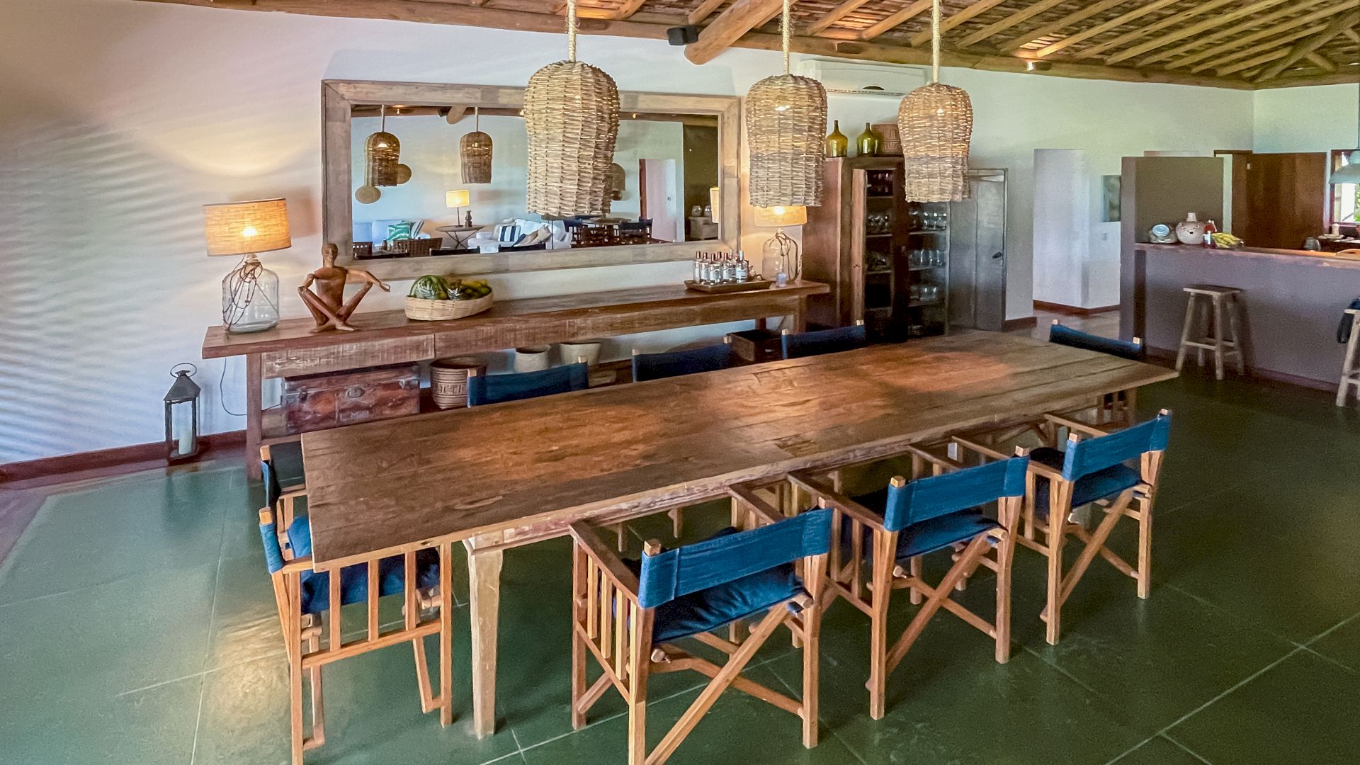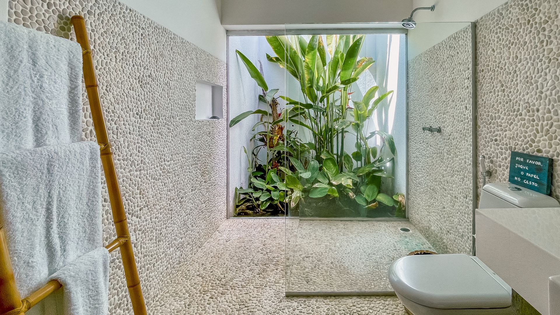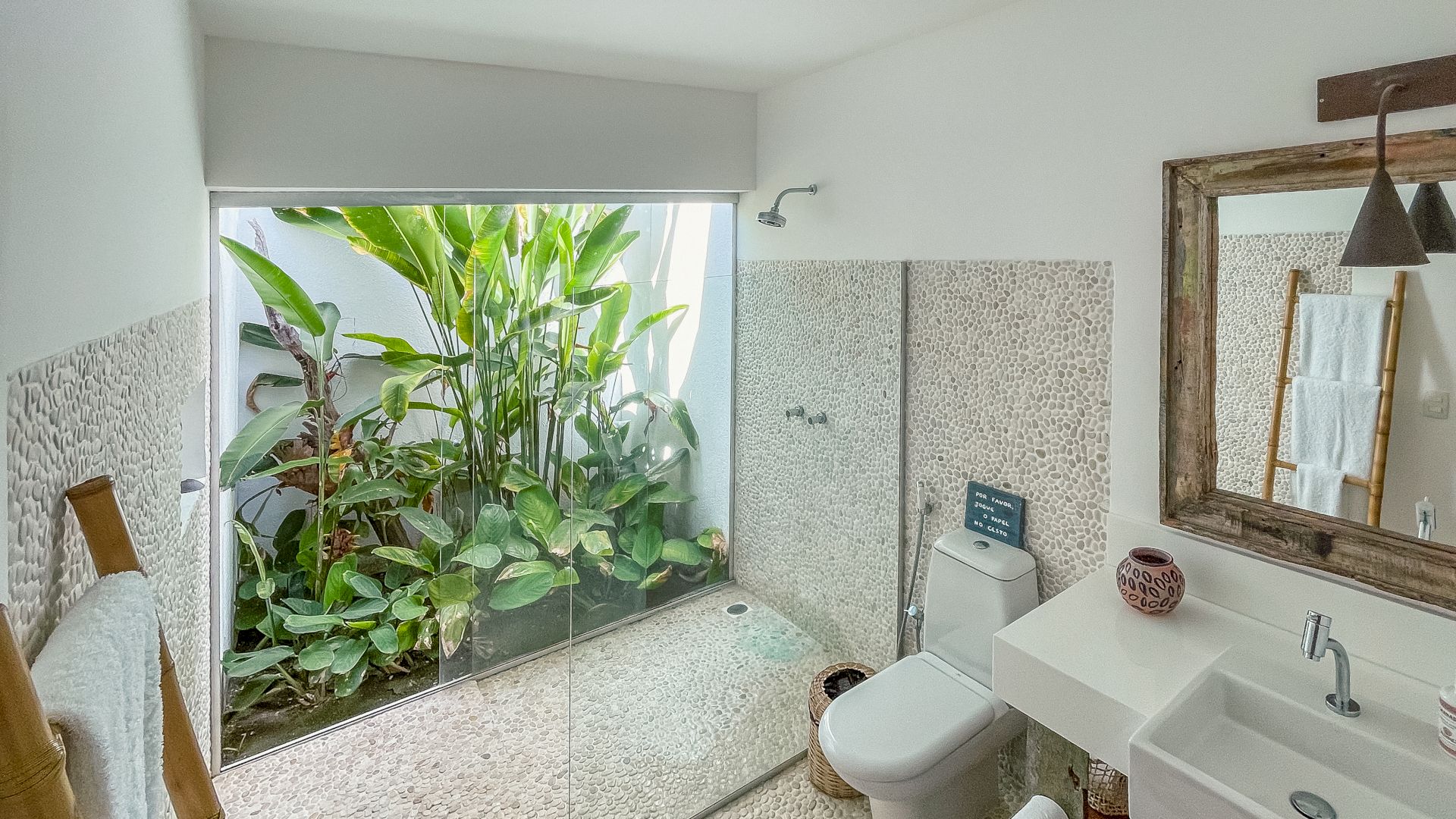 A villa acomoda até 10 hóspedes em 5 suítes espaçosas, todas equipadas com ar-condicionado e mosquiteiro: