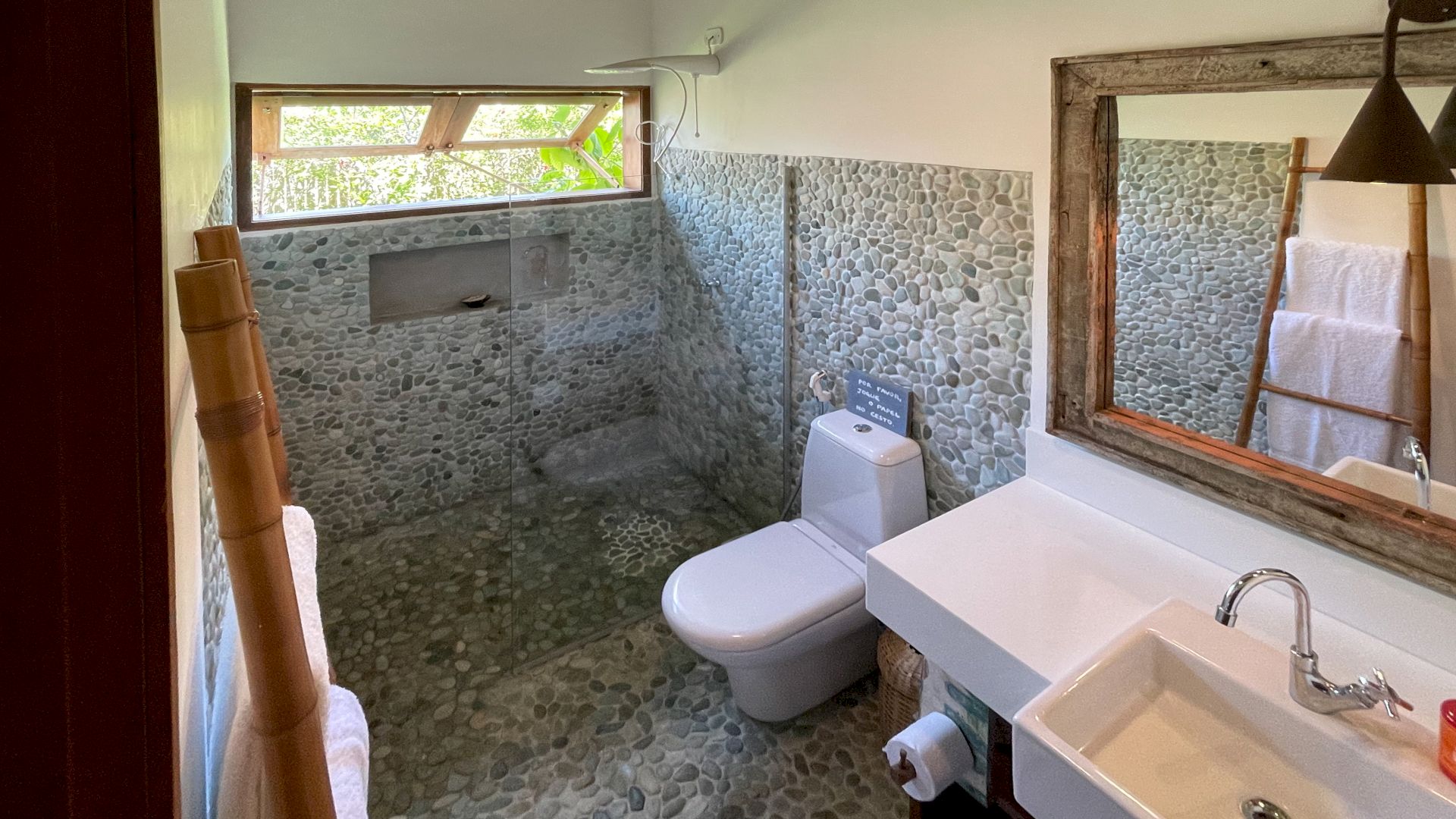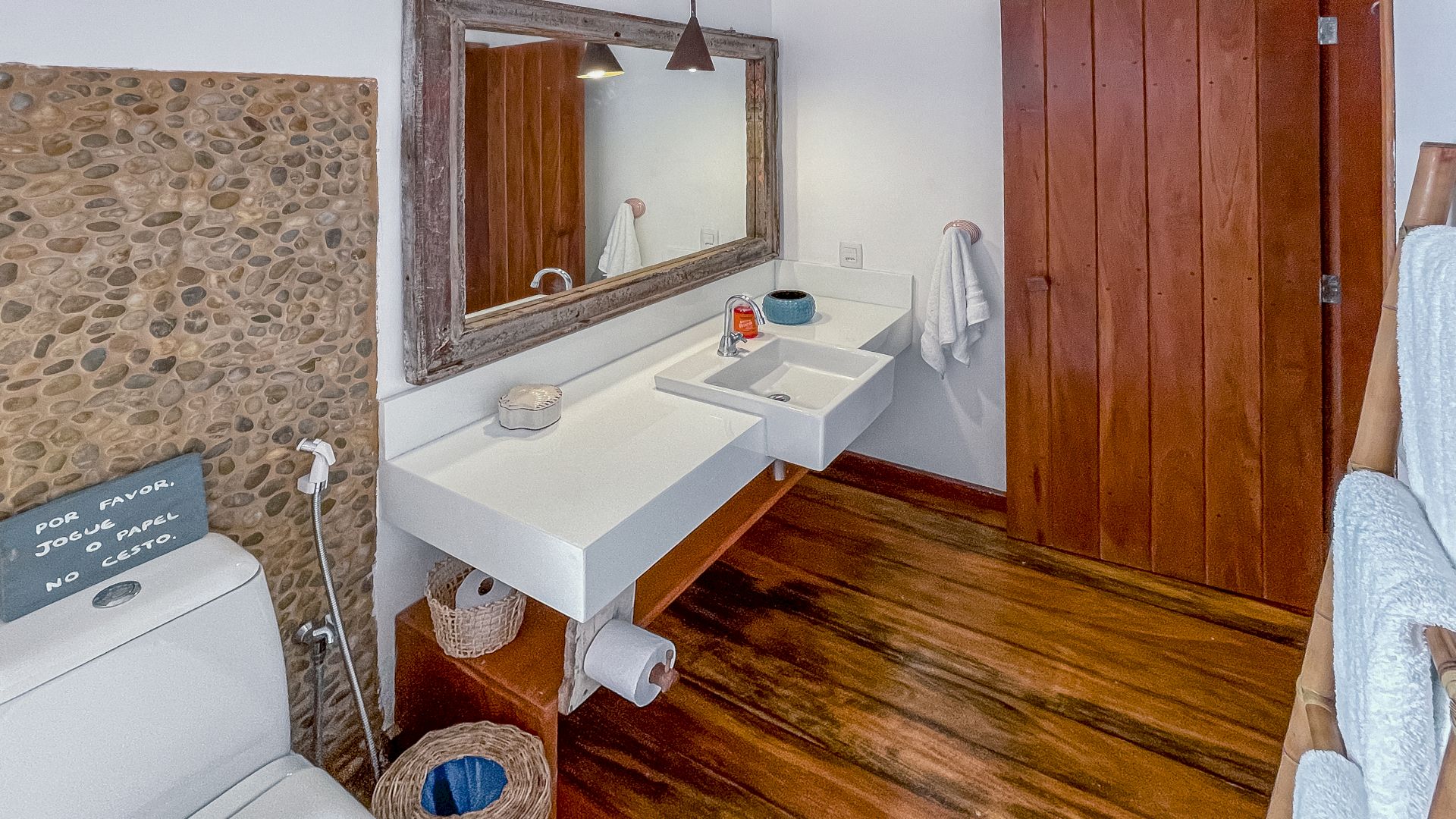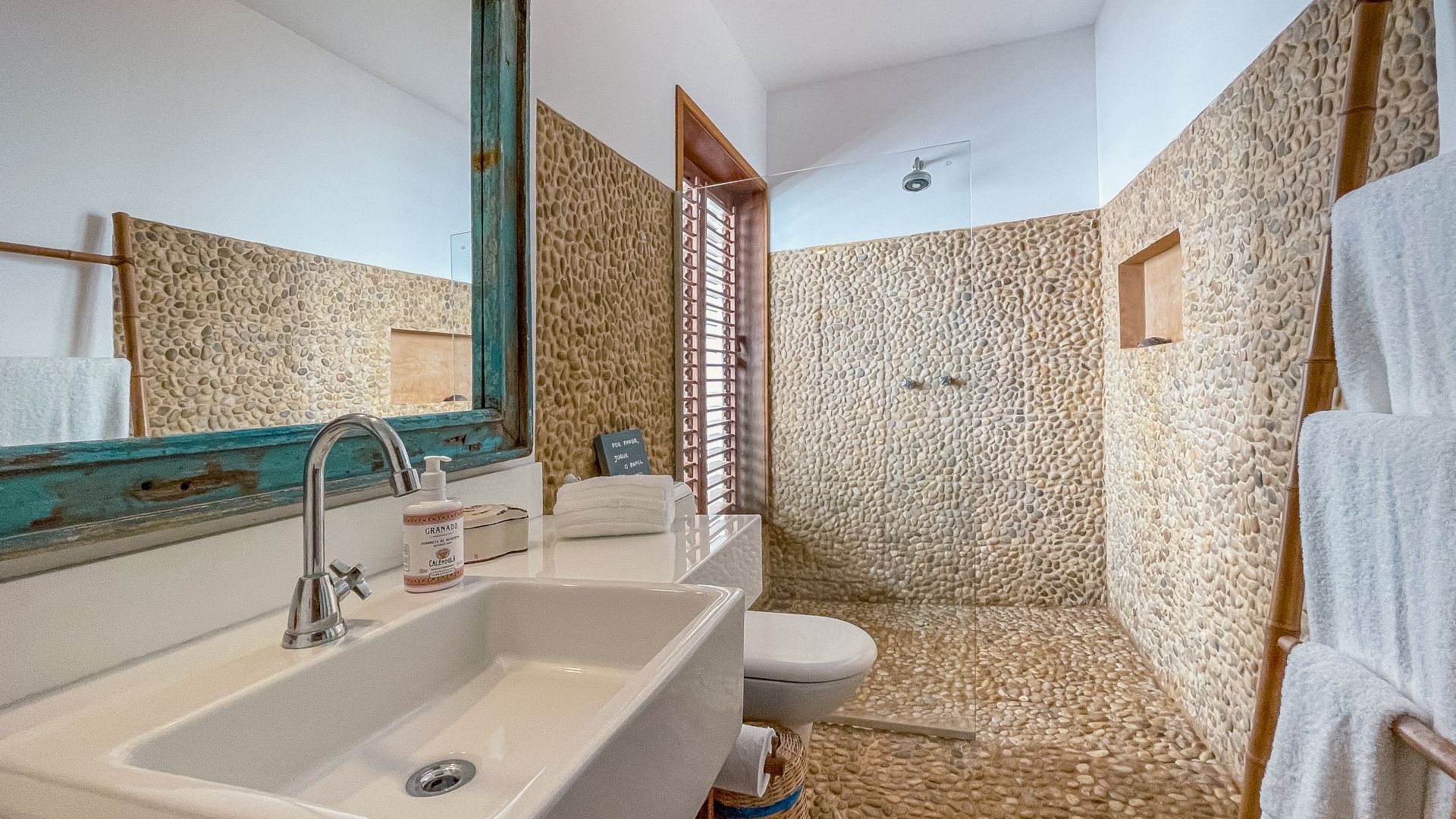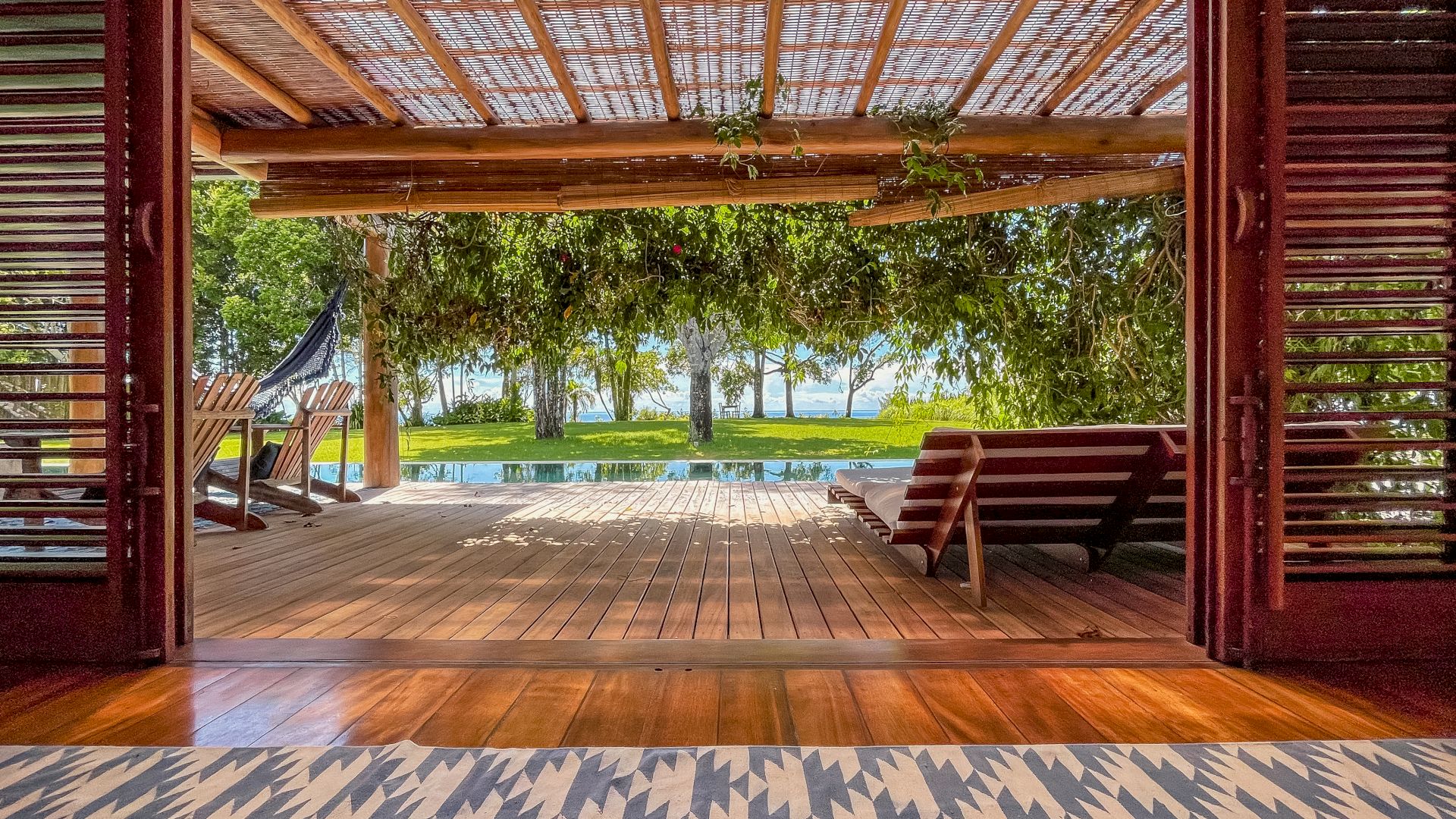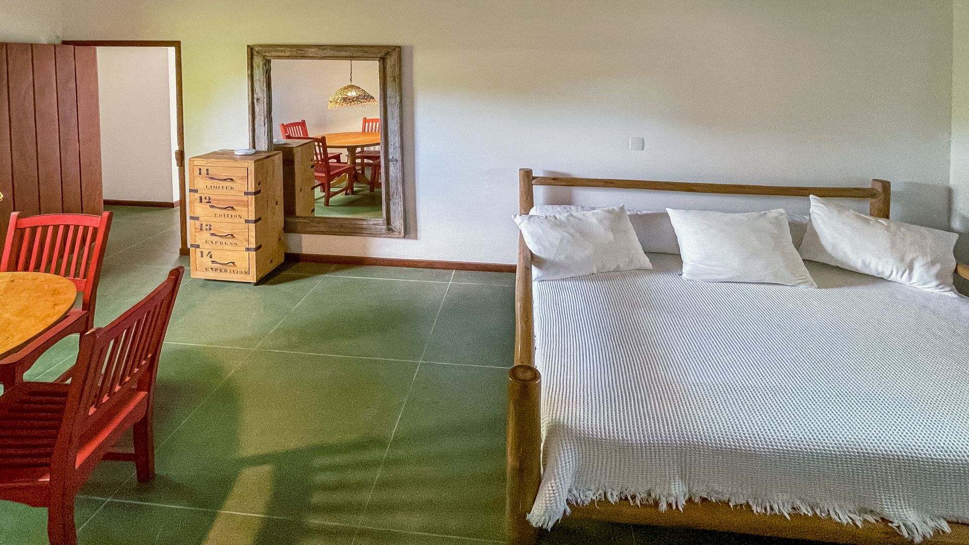A villa acomoda até 10 hóspedes em 5 suítes espaçosas, todas equipadas com ar-condicionado e mosquiteiro: