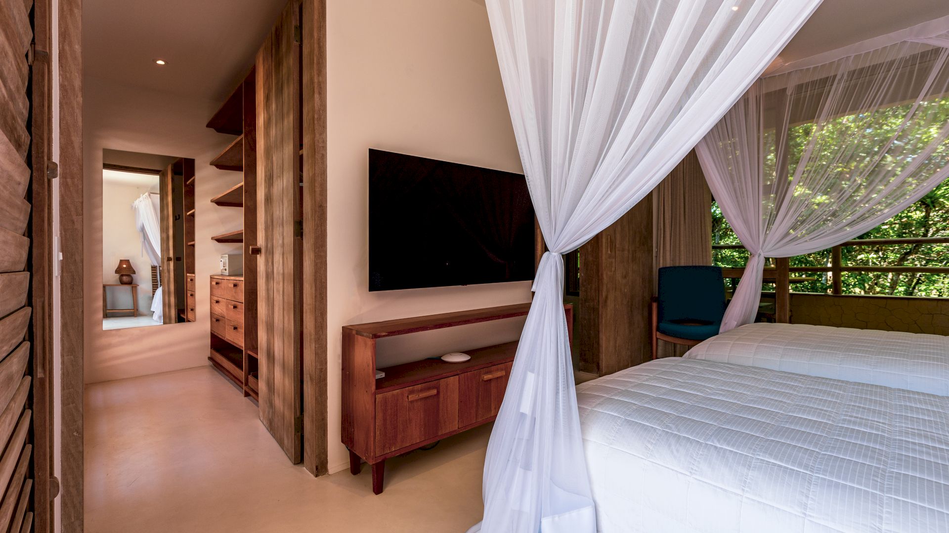 • Suíte master: cama king-size, terraço com ofurô, closet, banheiro amplo, TV