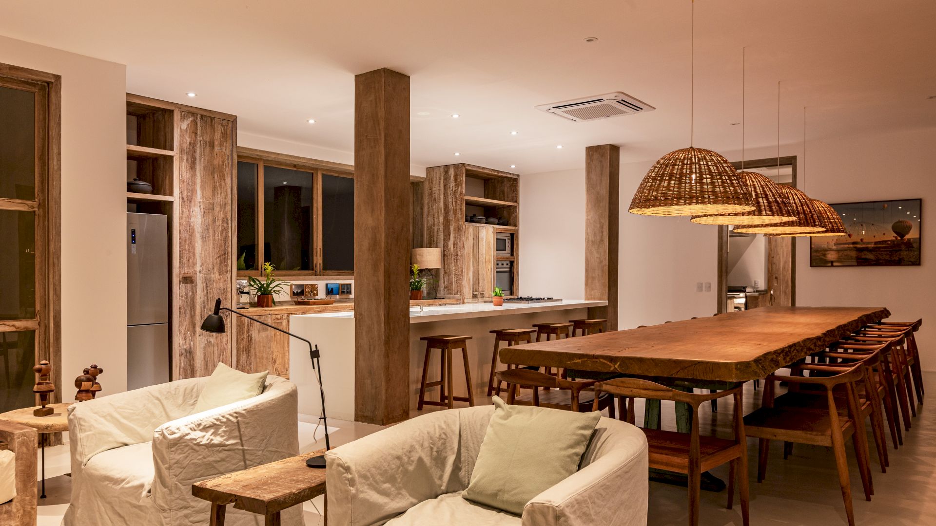 Localizada em um amplo terreno no Condomínio Altos de Trancoso, a Villa Altos de Trancoso 14 oferece conforto, sofisticação e exclusividade. Próxima ao Quadrado e às praias dos Coqueiros e Nativos, a residência tem seu projeto assinado pelo renomado escritório Vida de Vila, que equilibra elementos rústicos, modernos e sofisticados em um design impecável.
