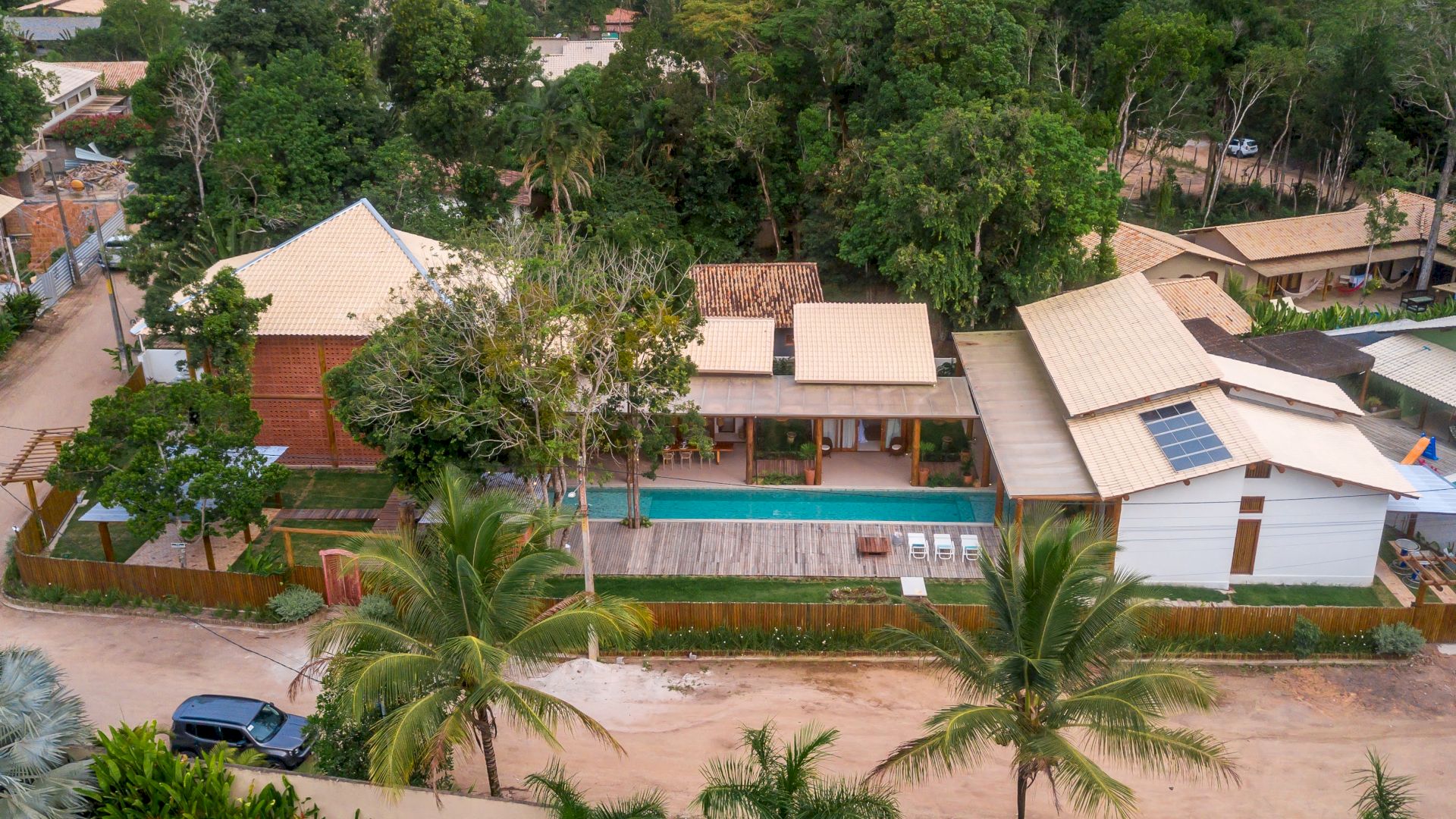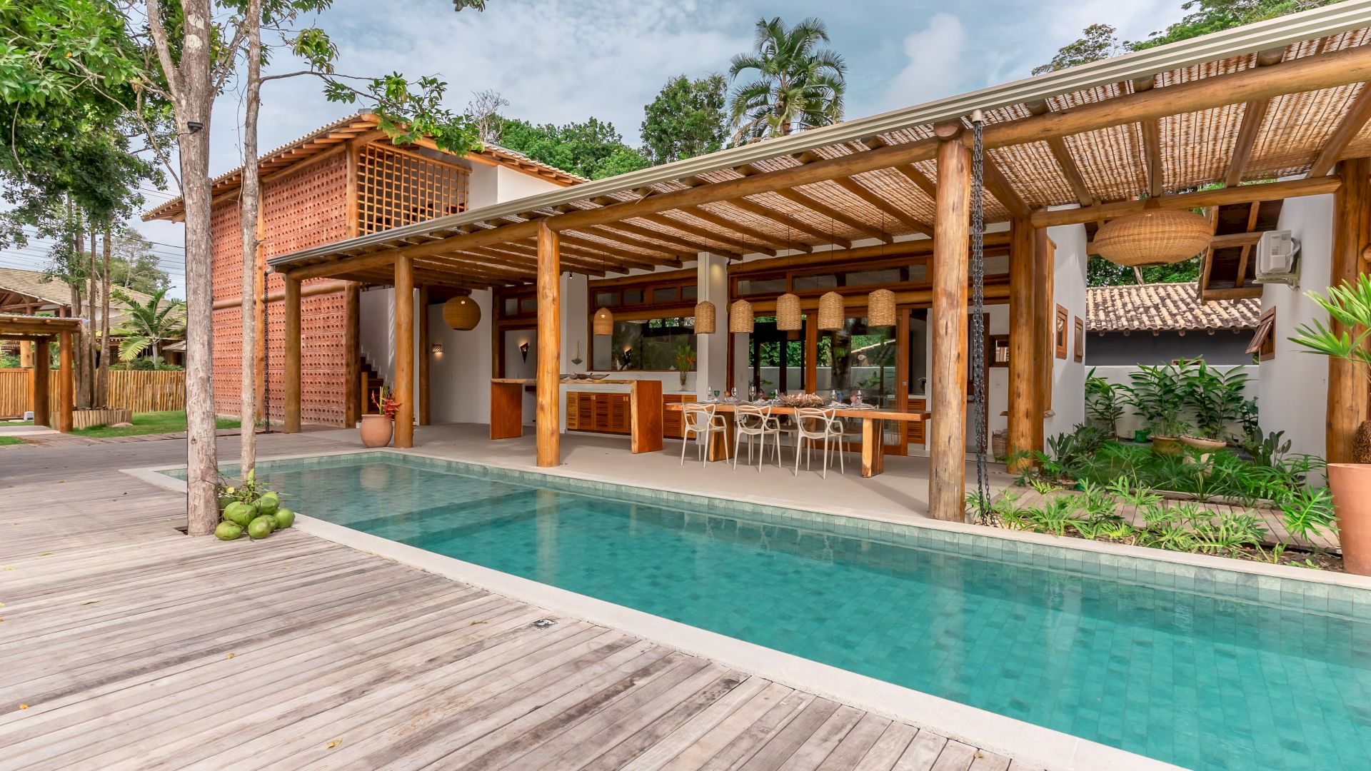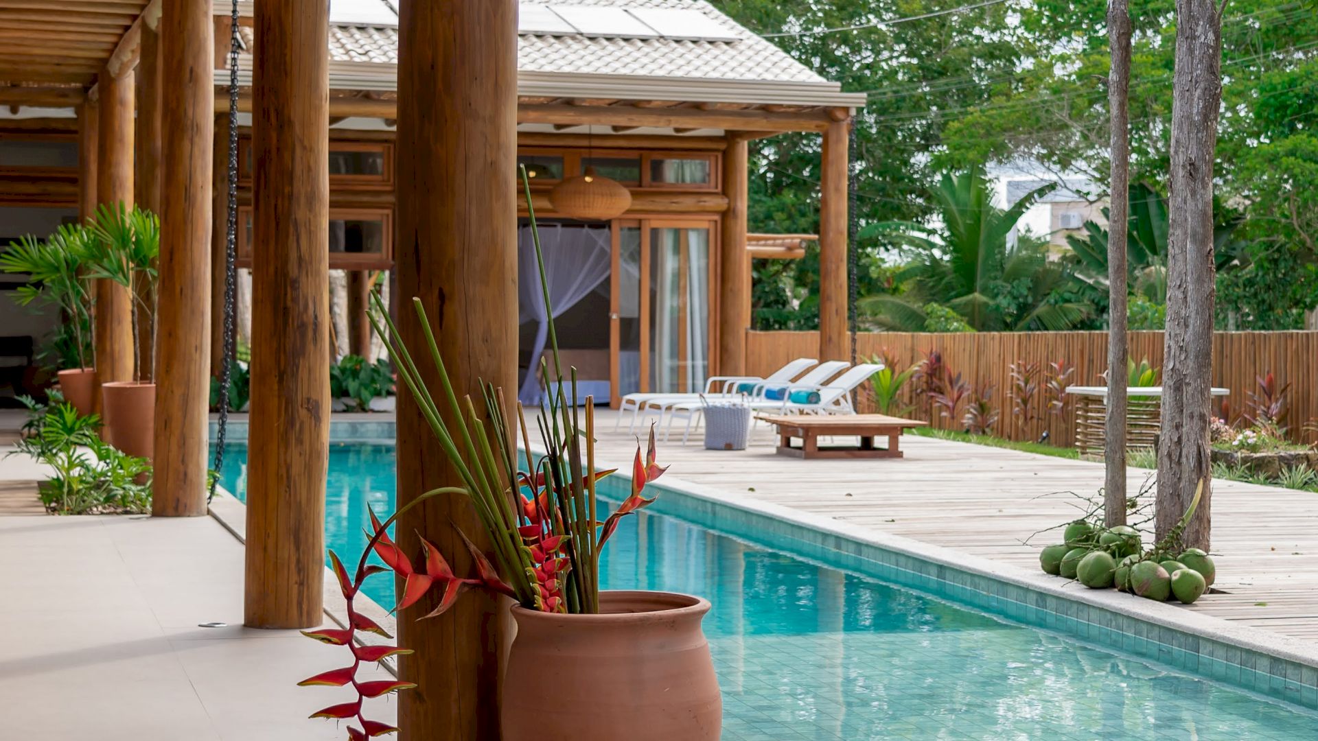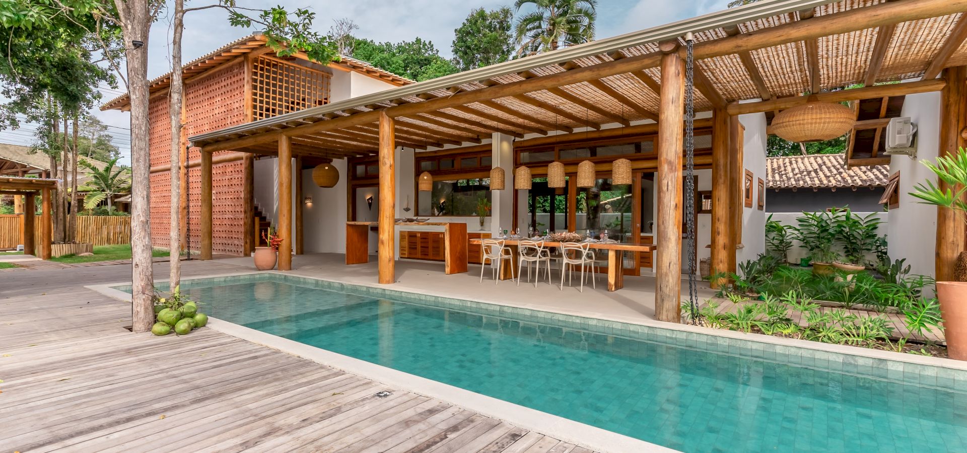 A VILLA COQUEIRAL 02 fica localizada no condomÃnio Coqueiral cercado por muita vegetação nativa e tropical. O condomÃnio é fechado, com segurança 24 horas, fica 10 minutos de carro do Quadrado, da Praia dos Coqueiros e Praia dos Nativos.