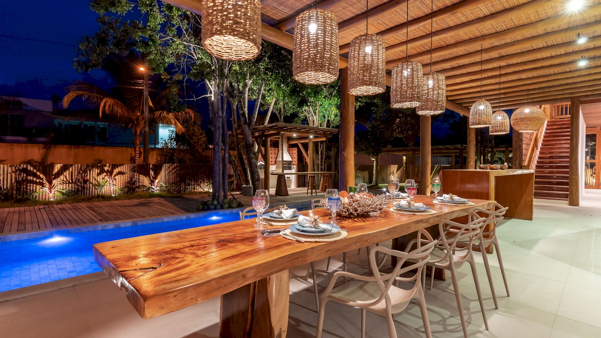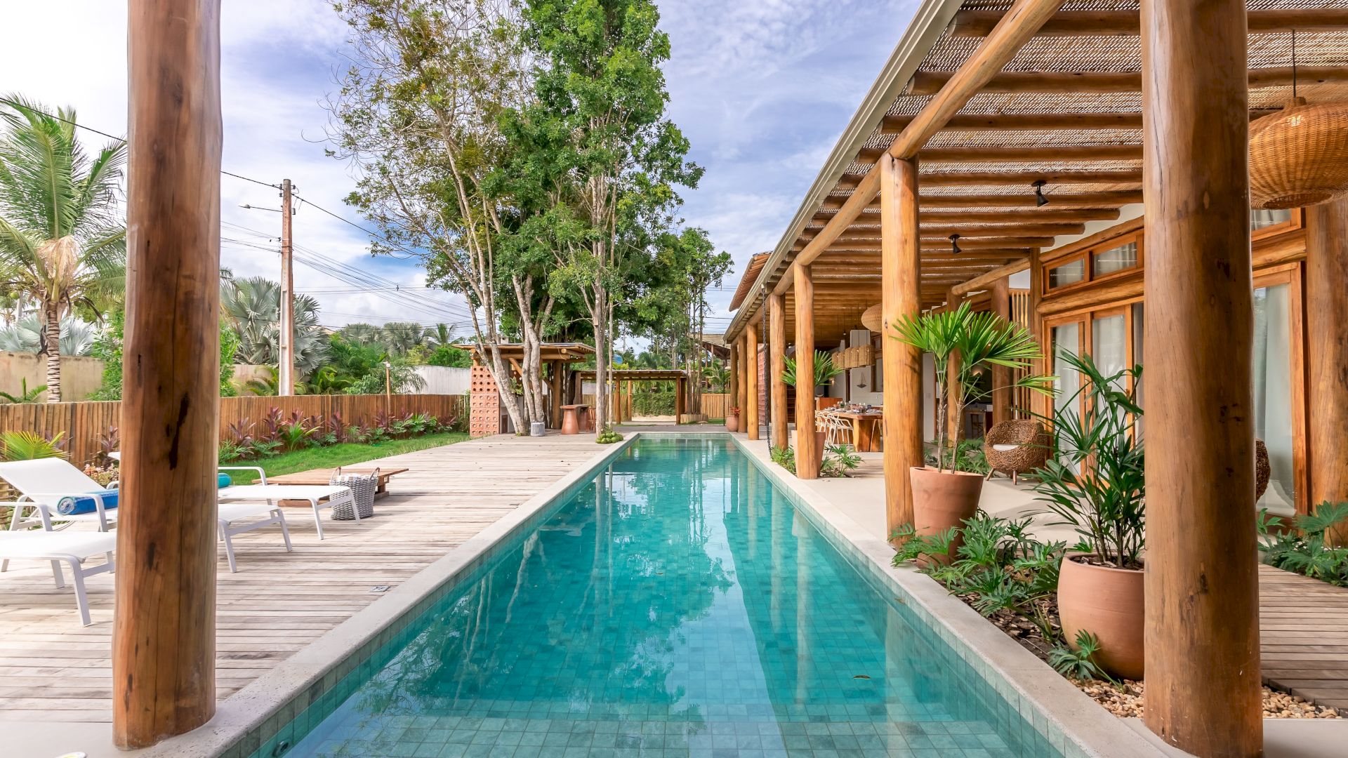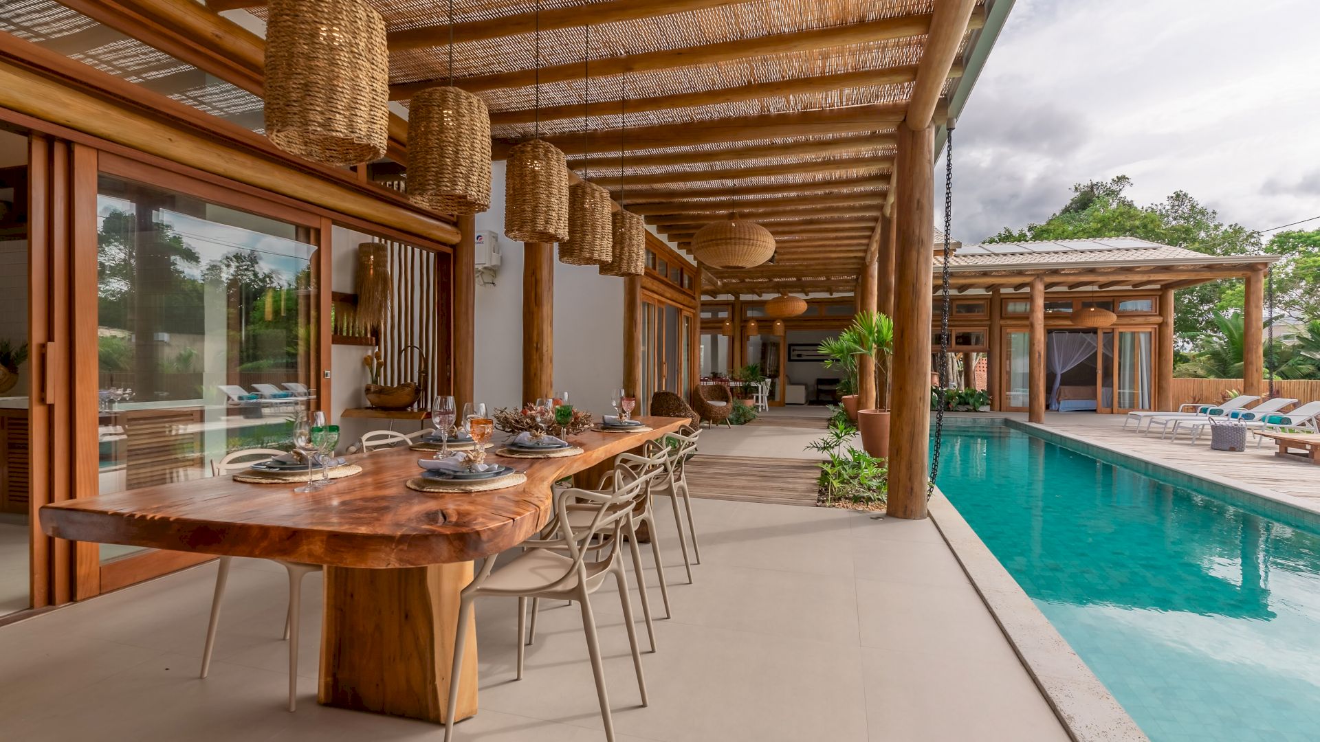 A casa possui 7 suÃtes que acomodam 15 hóspedes confortavelmente. Toda equipada com enxoval completo e cozinha completa, a casa dispõe uma parte de lazer completa com uma linda piscina integrando com a varanda, espaço gourmet, churrasqueira, espreguiçadeiras e jardim.