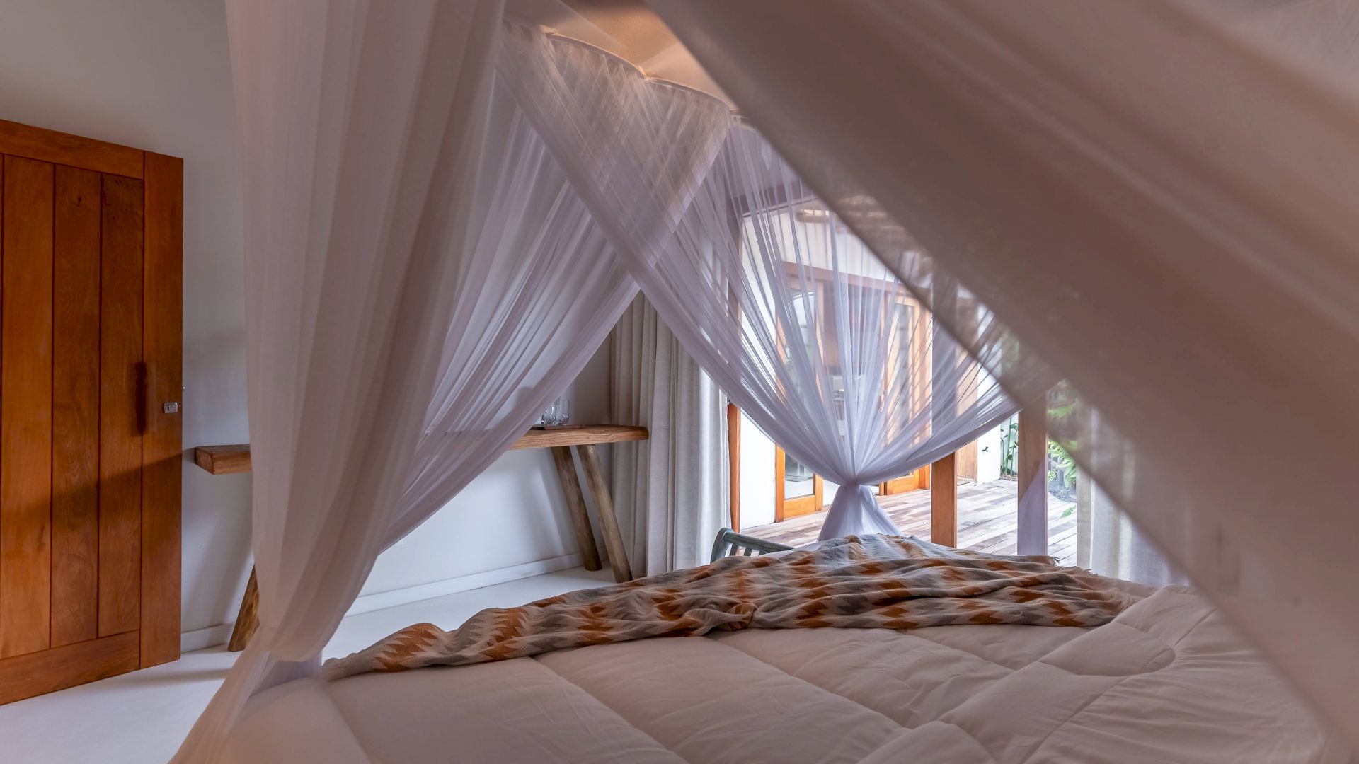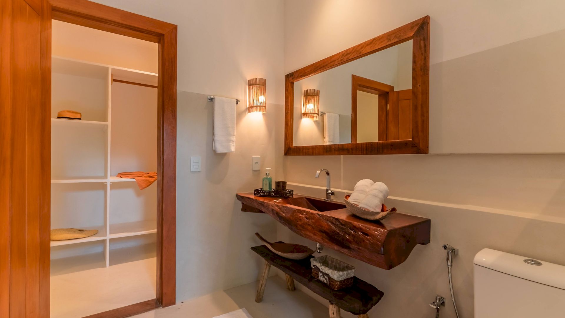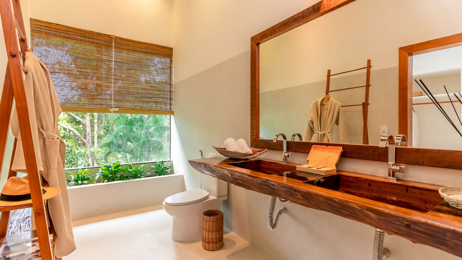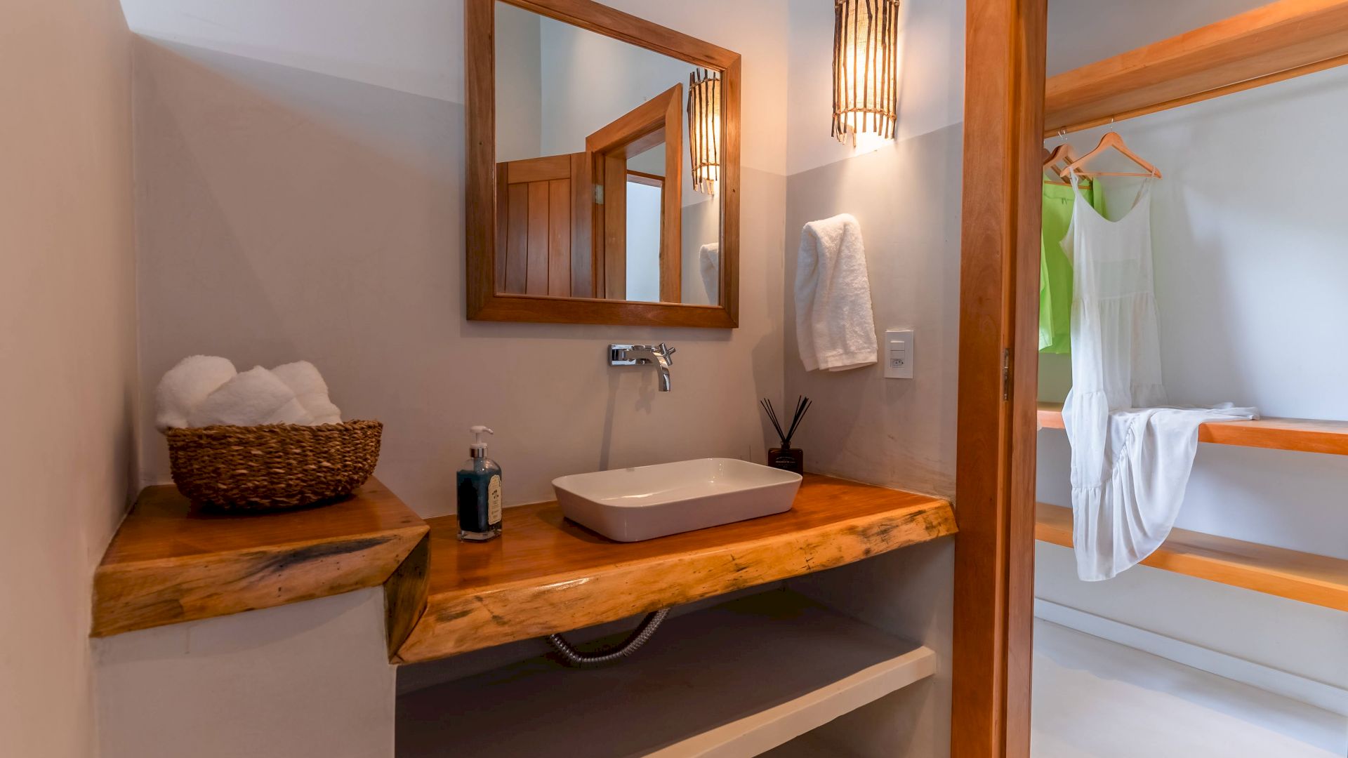 As suÃtes sao equipadas com cama king-size, ar condicionado, closet, mosquiteiro,