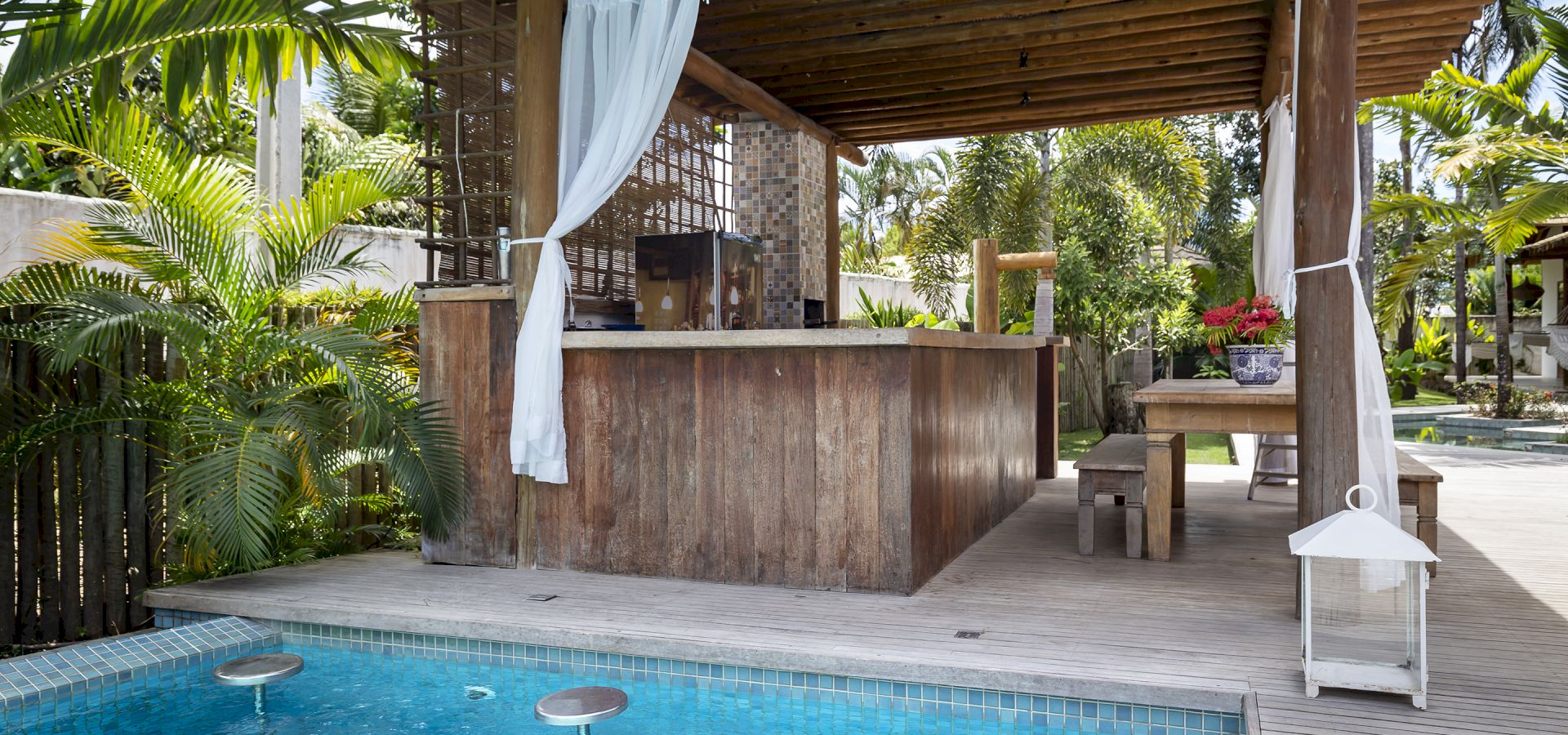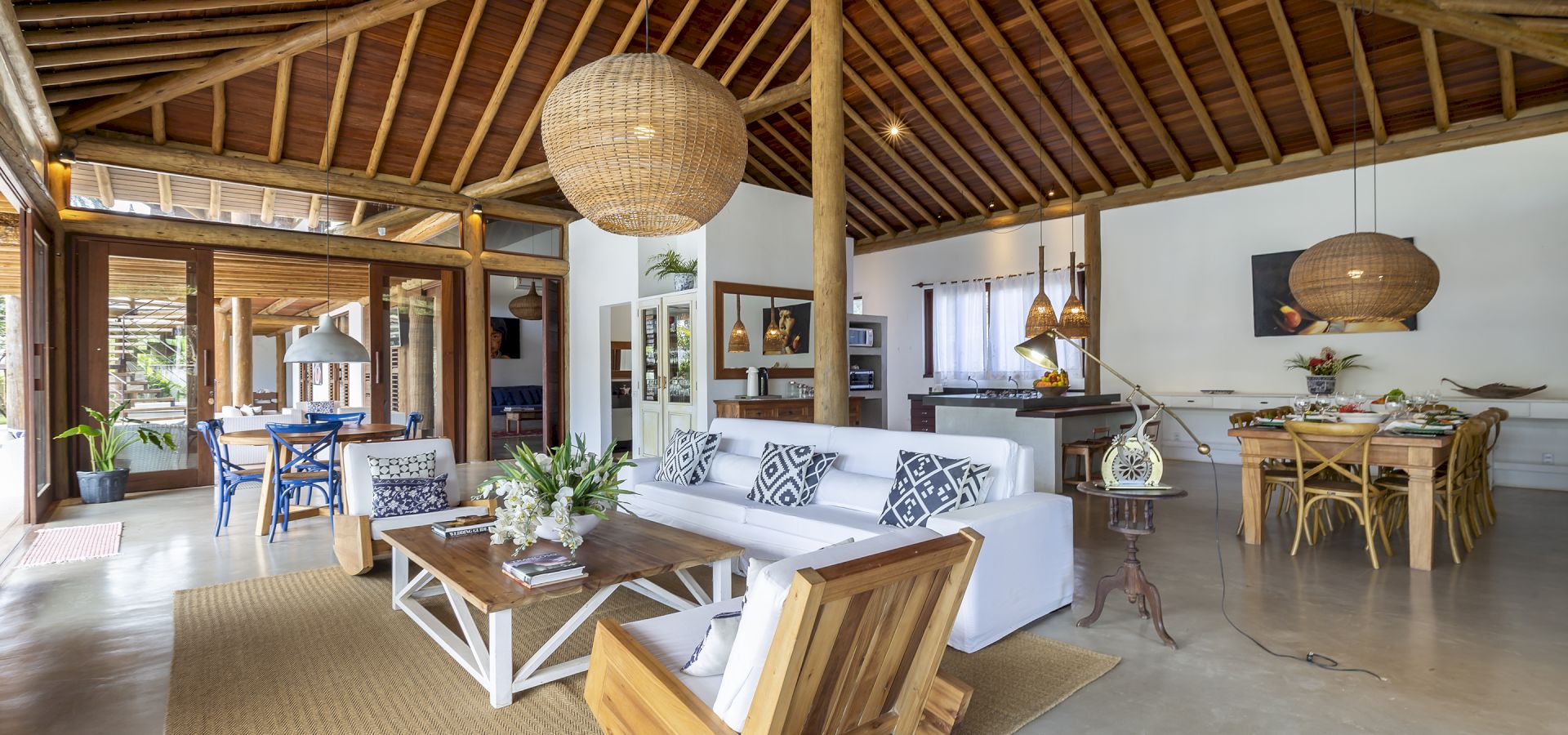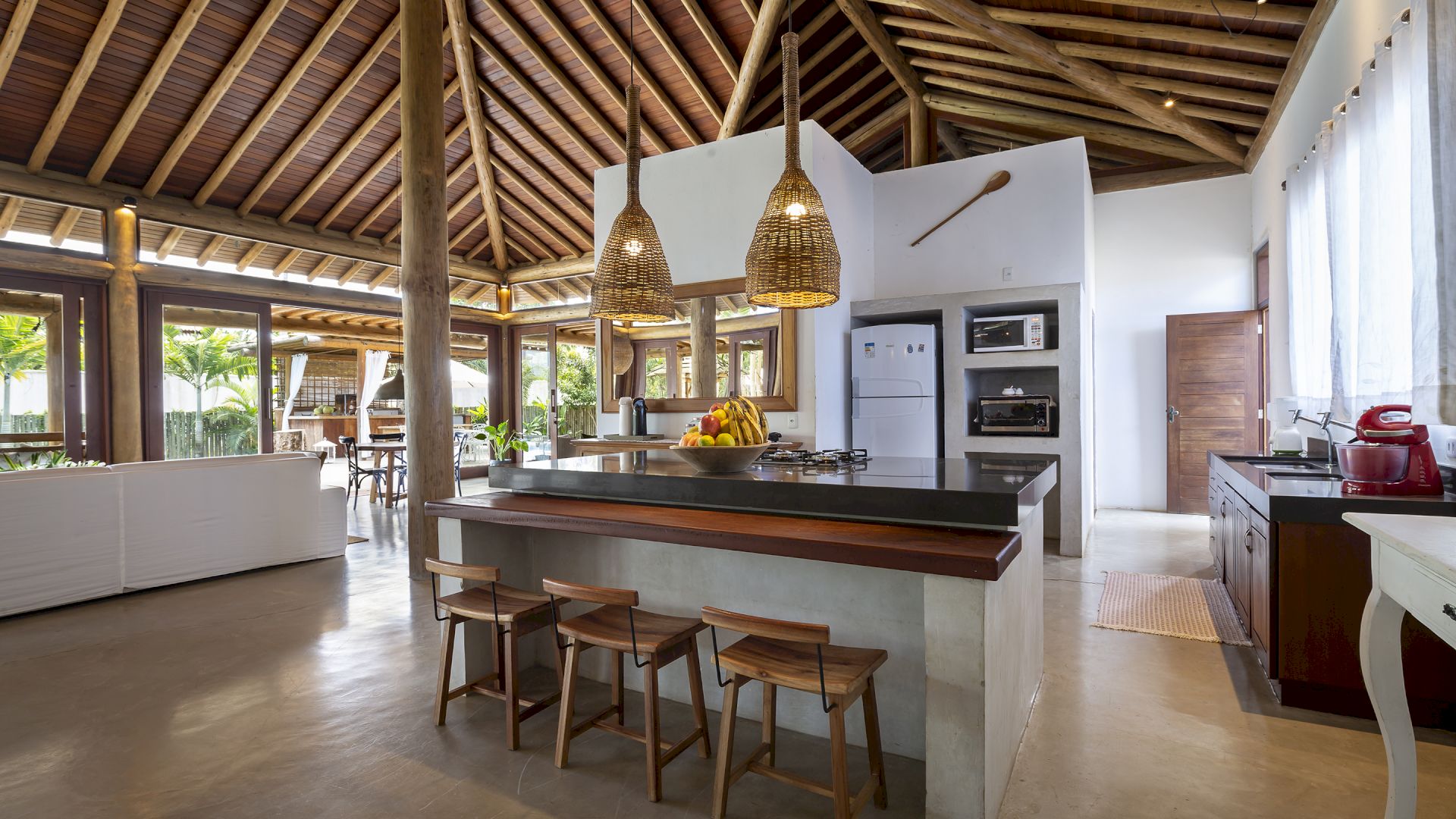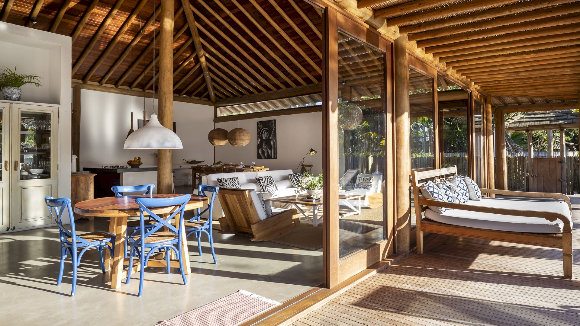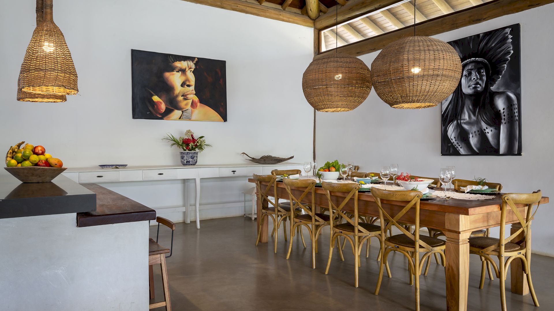 A casa foi desenhada e humanizada seguindo a essência baiana com uma lindÃssima curadoria de decoração de objetos locais. Todos os cômodos são amplos e com pé de direito alto que deixa a casa bem ventilada e iluminada. O enxoval de cama e cozinha é completÃssimo.