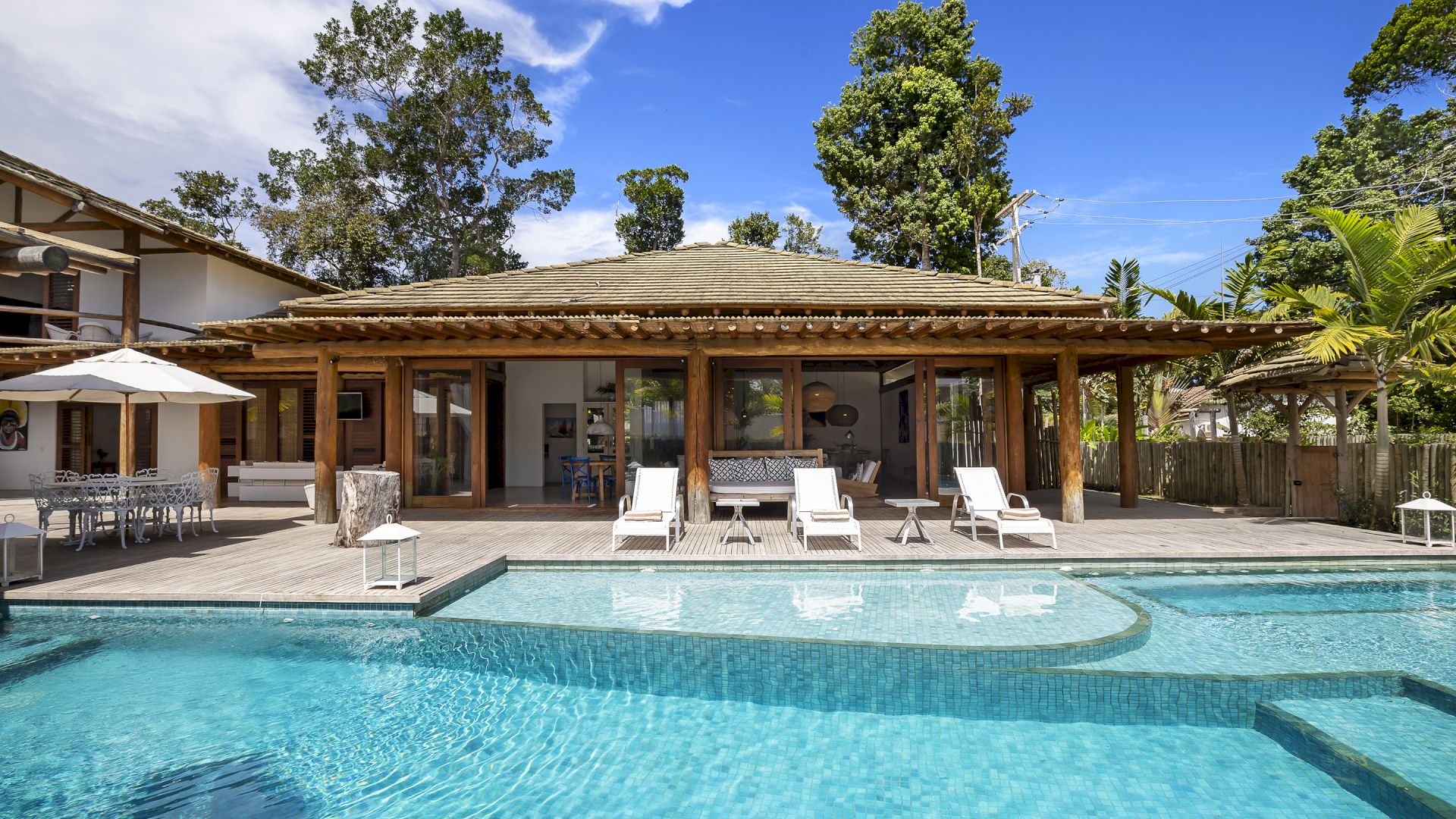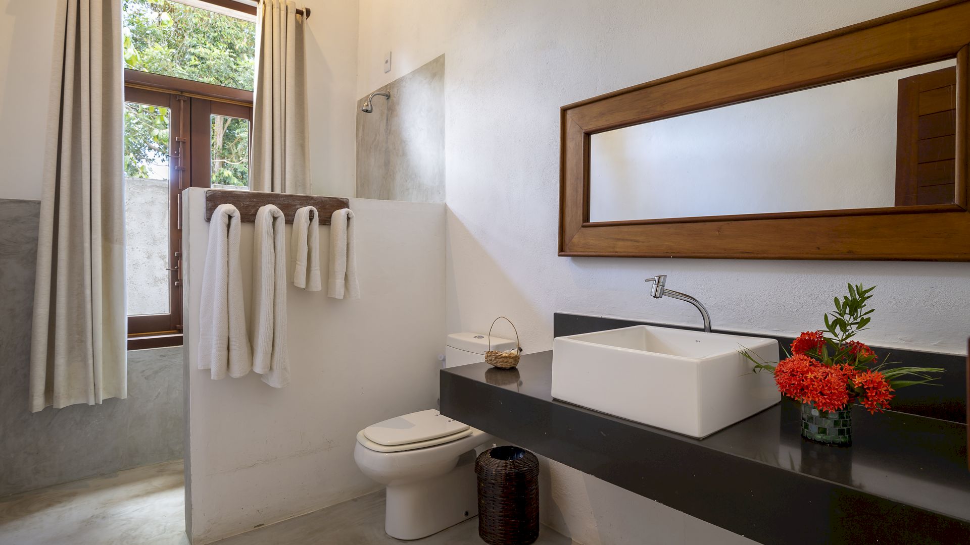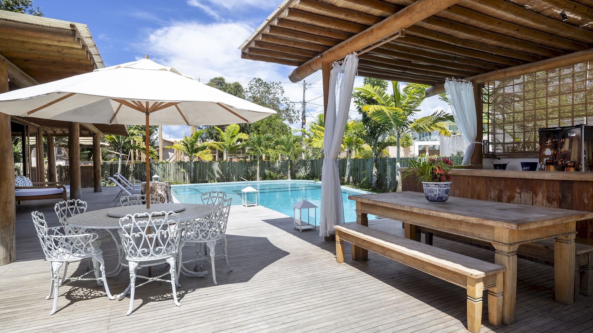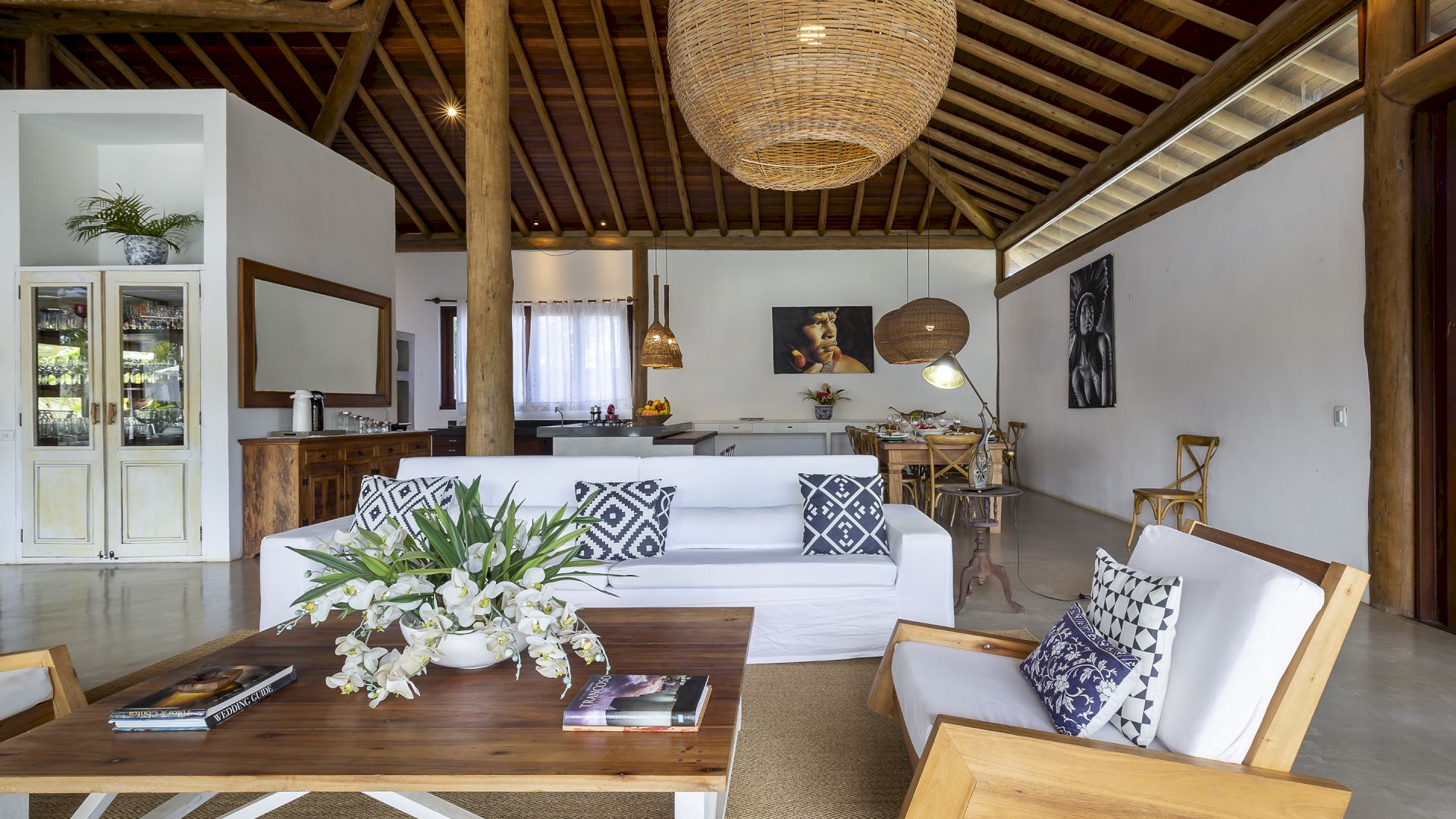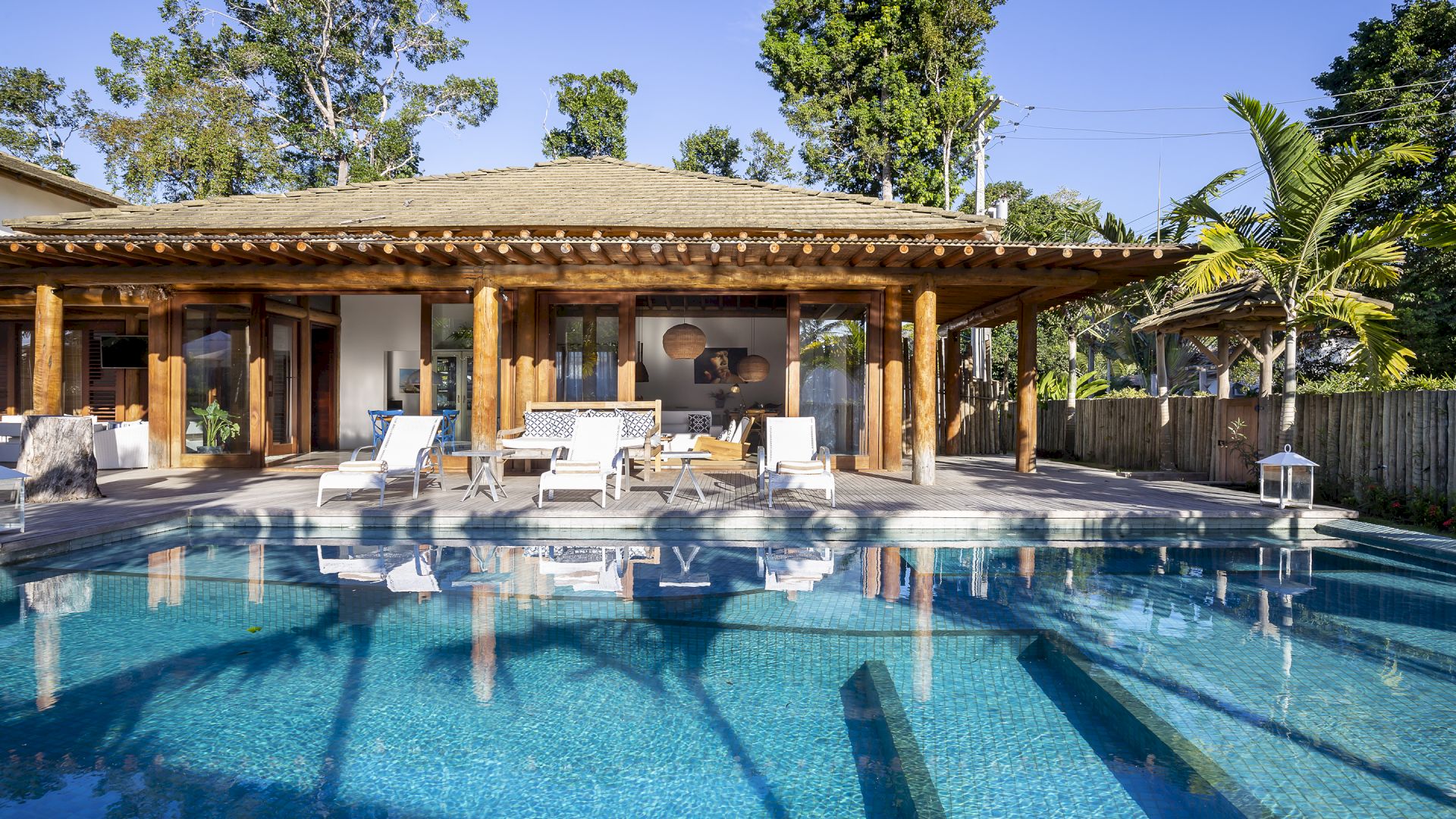 A casa foi desenhada e humanizada seguindo a essência baiana com uma lindÃssima curadoria de decoração de objetos locais. Todos os cômodos são amplos e com pé de direito alto que deixa a casa bem ventilada e iluminada. O enxoval de cama e cozinha é completÃssimo.
