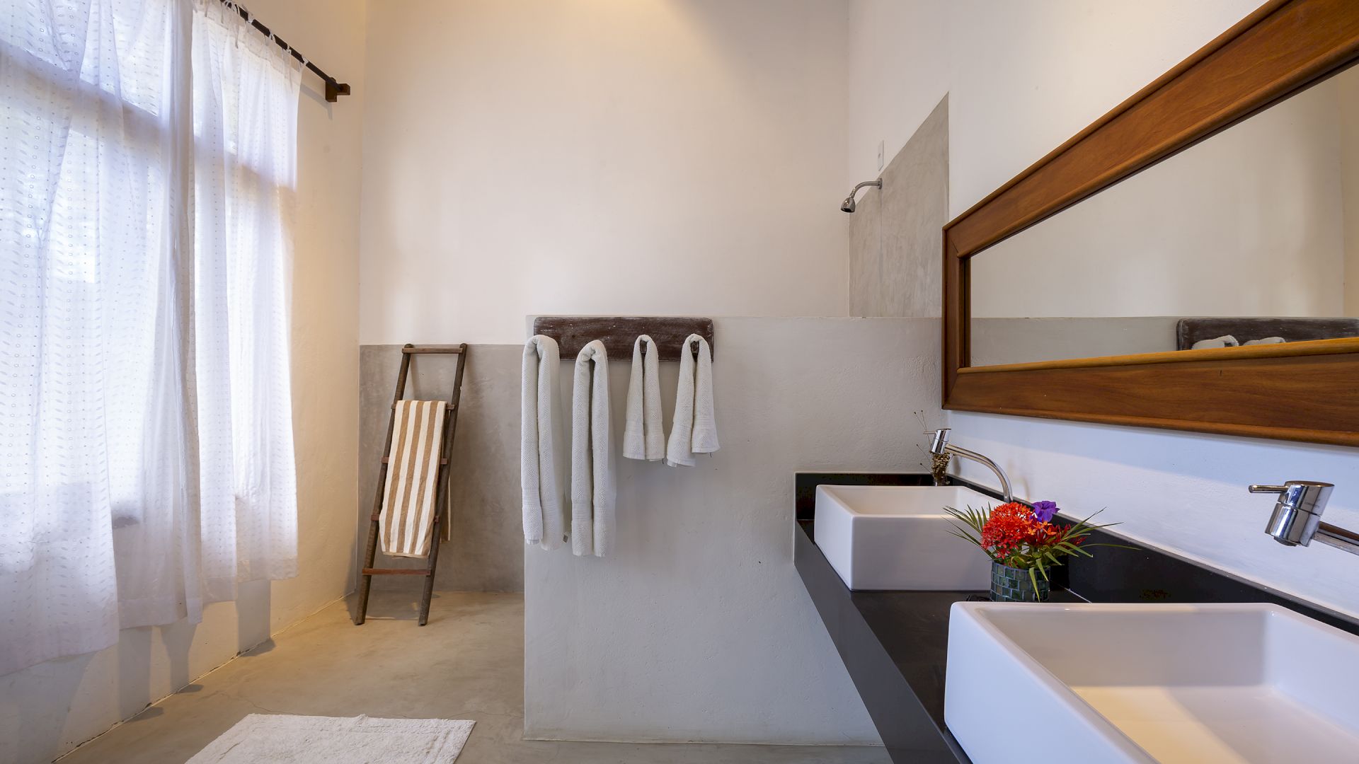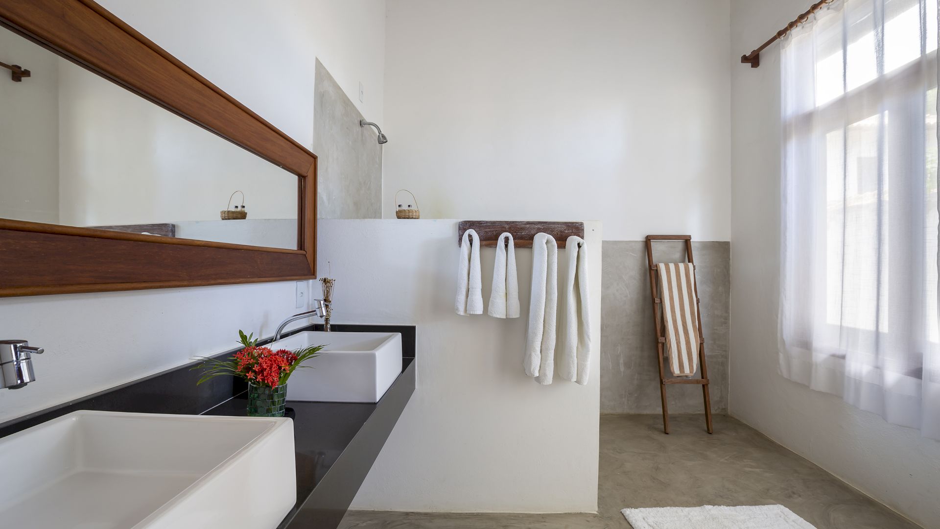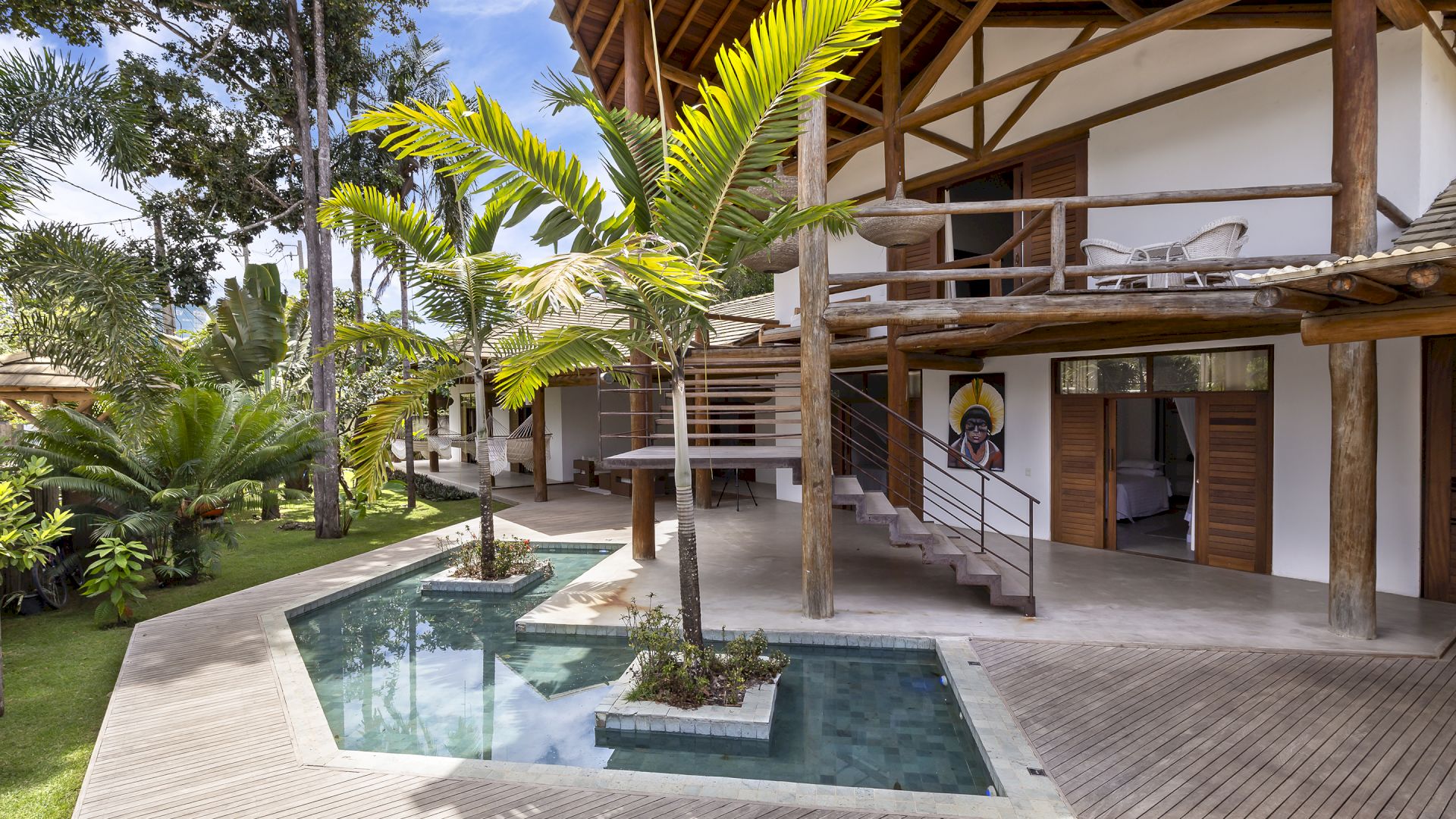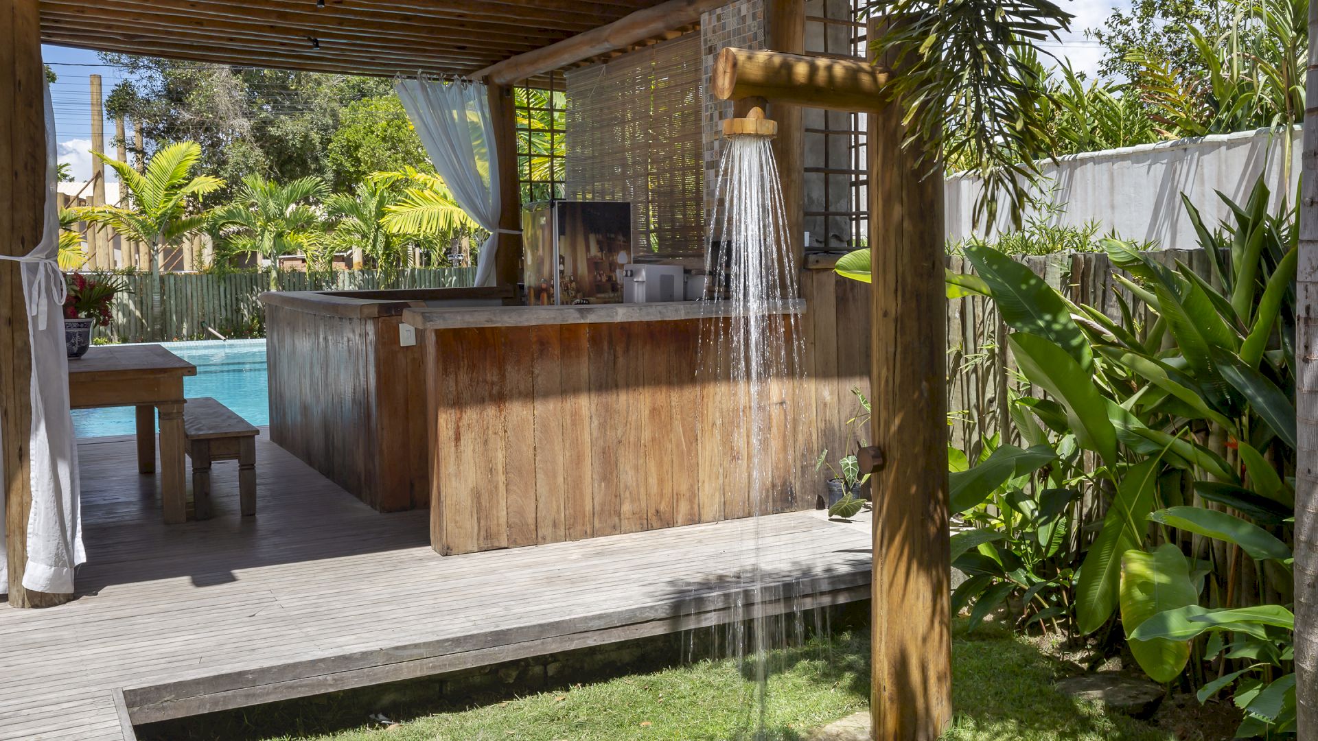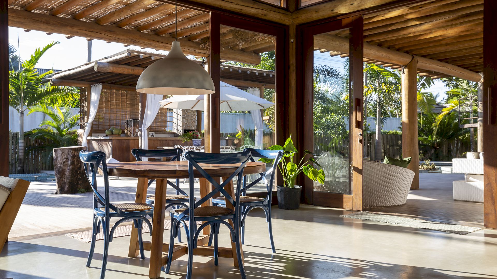 A casa foi desenhada e humanizada seguindo a essência baiana com uma lindÃssima curadoria de decoração de objetos locais. Todos os cômodos são amplos e com pé de direito alto que deixa a casa bem ventilada e iluminada. O enxoval de cama e cozinha é completÃssimo.
