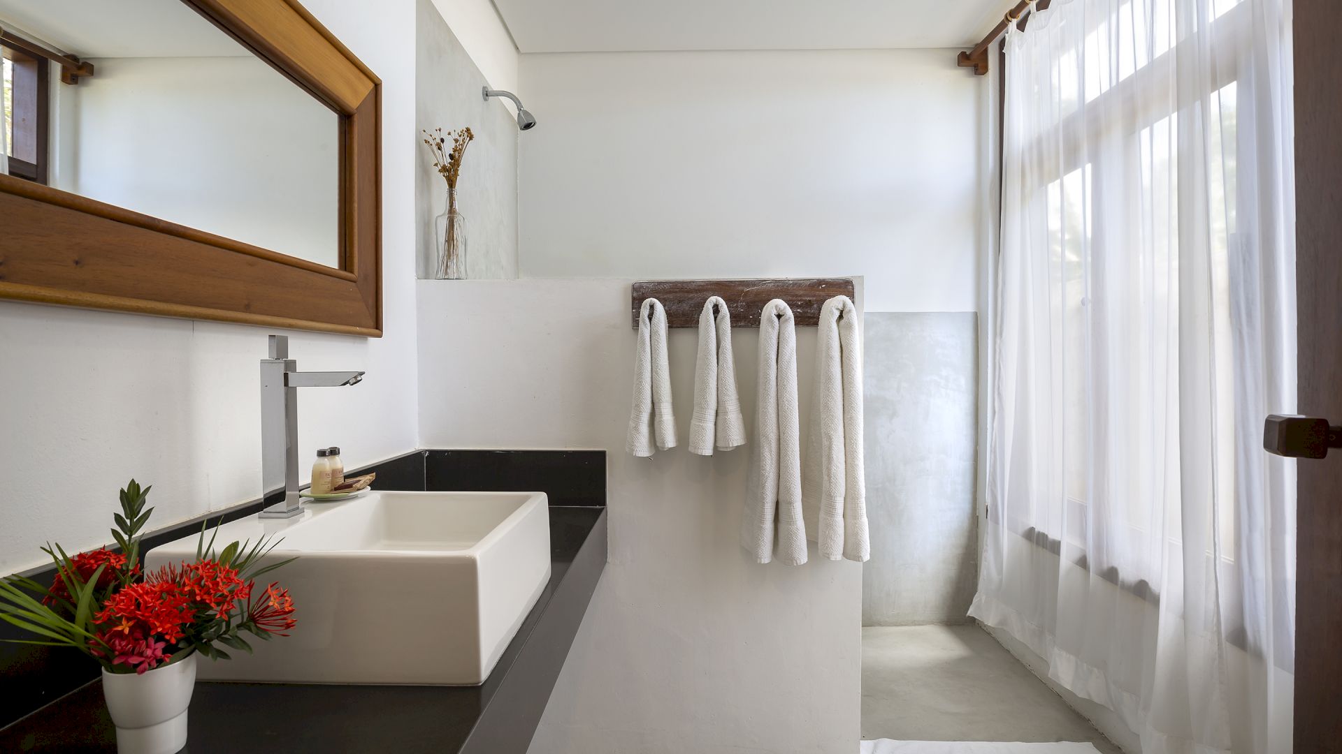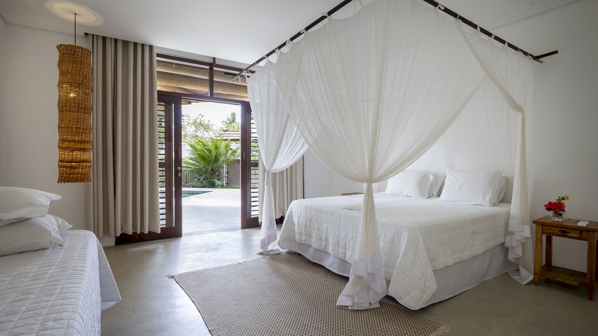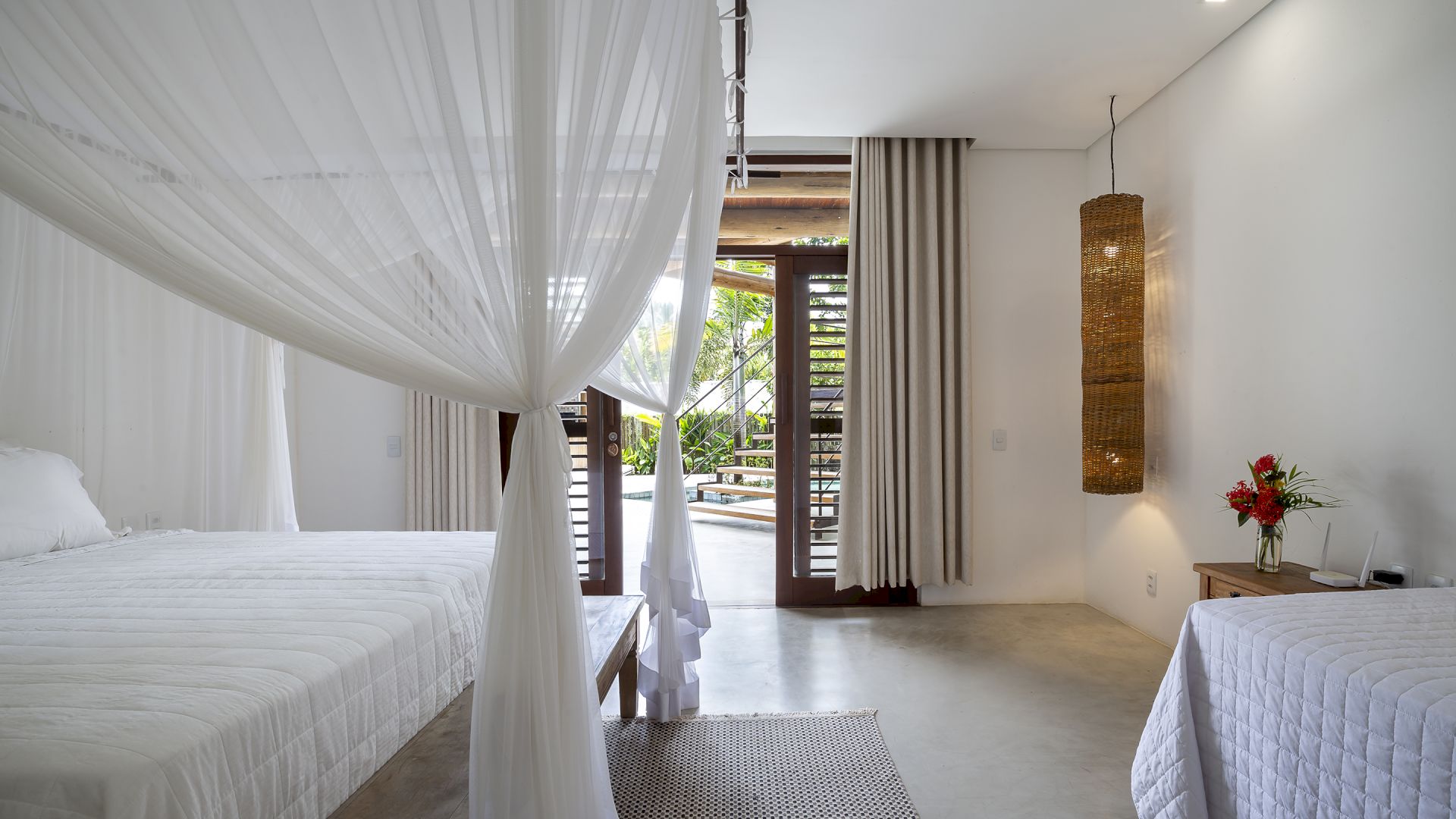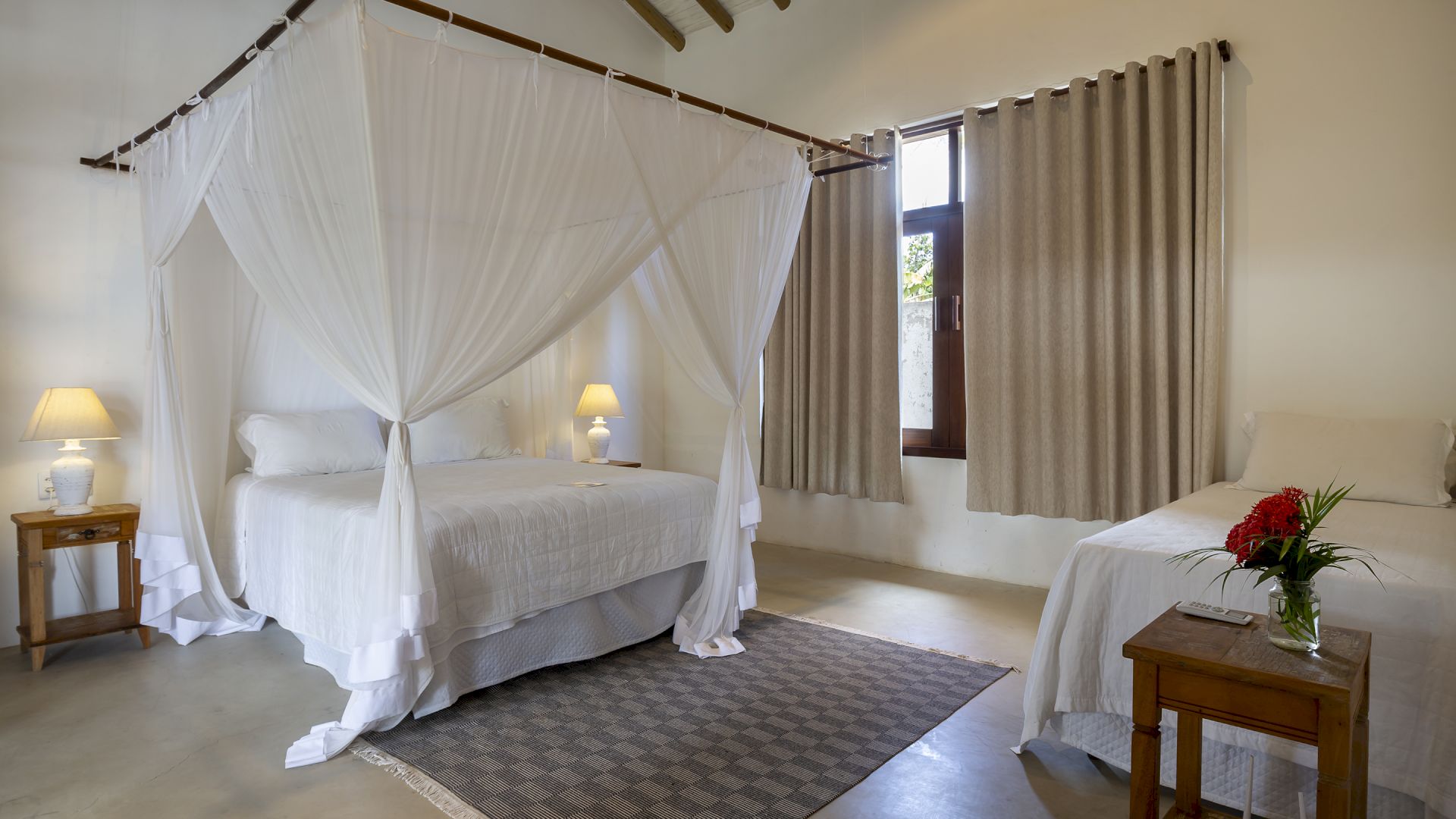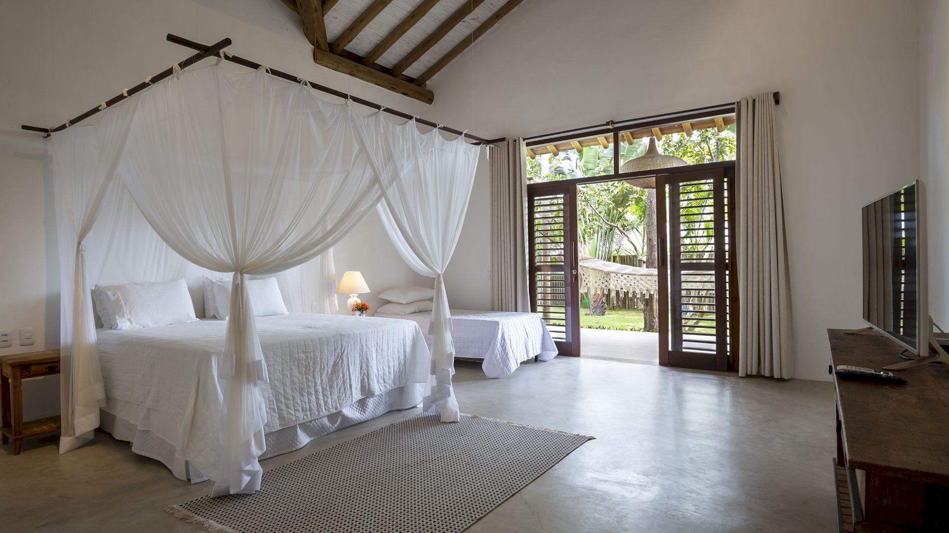 Todas as suÃtes são equipadas com cama king-size, ar condicionado, mosquiteiro e cofre.