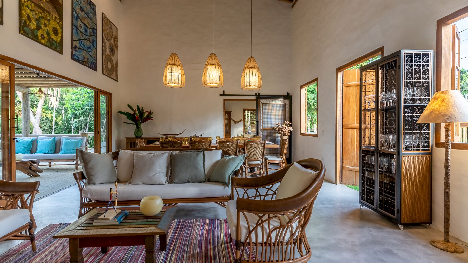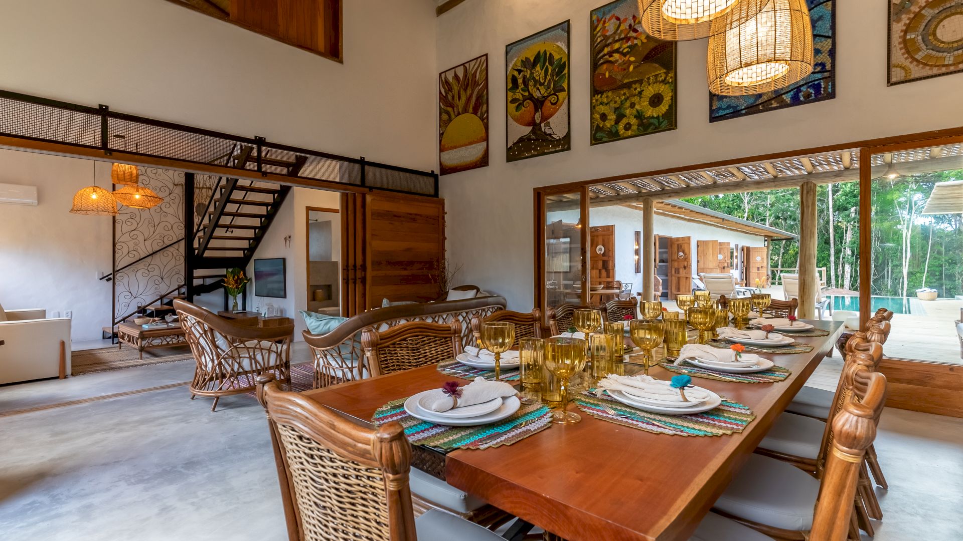 Uma casa elaborada e decorada para proporcionar uma experiencia única aos hóspedes. Uma decoração que valoriza o artesanato brasileiro com peças vindas de vários Estados do Brasil, dando um ar de aconchego ao ambiente. A casa dispõe de 05 quartos sendo 04 suítes e acomoda até 10 hóspedes confortavelmente. Com possibilidade de adicionar mais 4 camas de solteiro para acomodar até 14 pessoas.