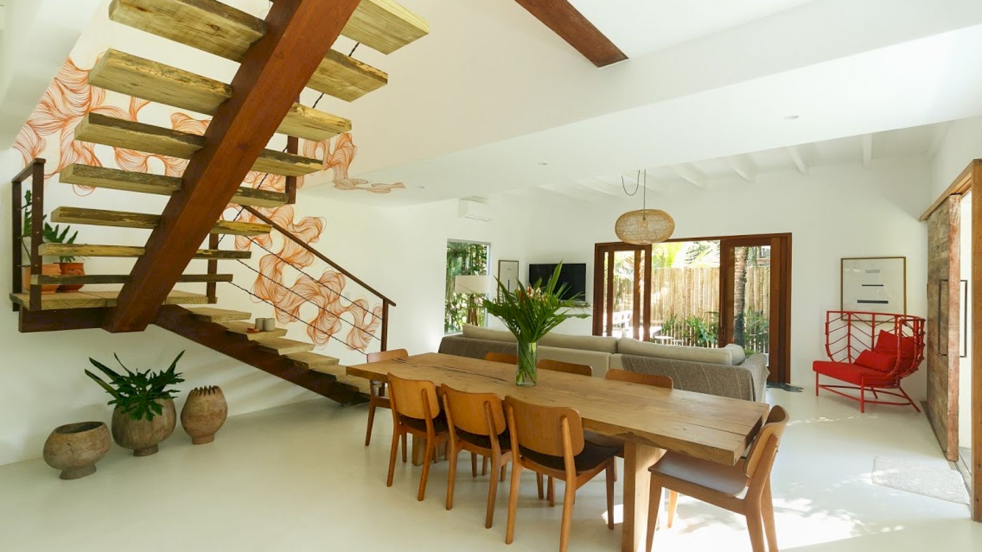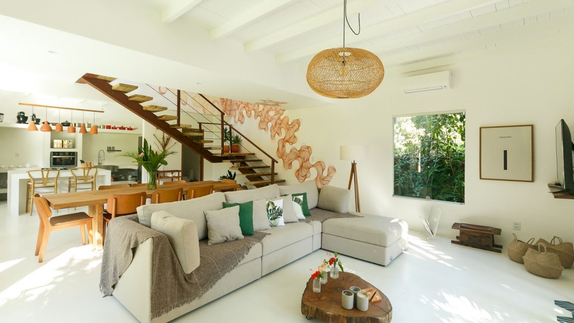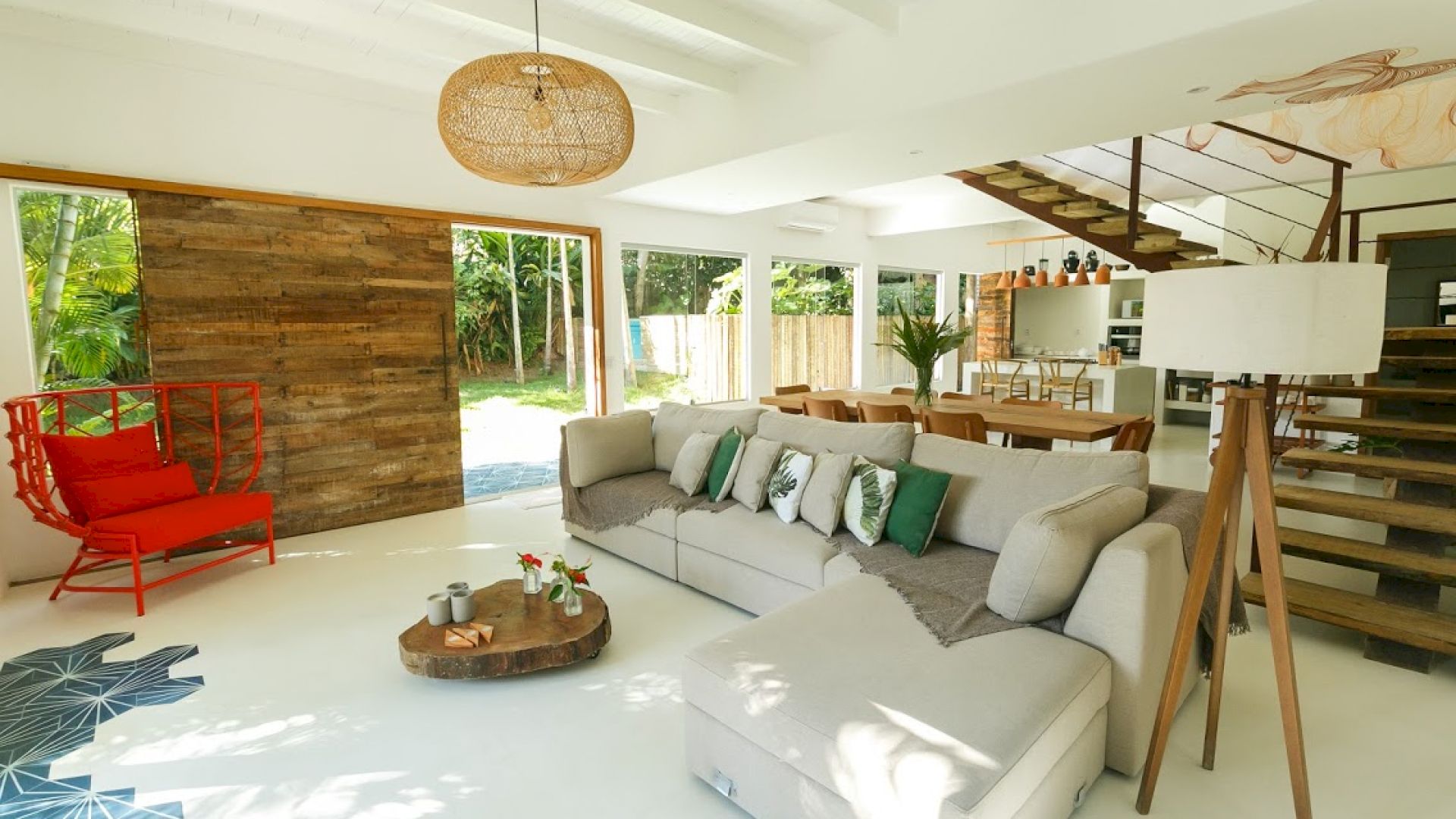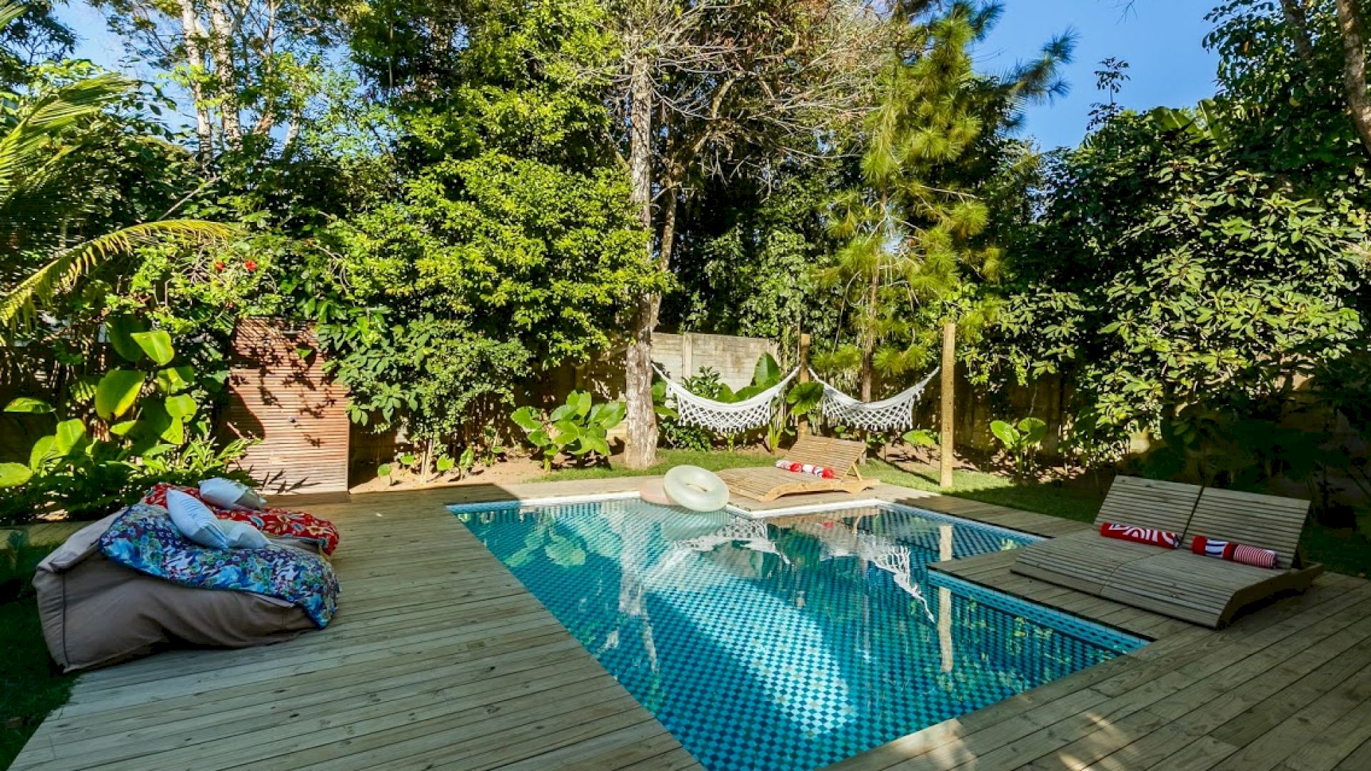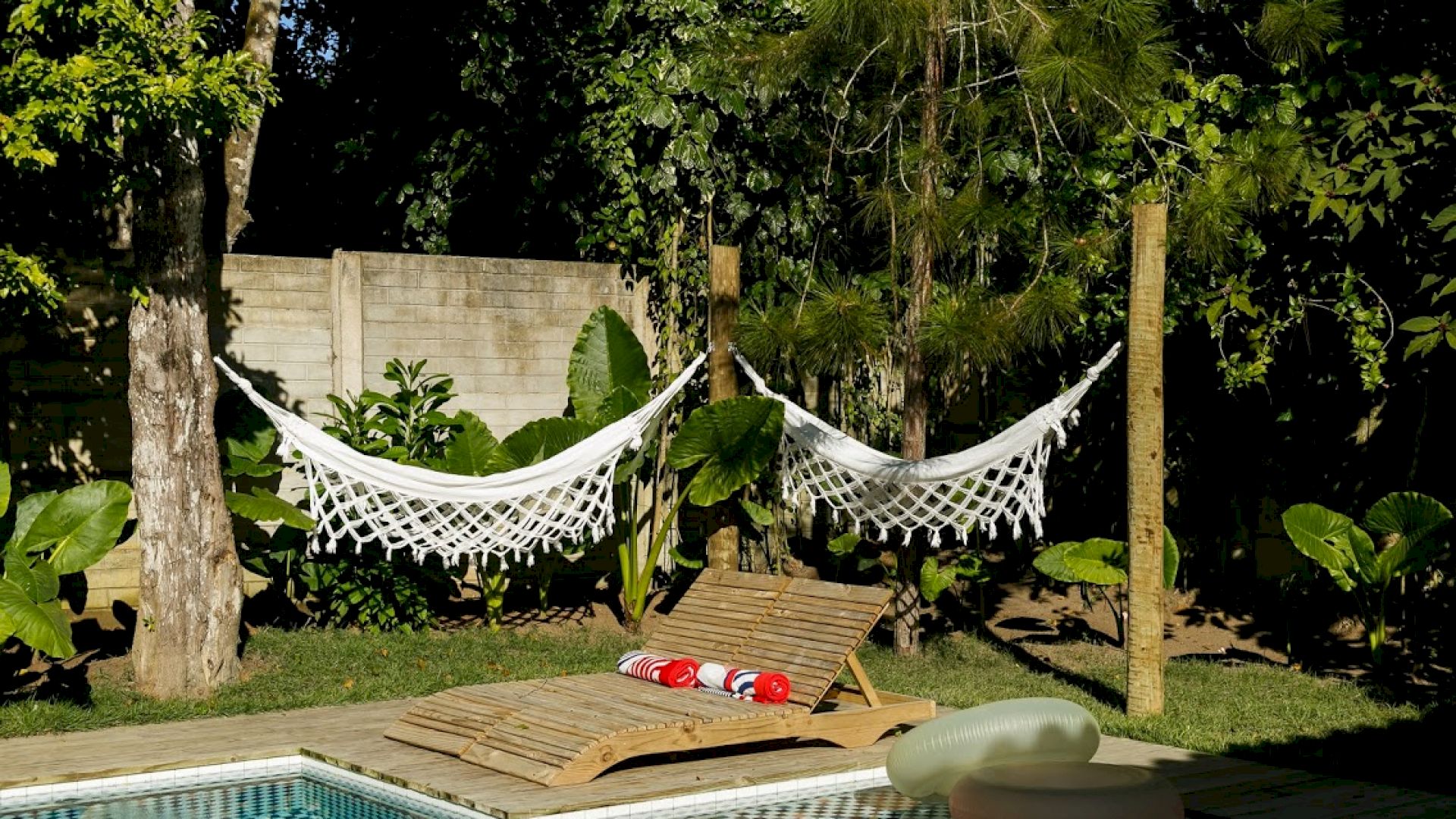 A casa é composta por 4 suítes que acomodam 8 hóspedes confortavelmente.
