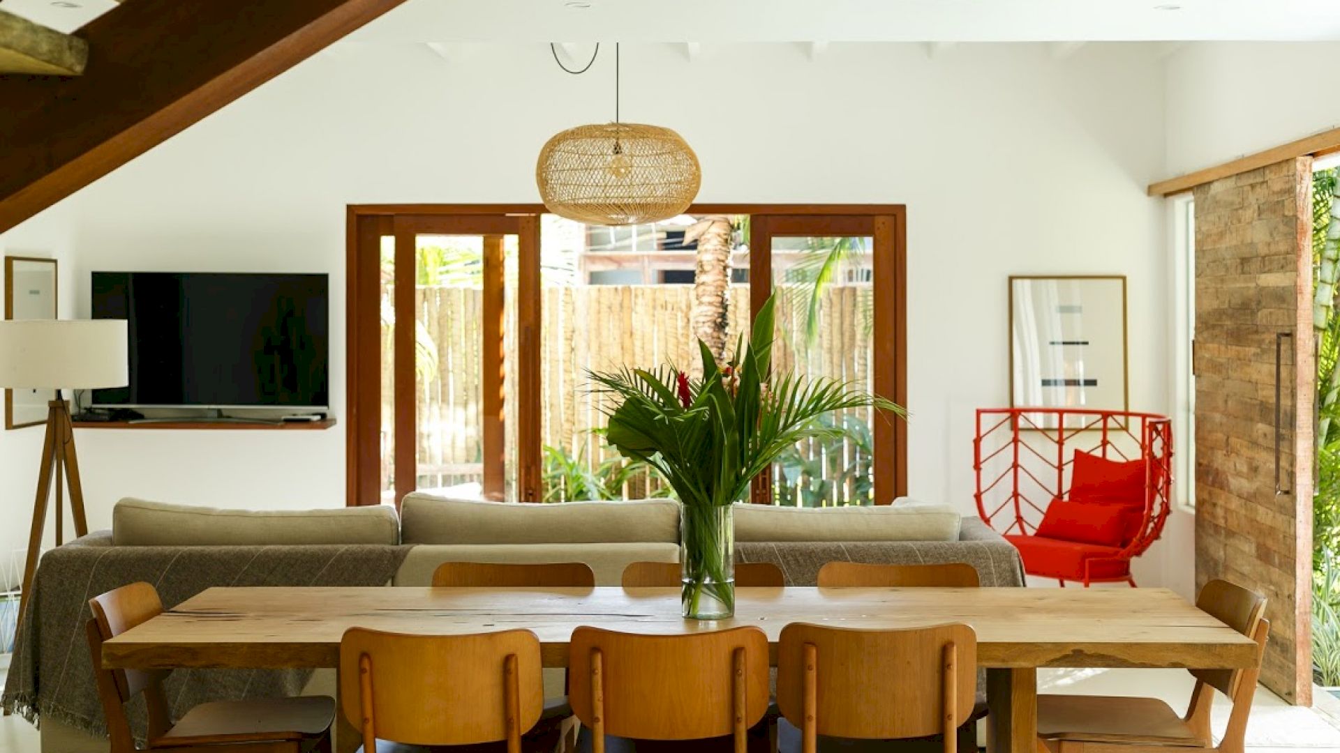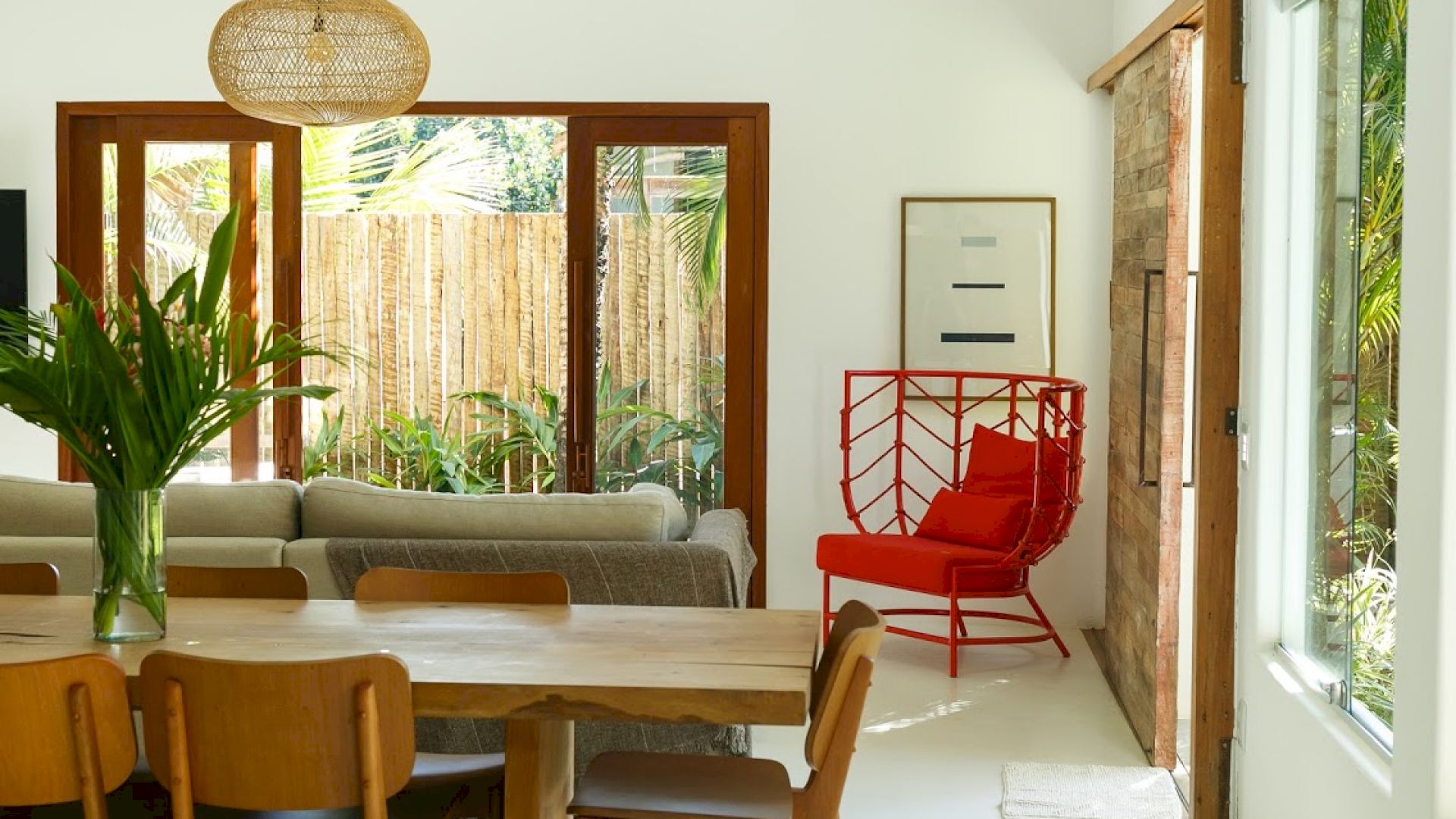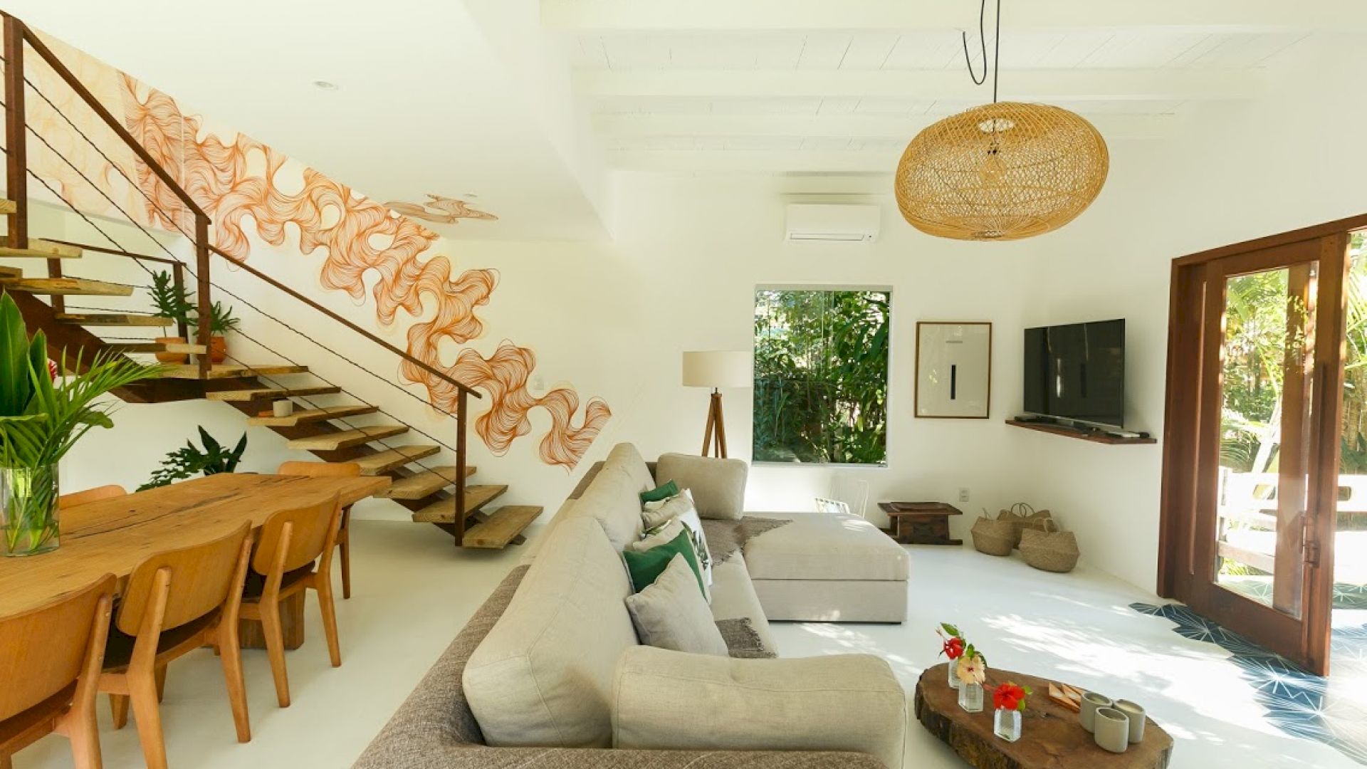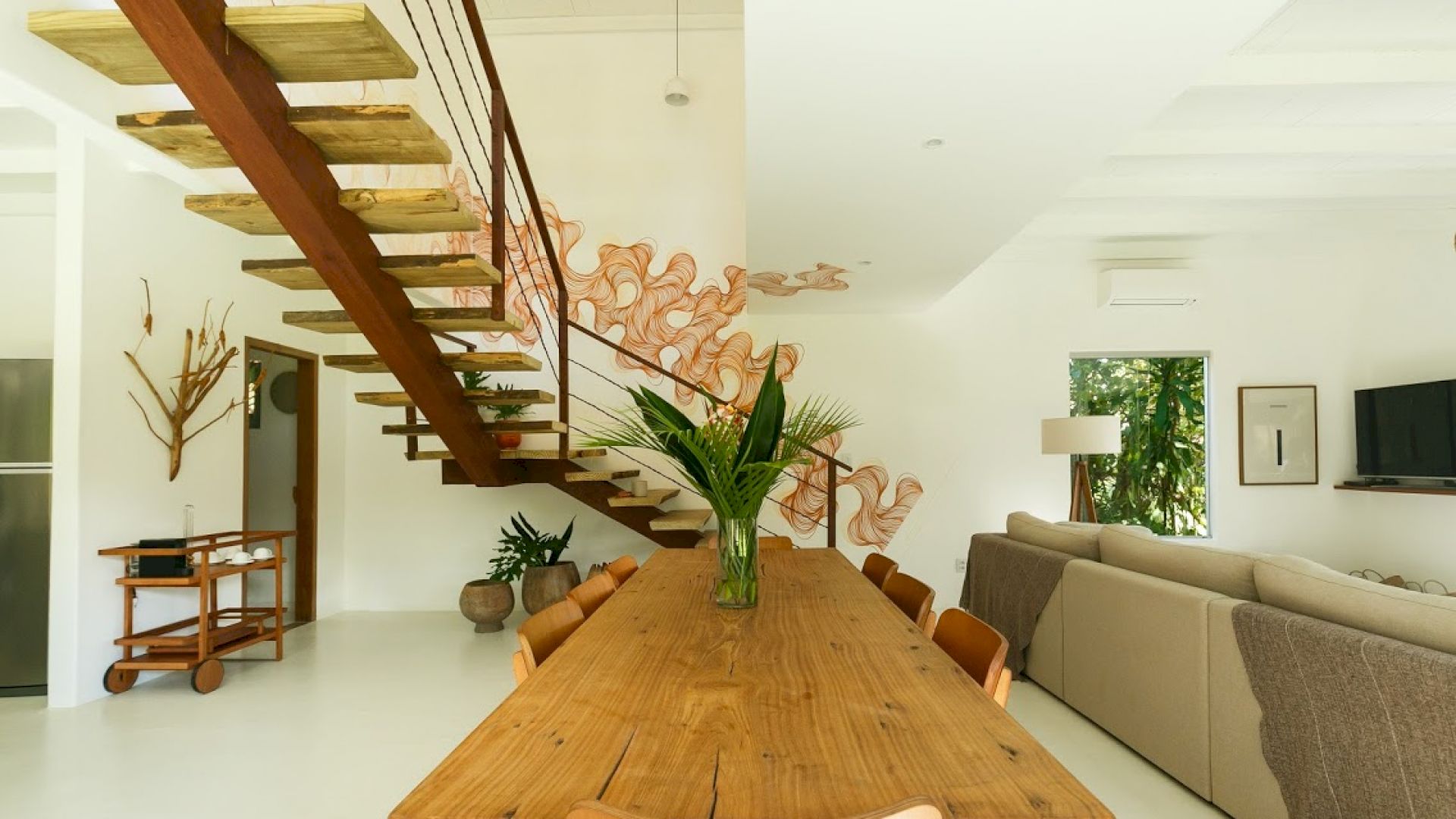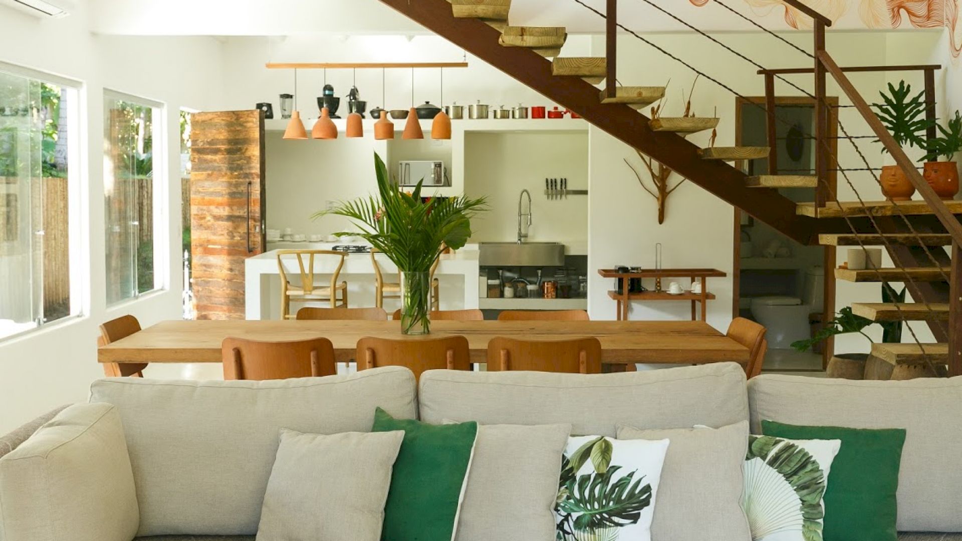 A casa é composta por 4 suítes que acomodam 8 hóspedes confortavelmente.