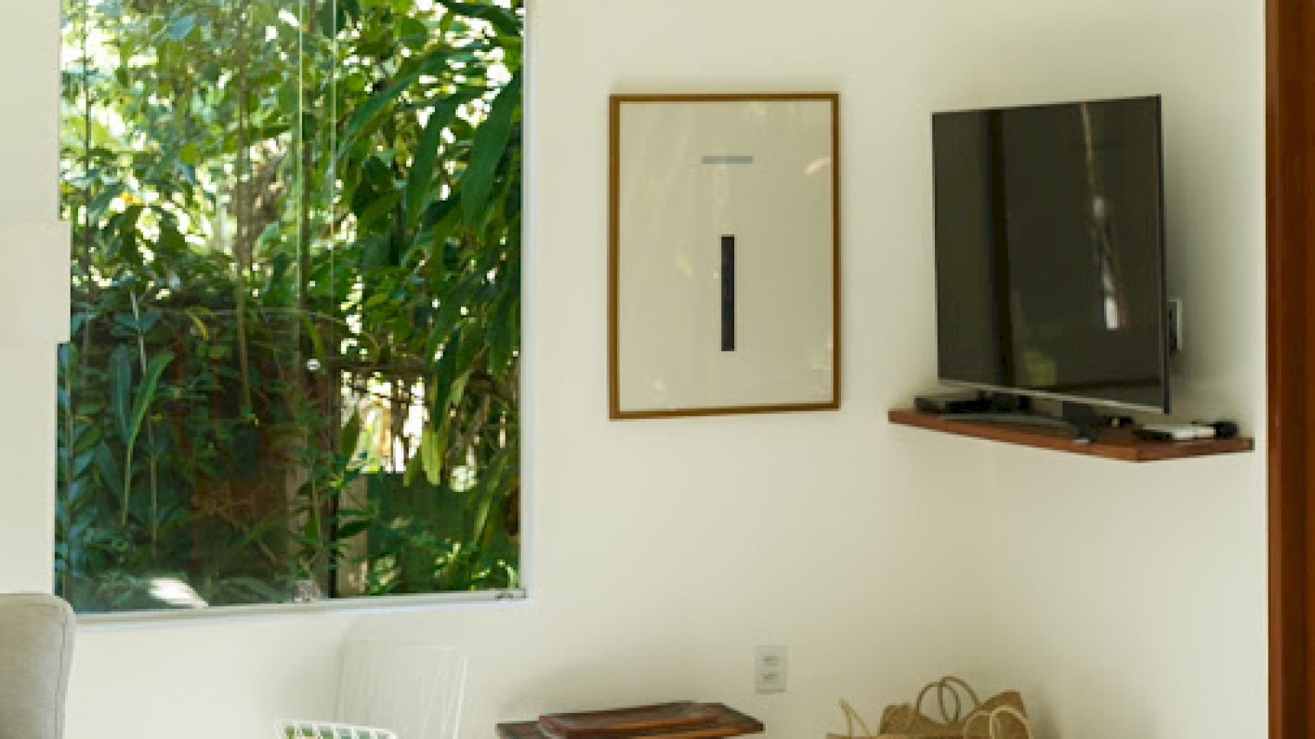 aberta, com sala de estar com Tv a cabo e internet wi-fi