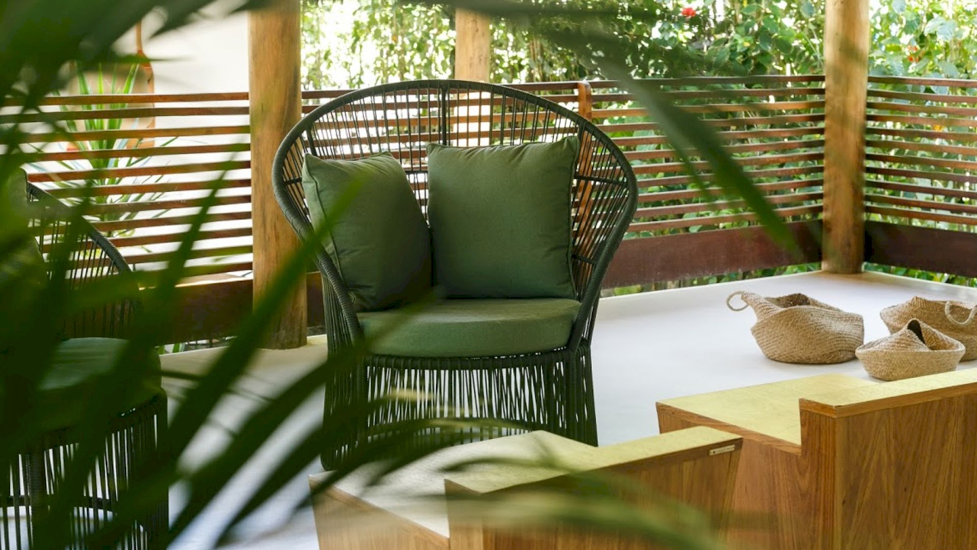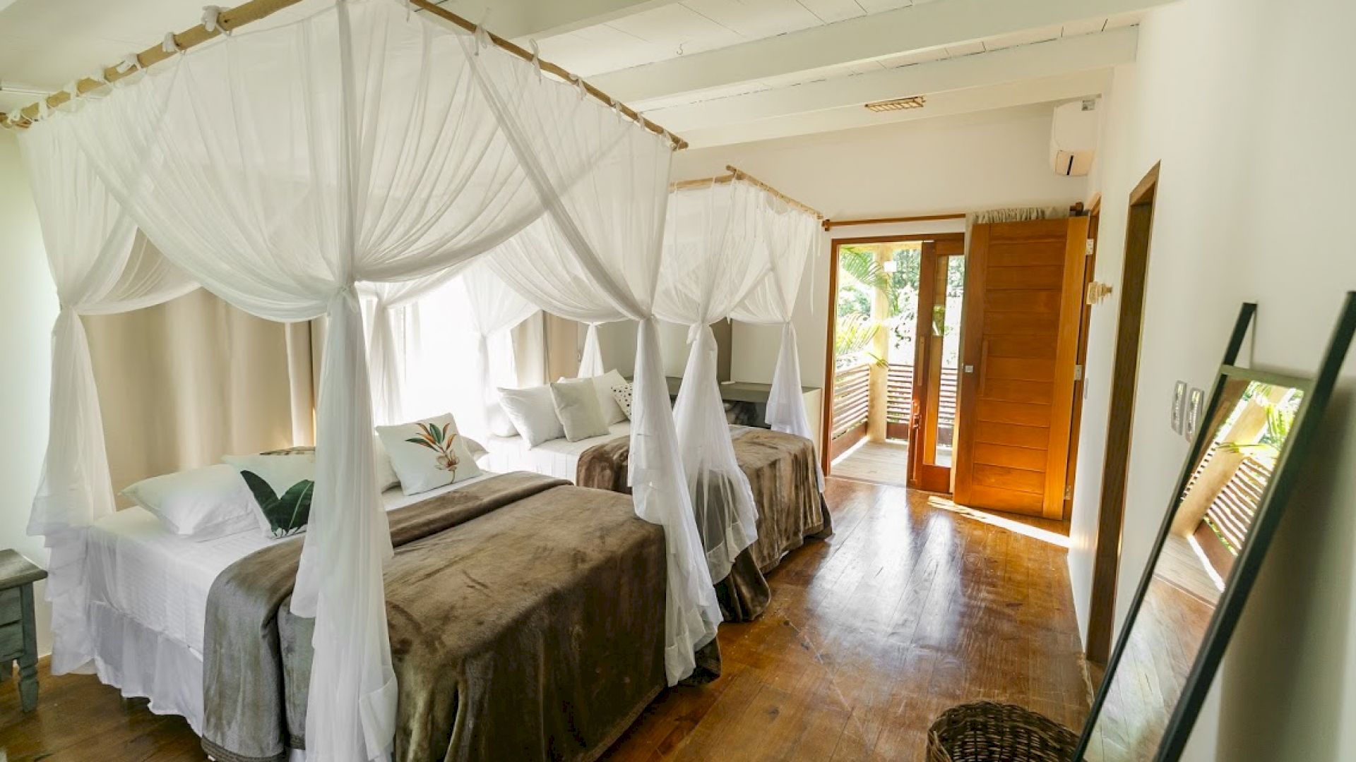 são equipadas com ar-condicionado e mosquiteiro. Ela possui um diferenciado terraço