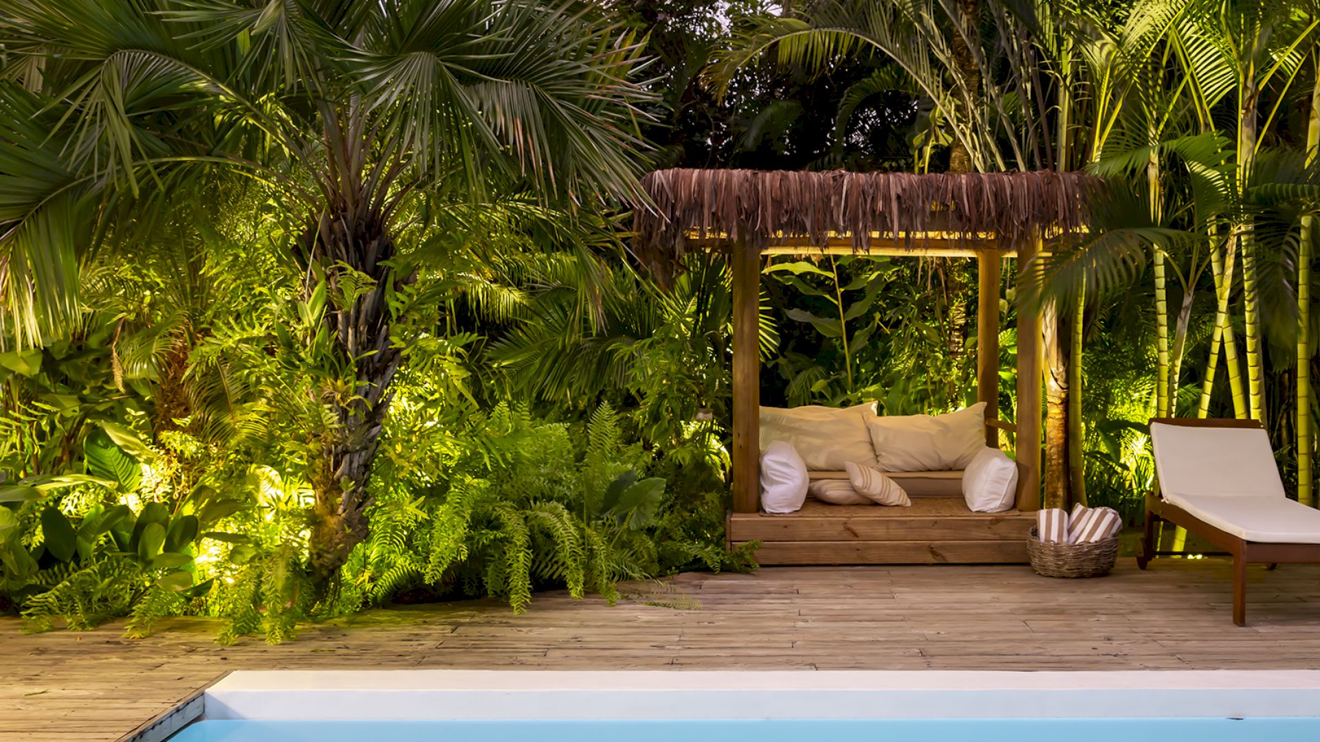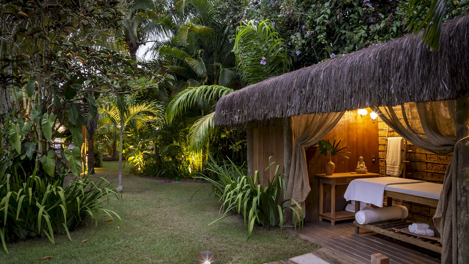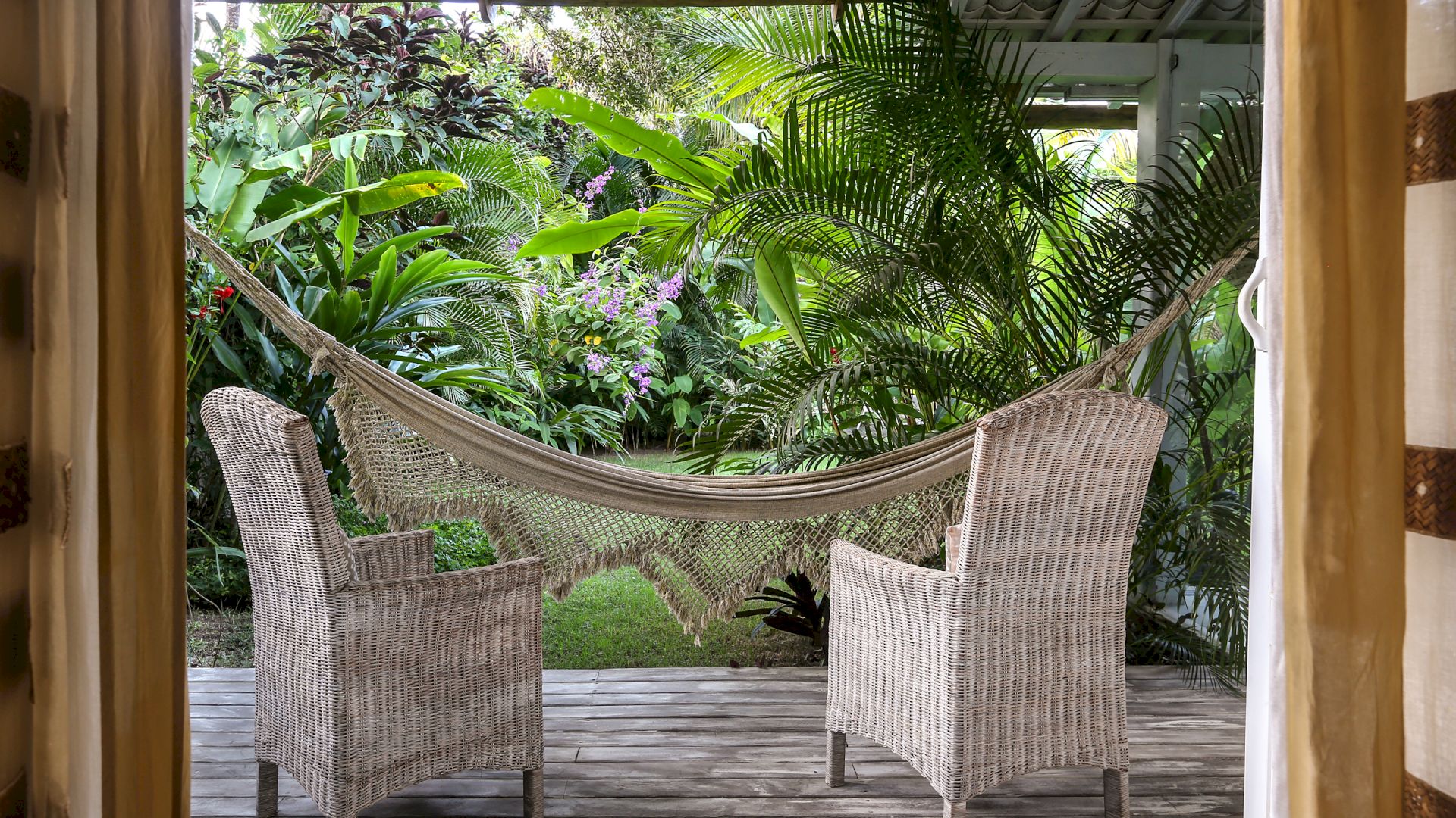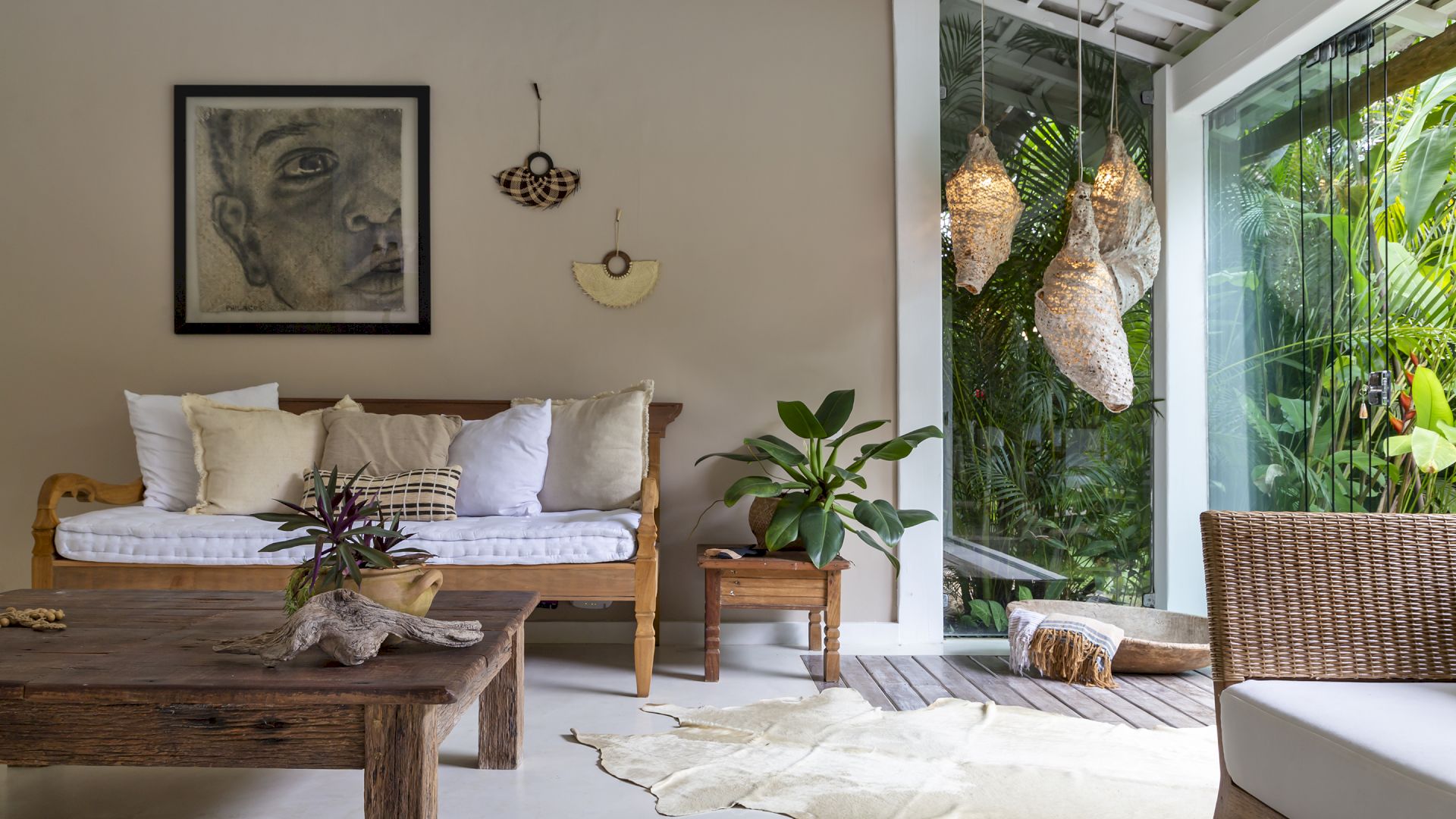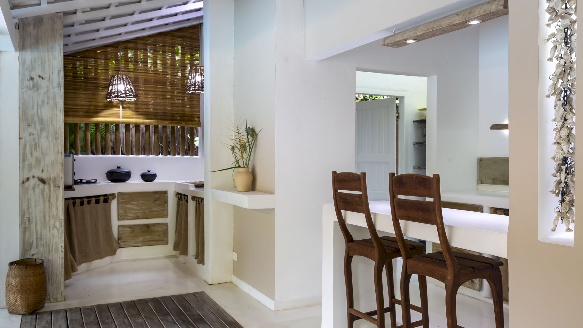 A casa é rodeada por um riquíssimo paisagismo tropical contendo 4 suítes que acomodam até 8 hóspedes confortavelmente. Todas as suítes são equipadas com cama Queen-size, ar condicionado, varanda individual com rede para descanso.
